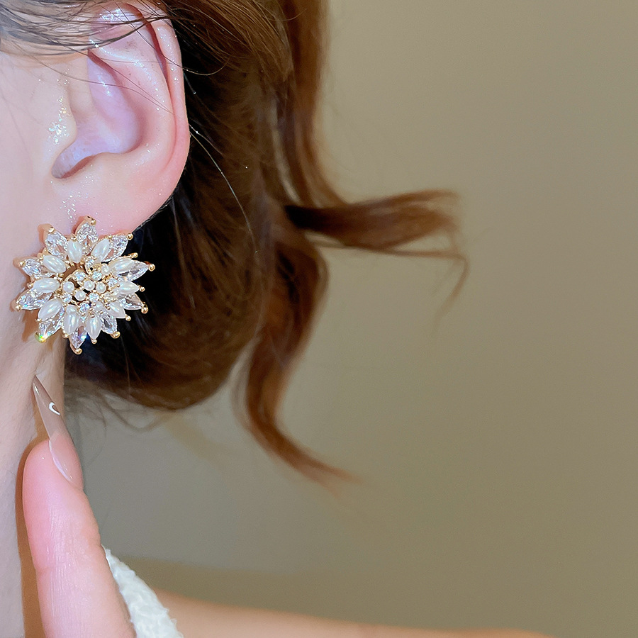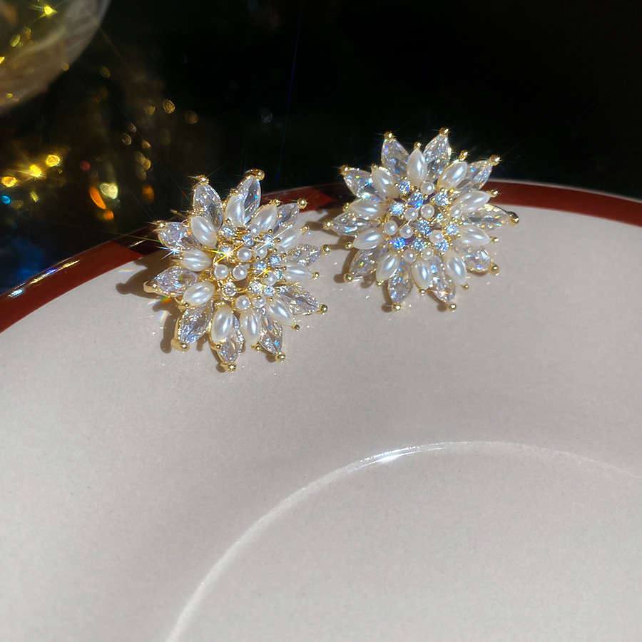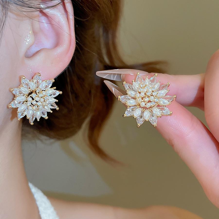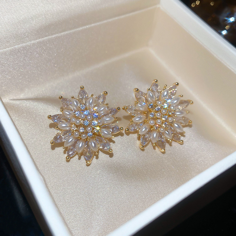 A2廠 韓國韓版鋯石珍珠花朵電鍍18k真金銀針耳環 批發 折扣@洽客服 25.10.W5「HE28869」