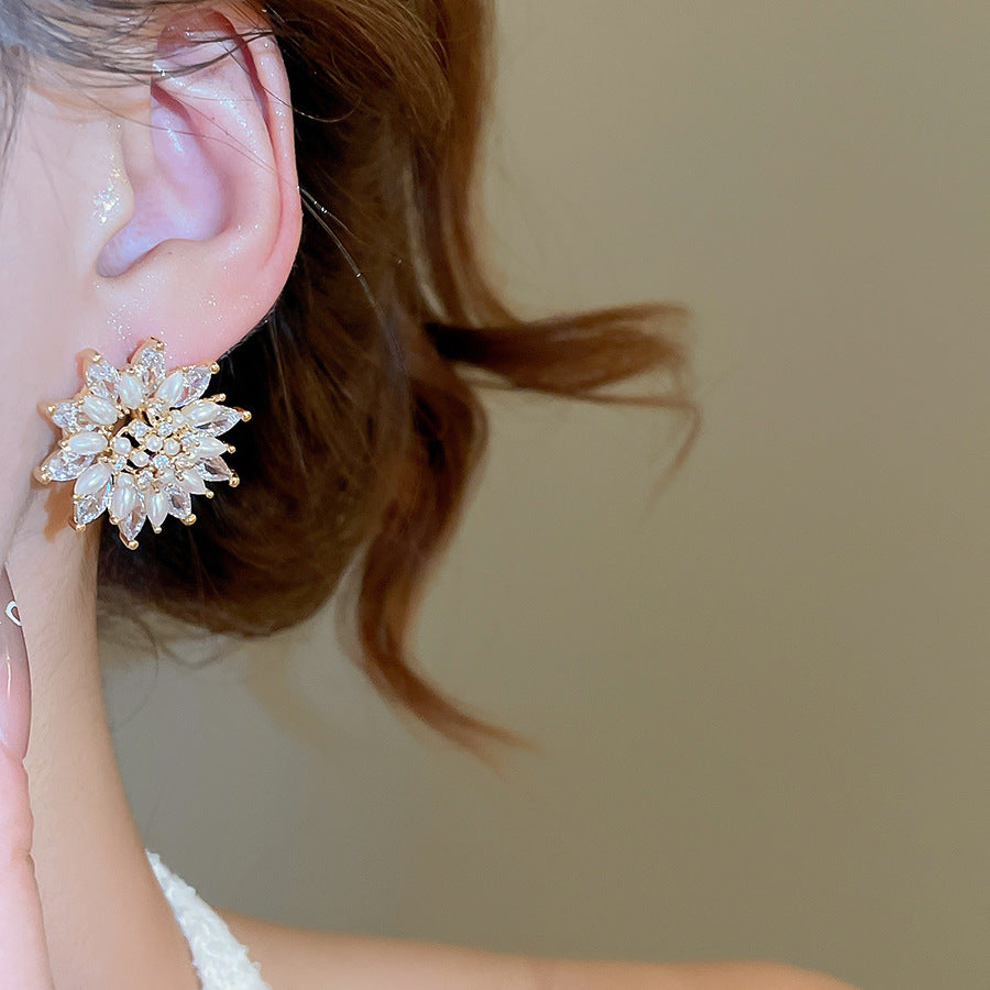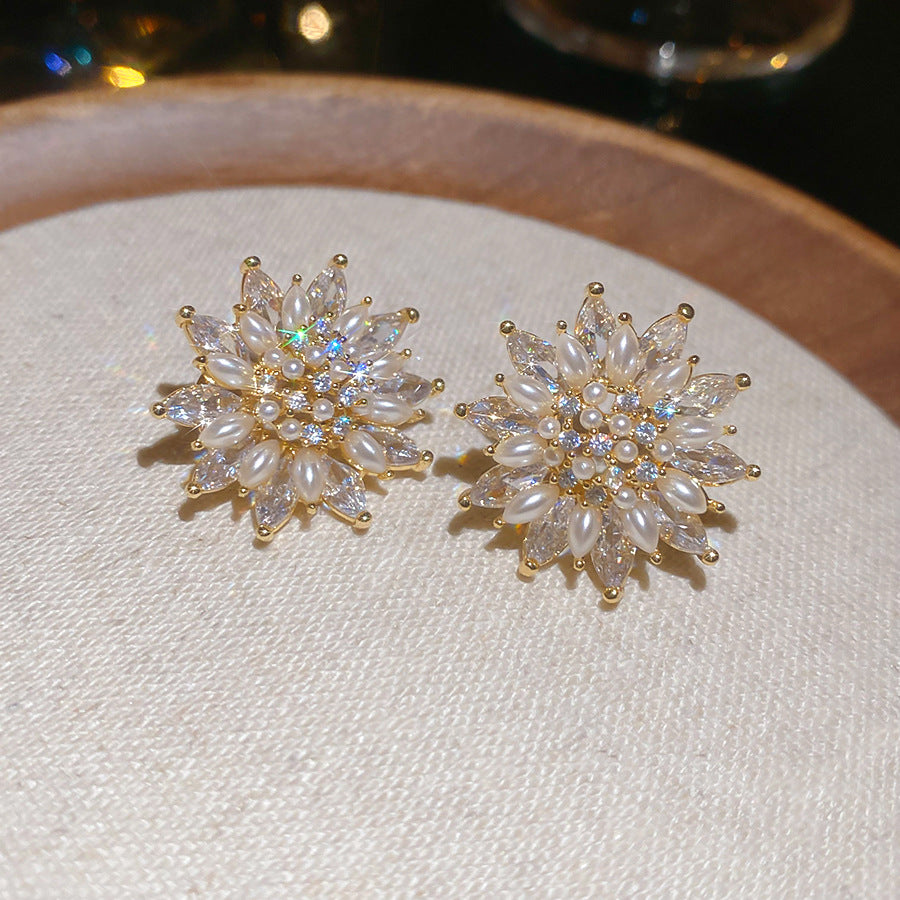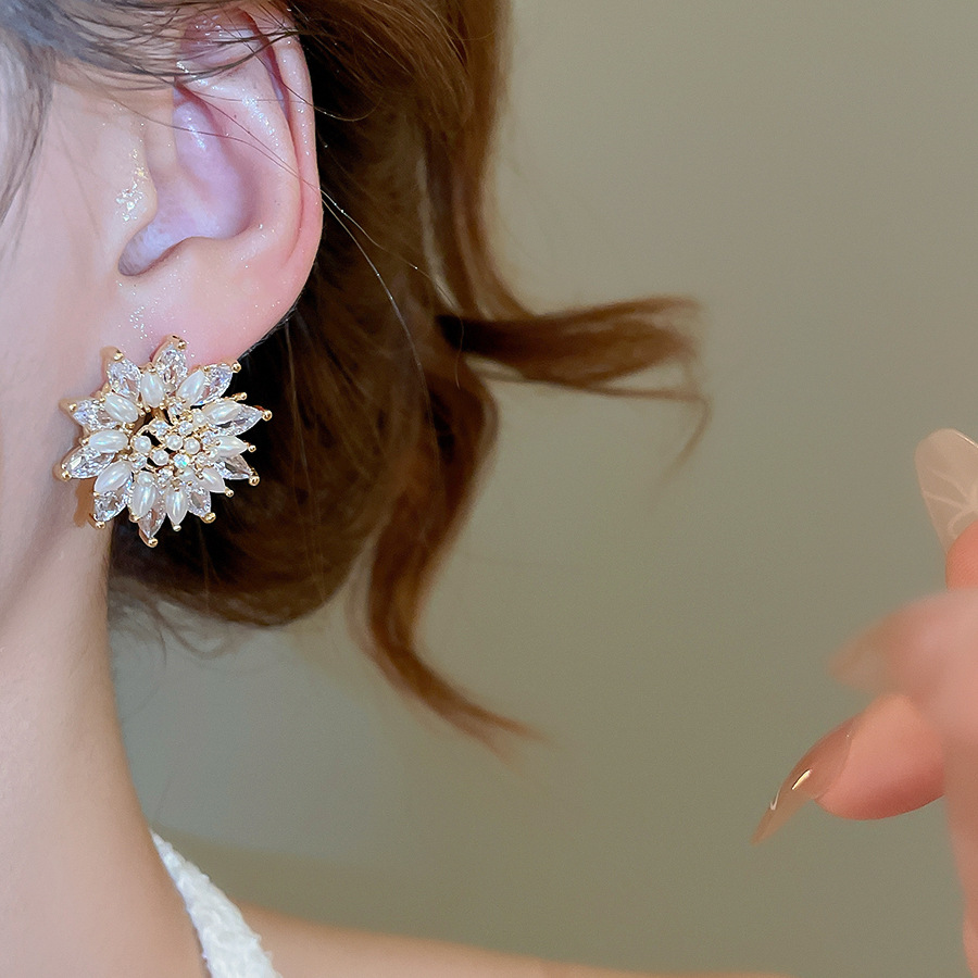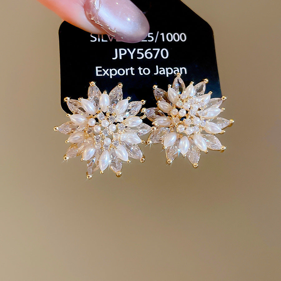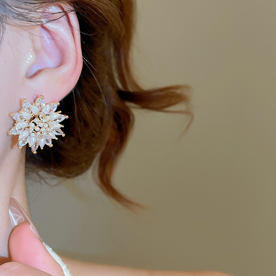A2廠 韓國韓版鋯石珍珠花朵電鍍18k真金銀針耳環 批發 折扣@洽客服 25.10.W5「HE28869」