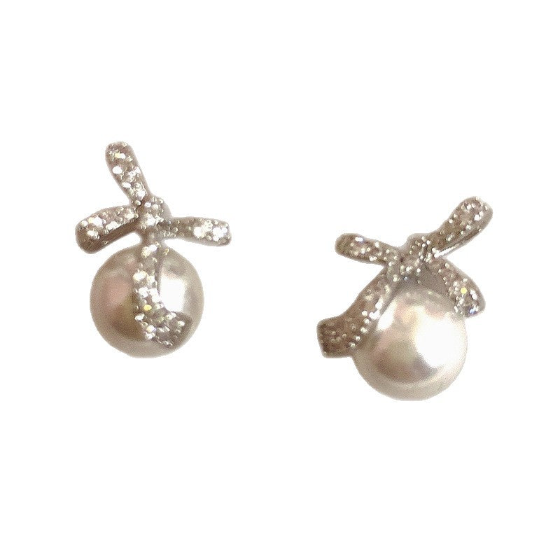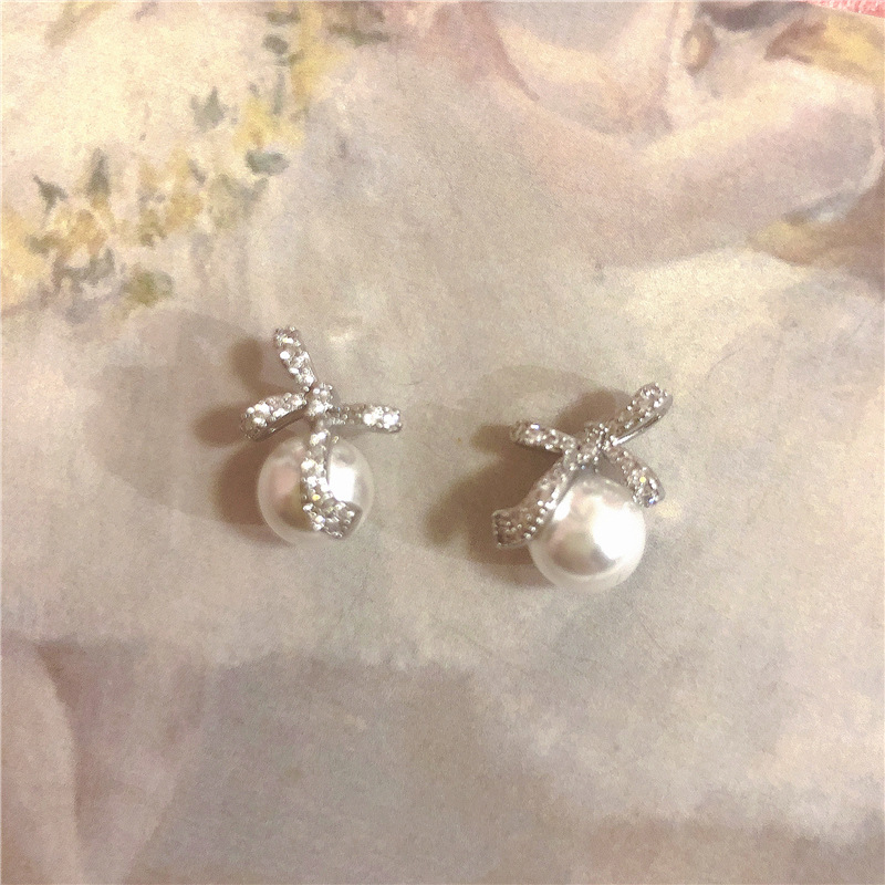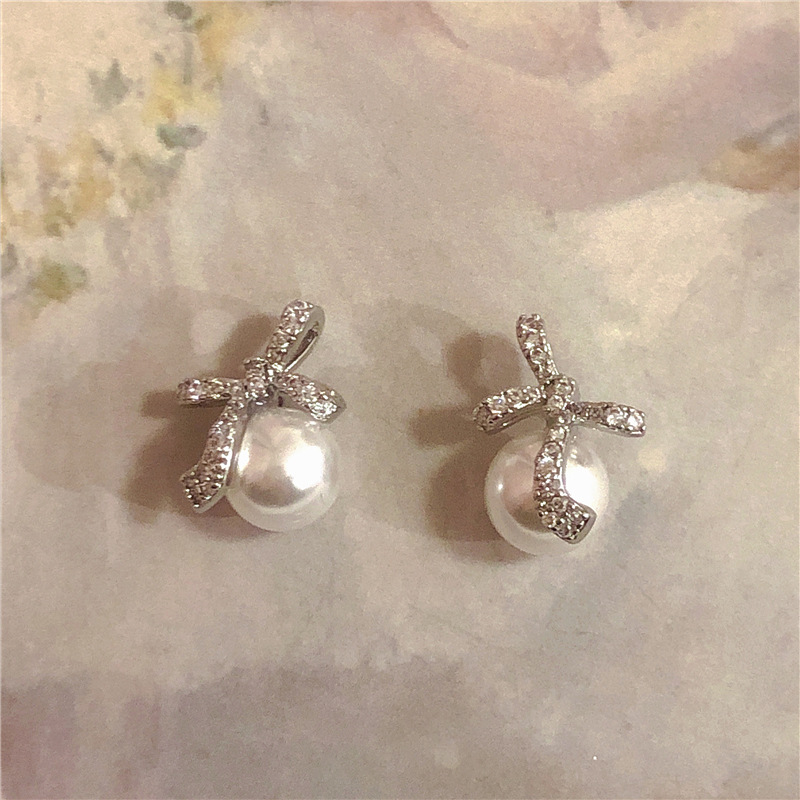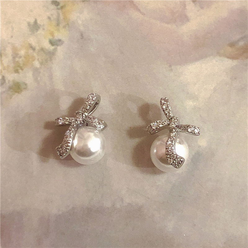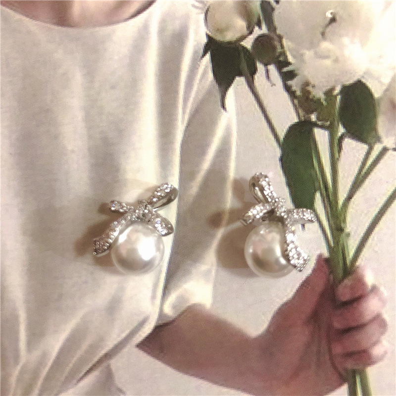 A2廠 韓國韓版鋯石珍珠蝴蝶結銀針耳環 批發 折扣@洽客服 25.11.W1「HE28946」