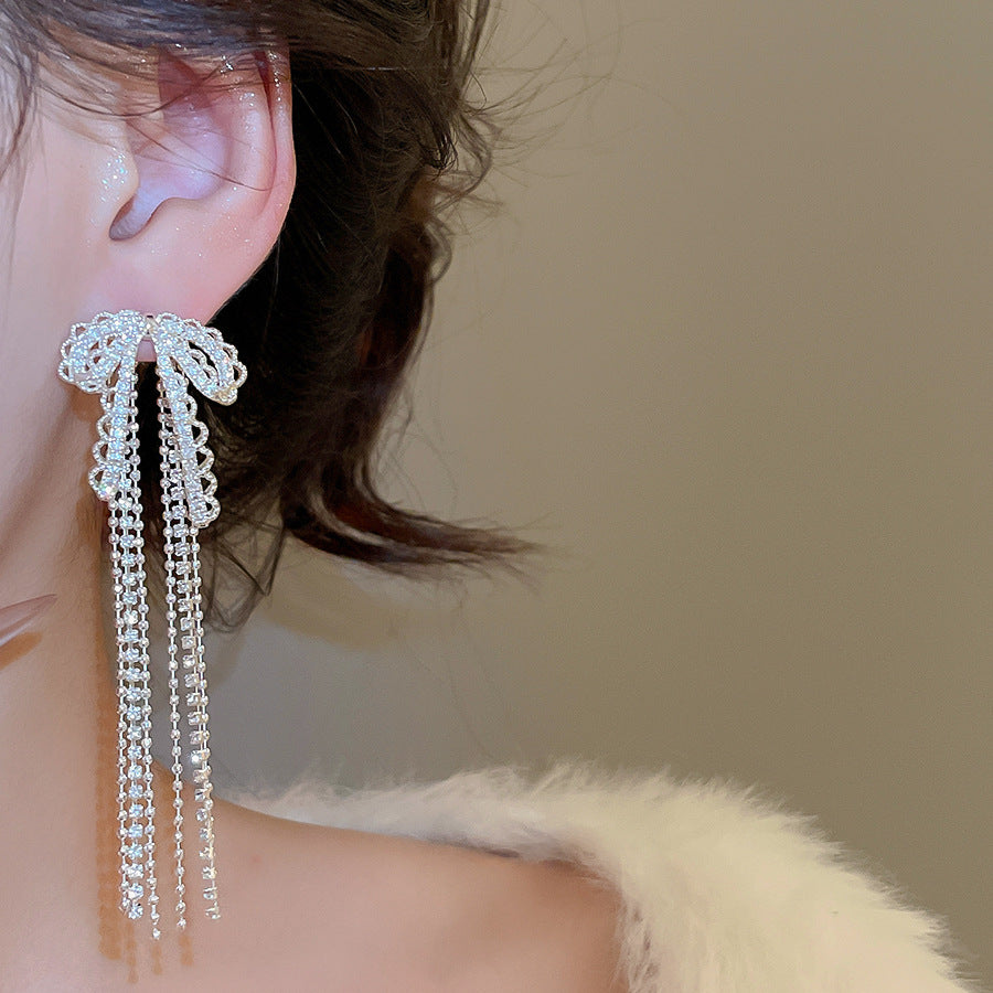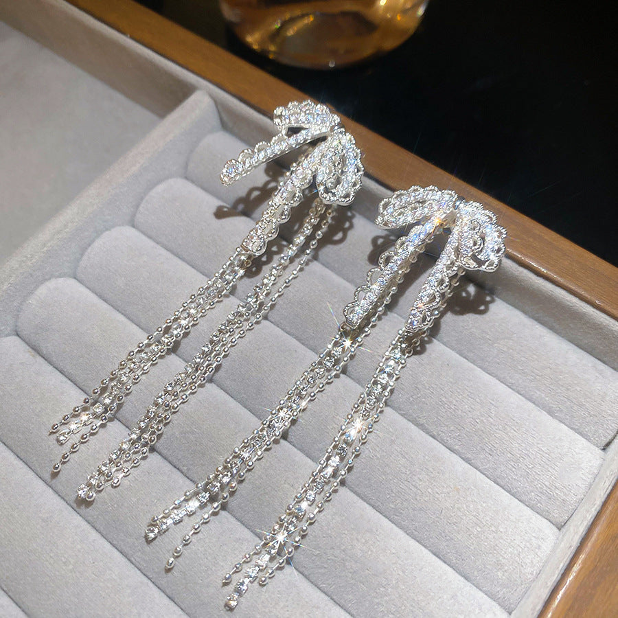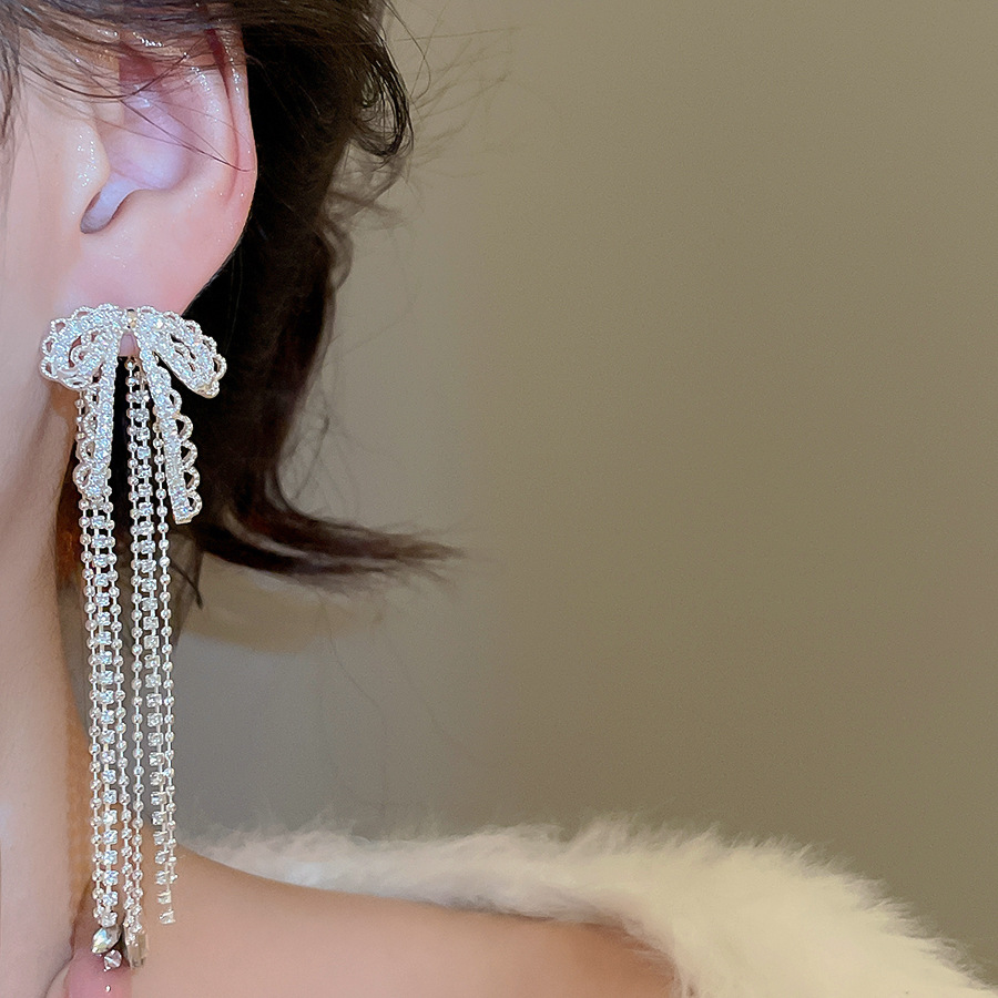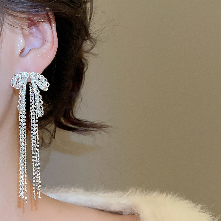 A2廠 日韓款韓國鋯石蝴蝶結流蘇銀針耳環 批發 折扣@洽客服 25.11.W4「HE28990」