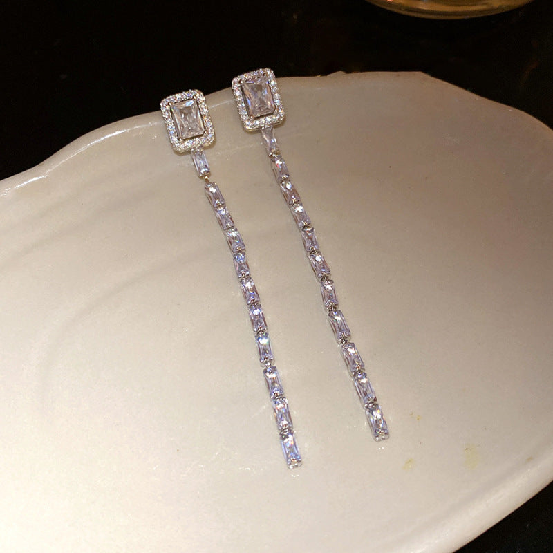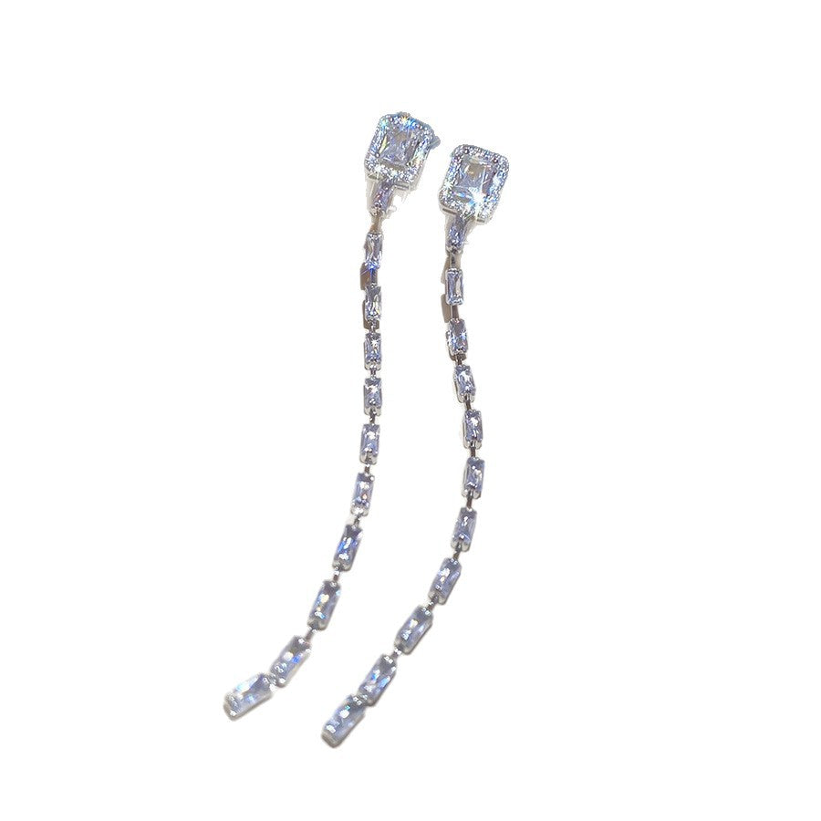 A2廠 日韓款鋯石方形流蘇銀針耳環 批發 折扣@洽客服 25.11.W4「HE28998」