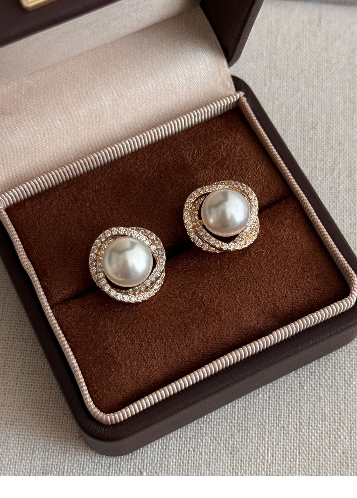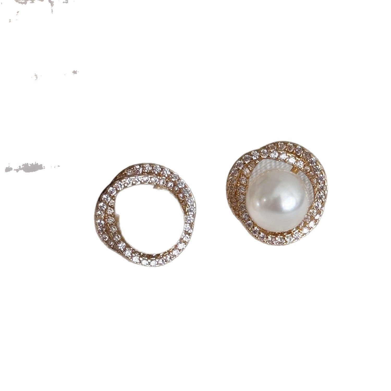 A2廠 日韓款鋯石幾何圓形珍珠銀針耳環 批發 折扣@洽客服 25.11.W4「HE29006」