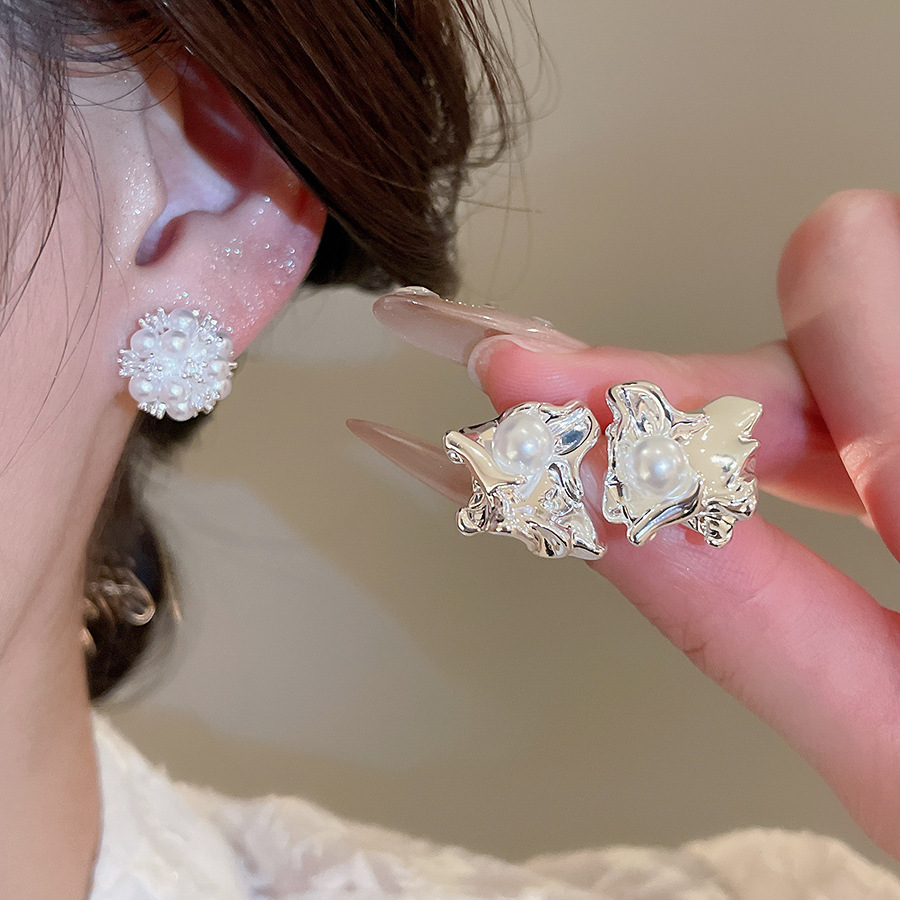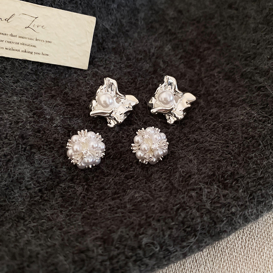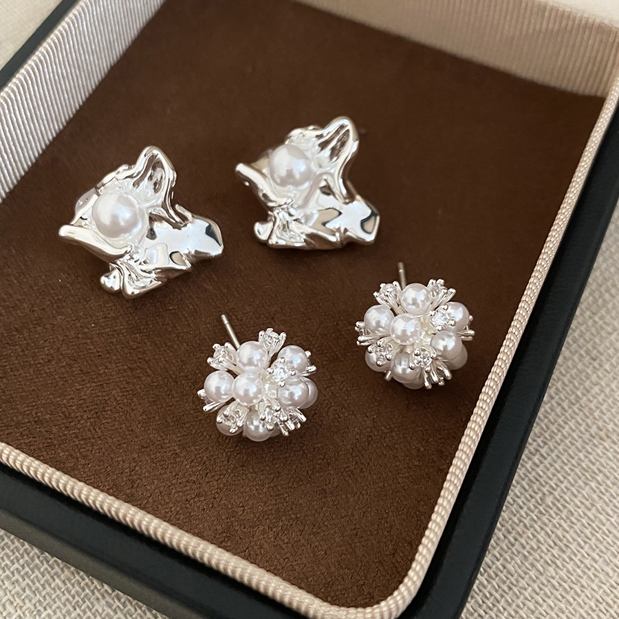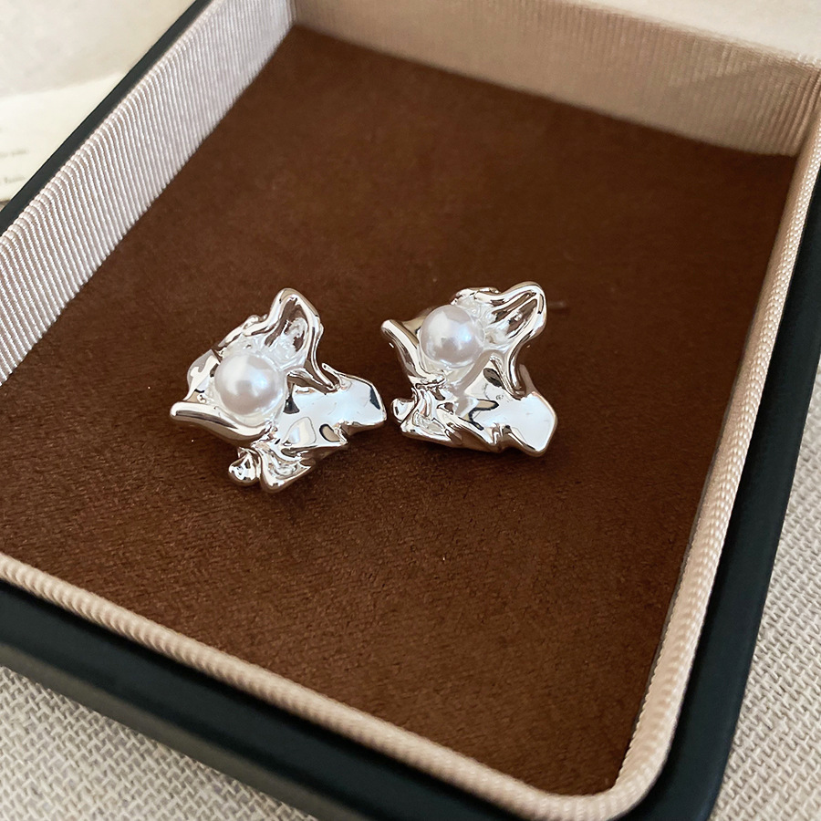 A2廠 韓國韓版珍珠方形褶皺花朵銀針耳環 批發 折扣@洽客服 25.11.W1「HE29036-HE29037」