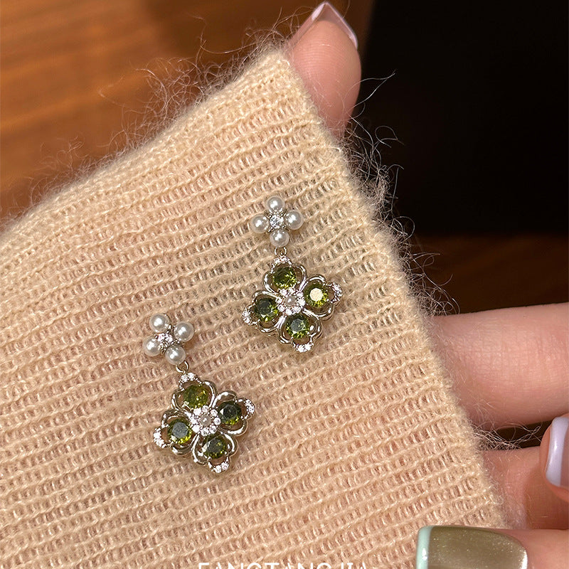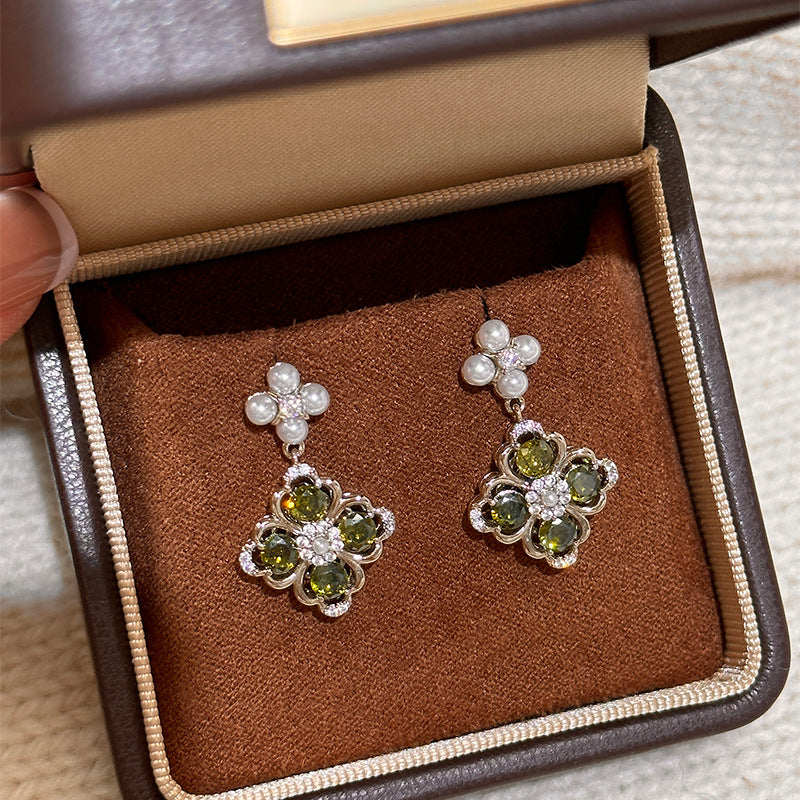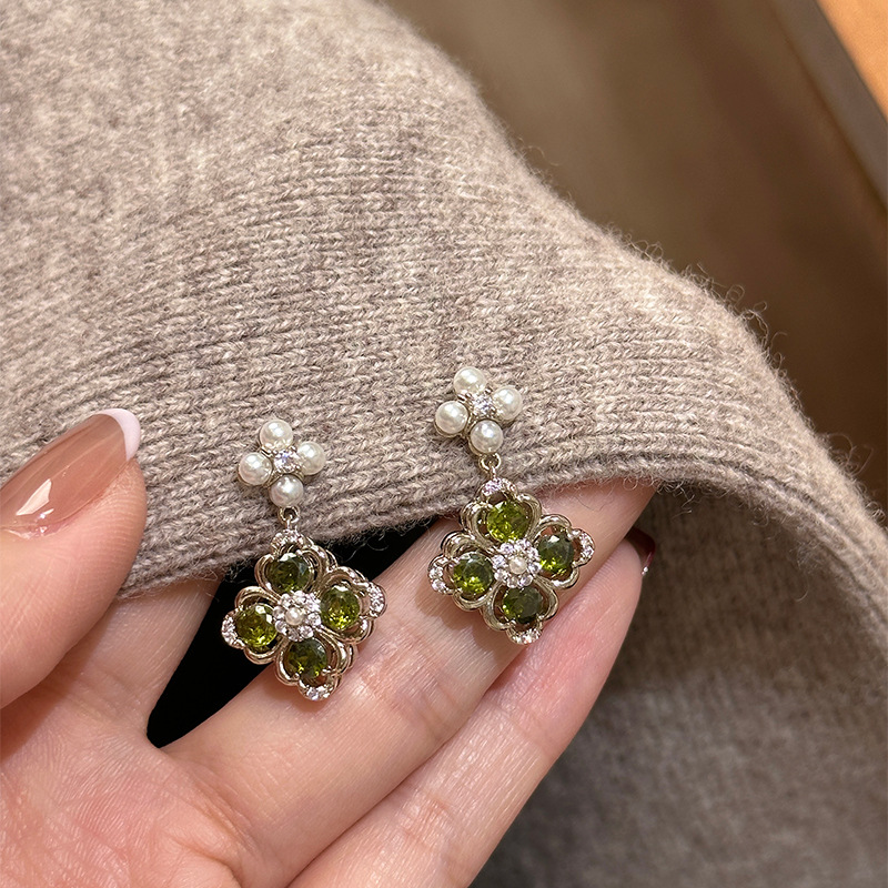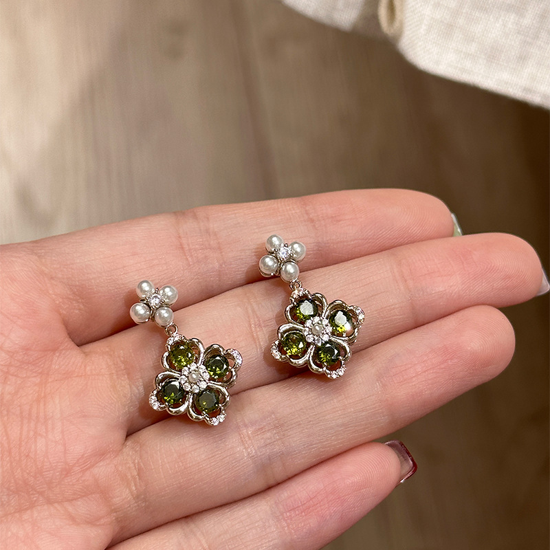 A2廠 韓國韓版鋯石珍珠花朵銀針耳環 批發 折扣@洽客服 25.11.W1「HE29058」