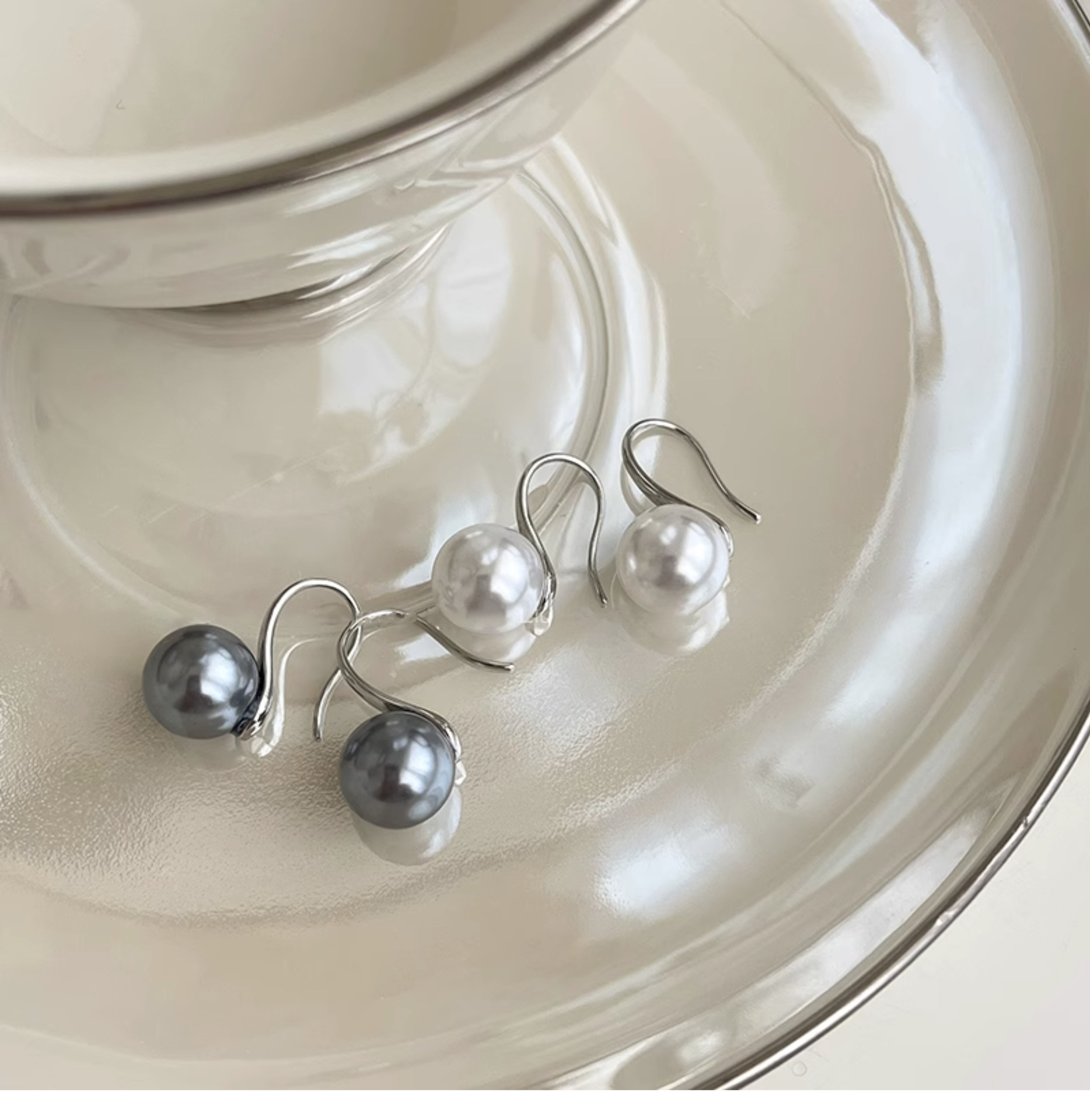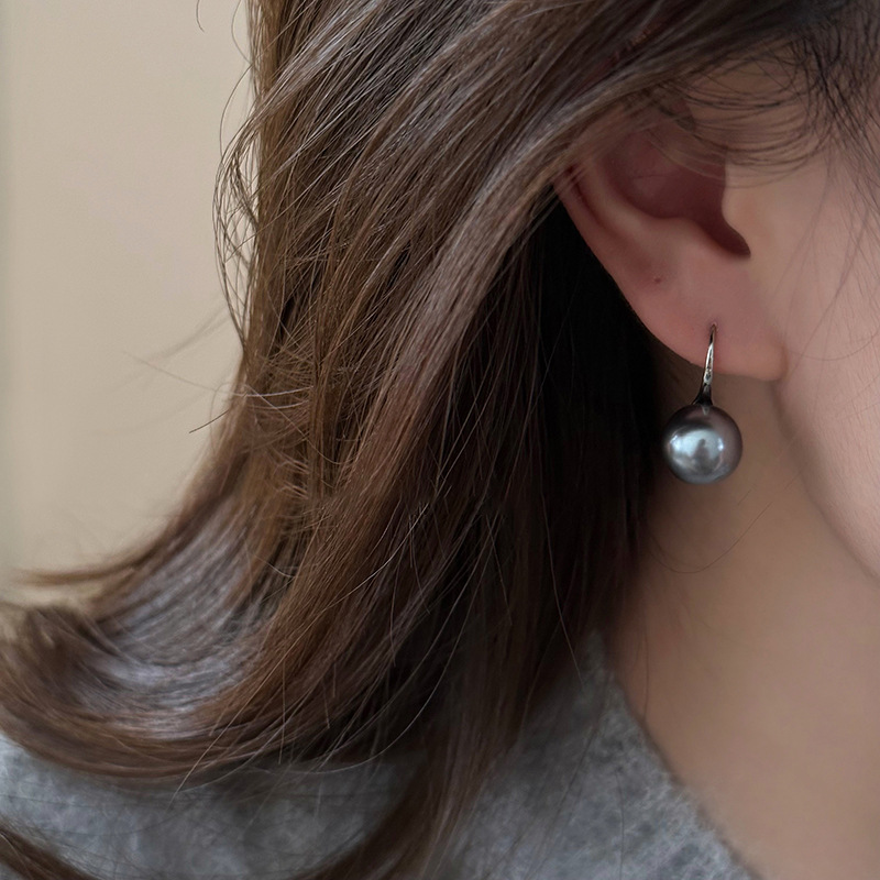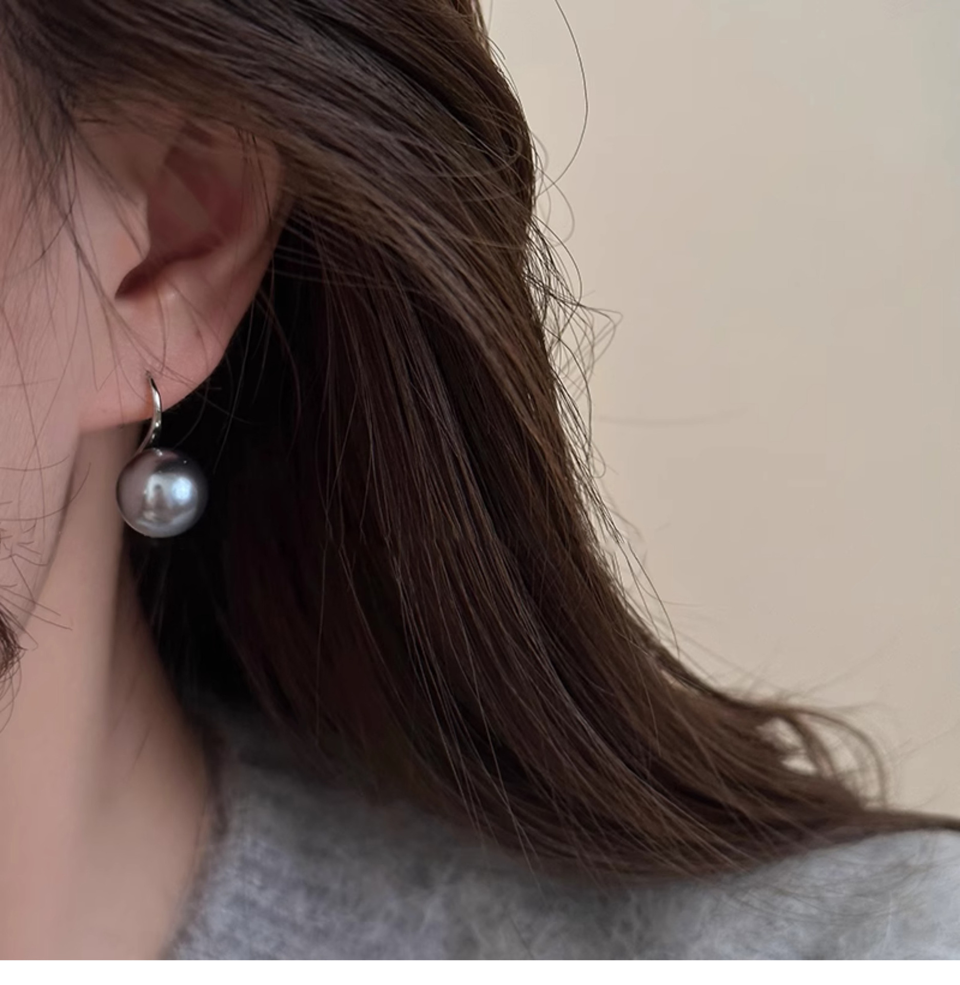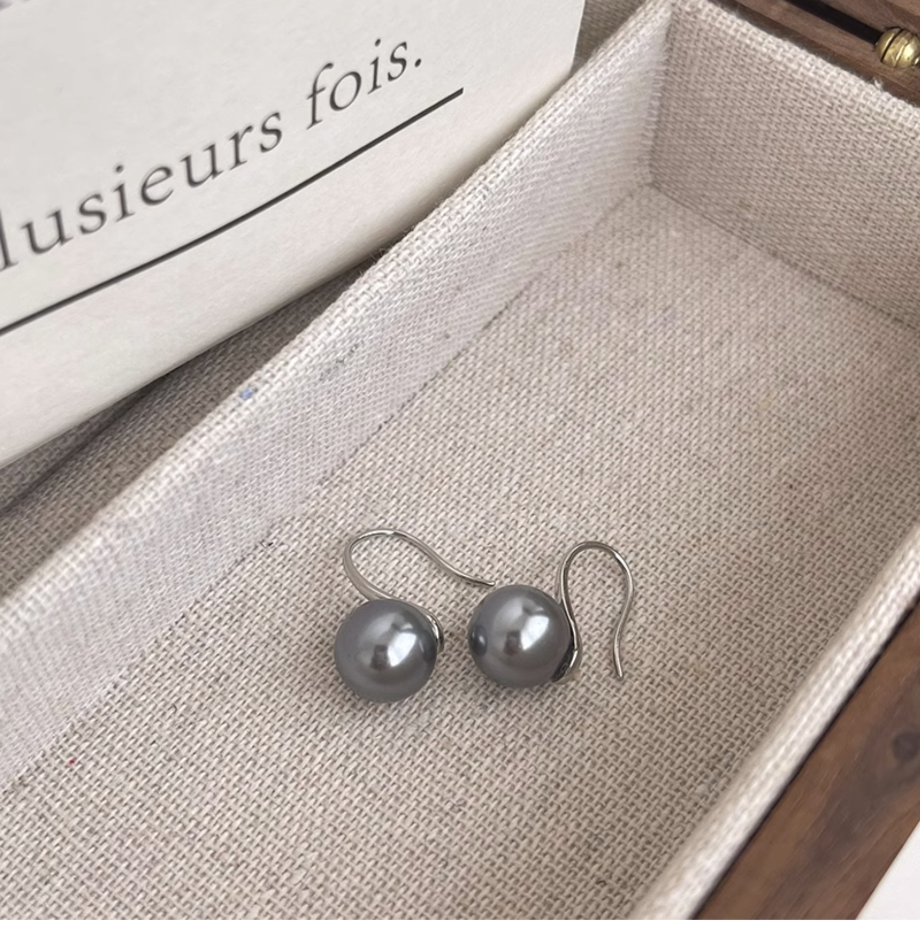 A2廠 韓國韓版灰色珍珠圓形銀針耳環 批發 折扣@洽客服 25.11.W2「HE29106--2」