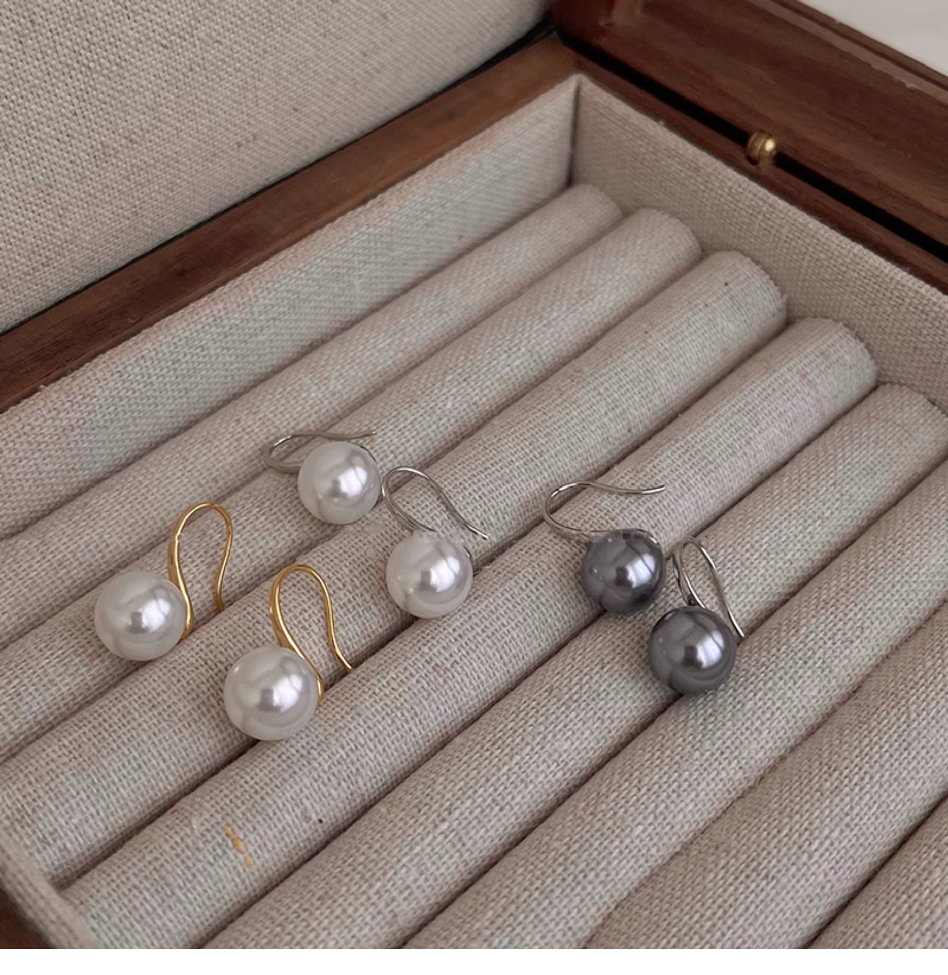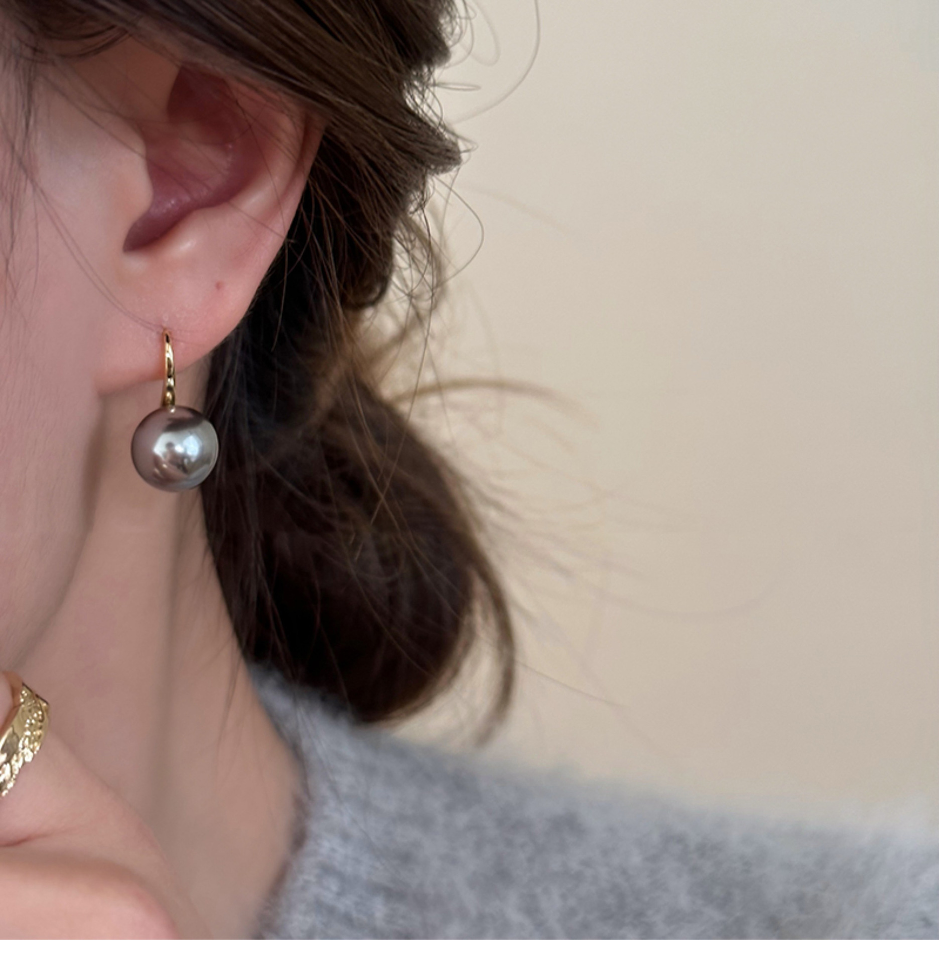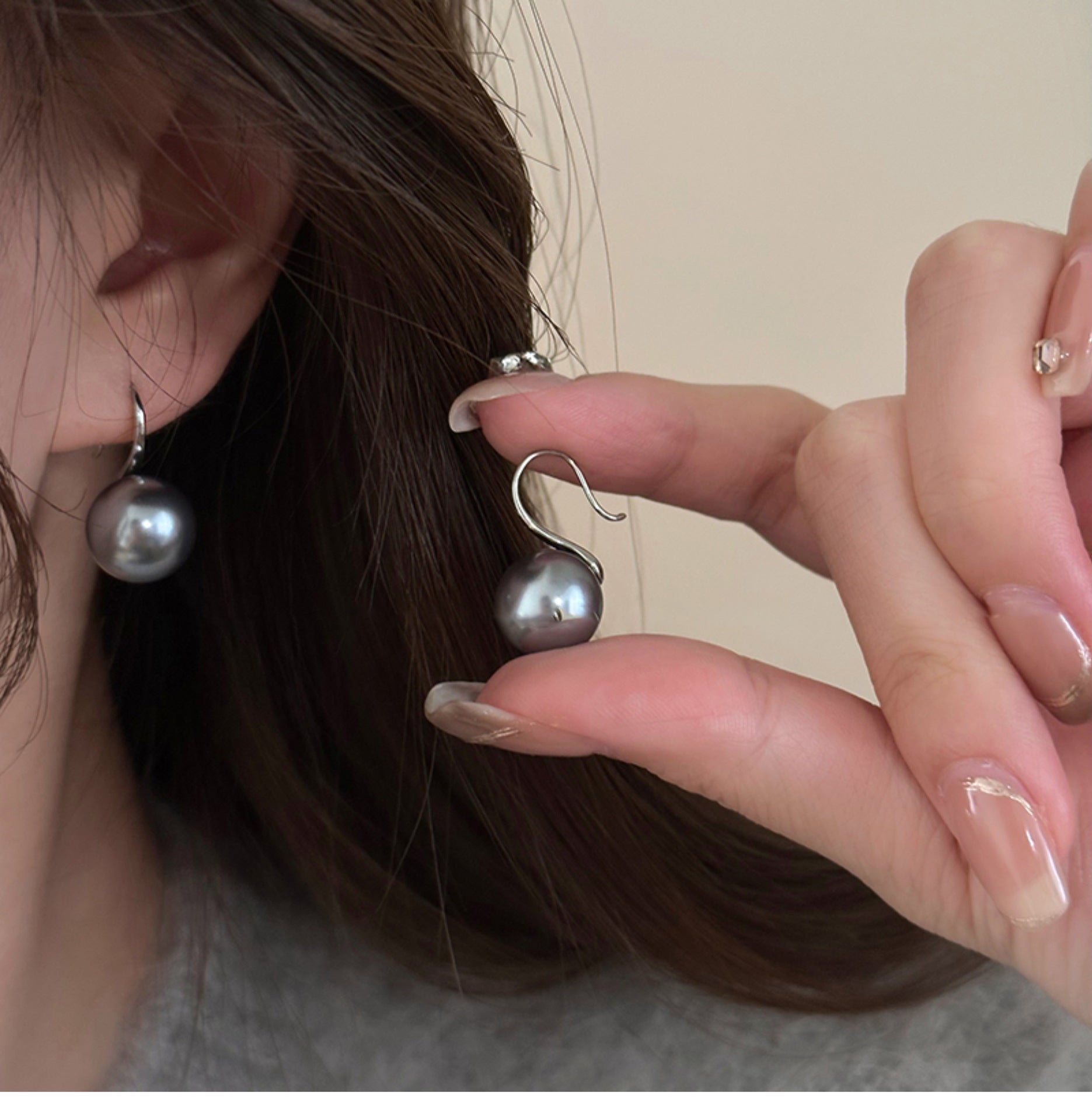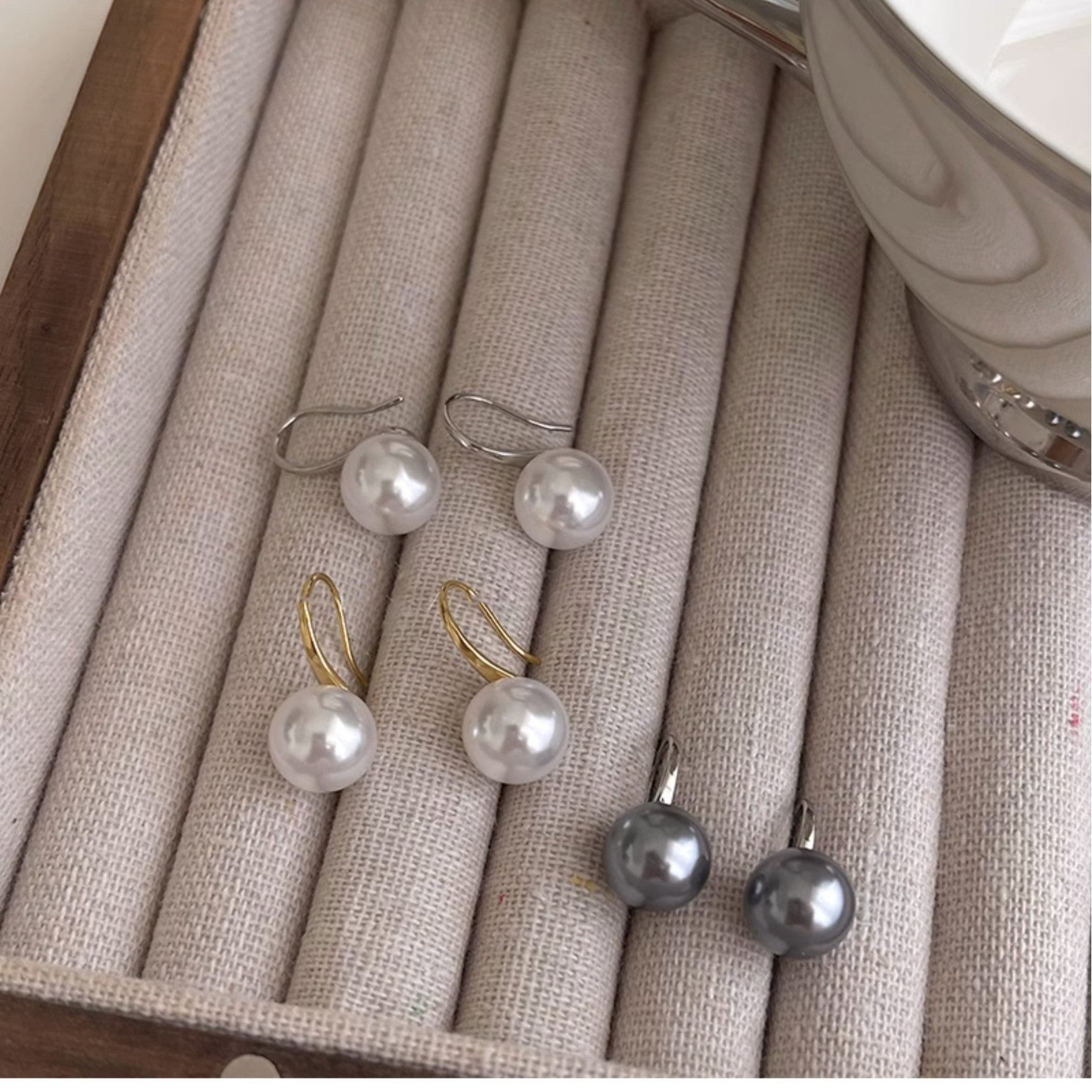 A2廠 韓國韓版灰色珍珠圓形銀針耳環 批發 折扣@洽客服 25.11.W2「HE29106--2」