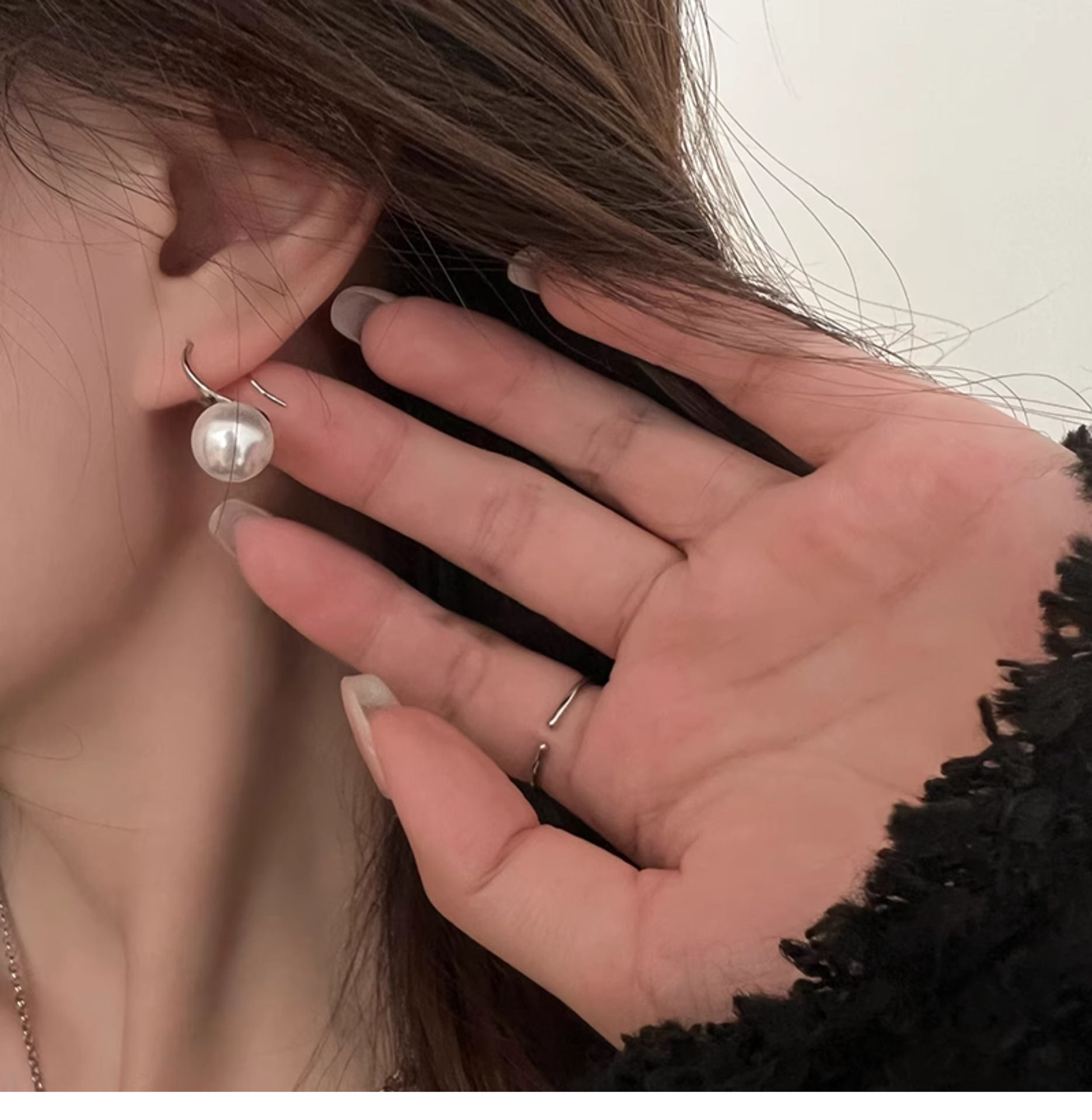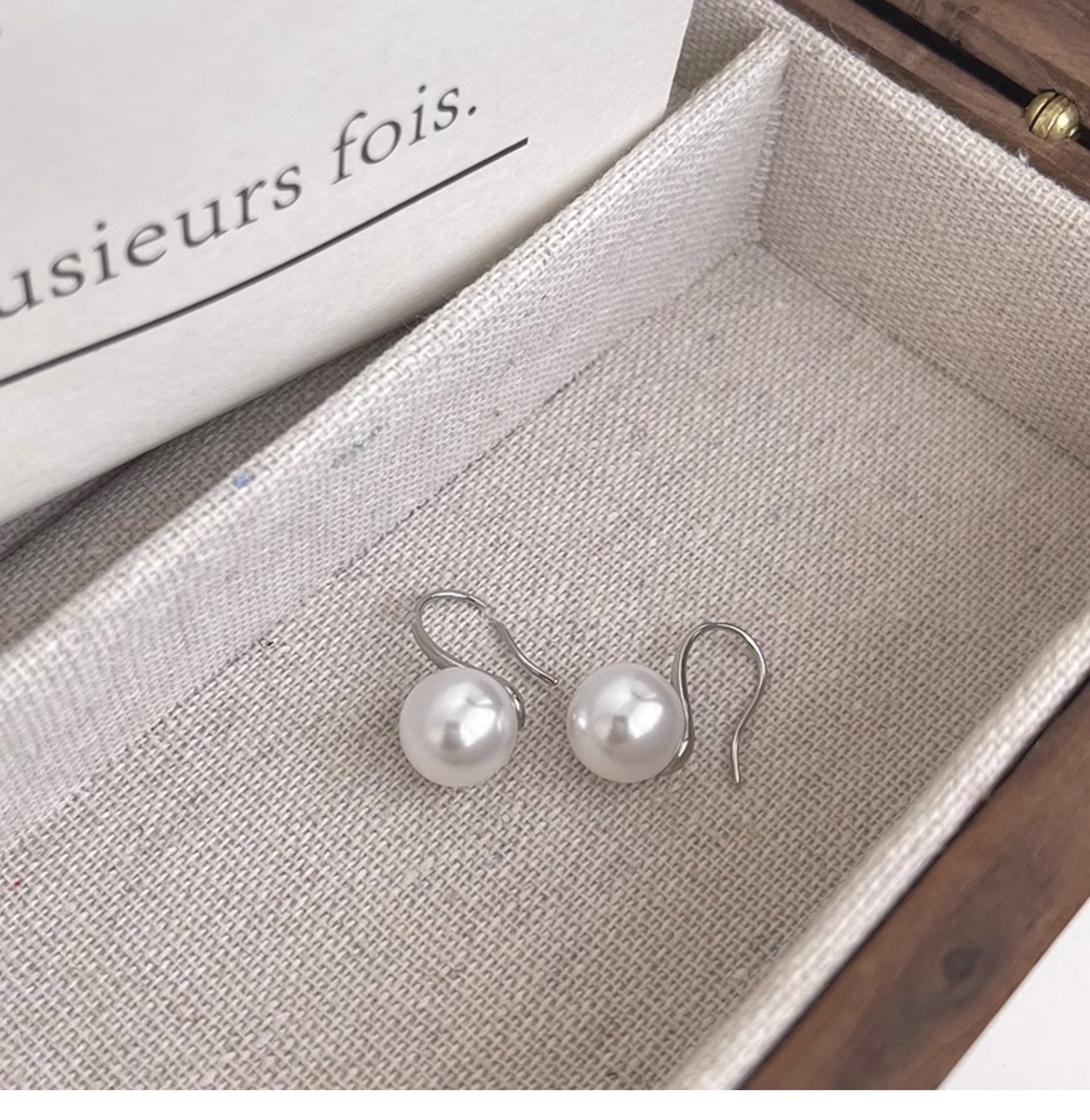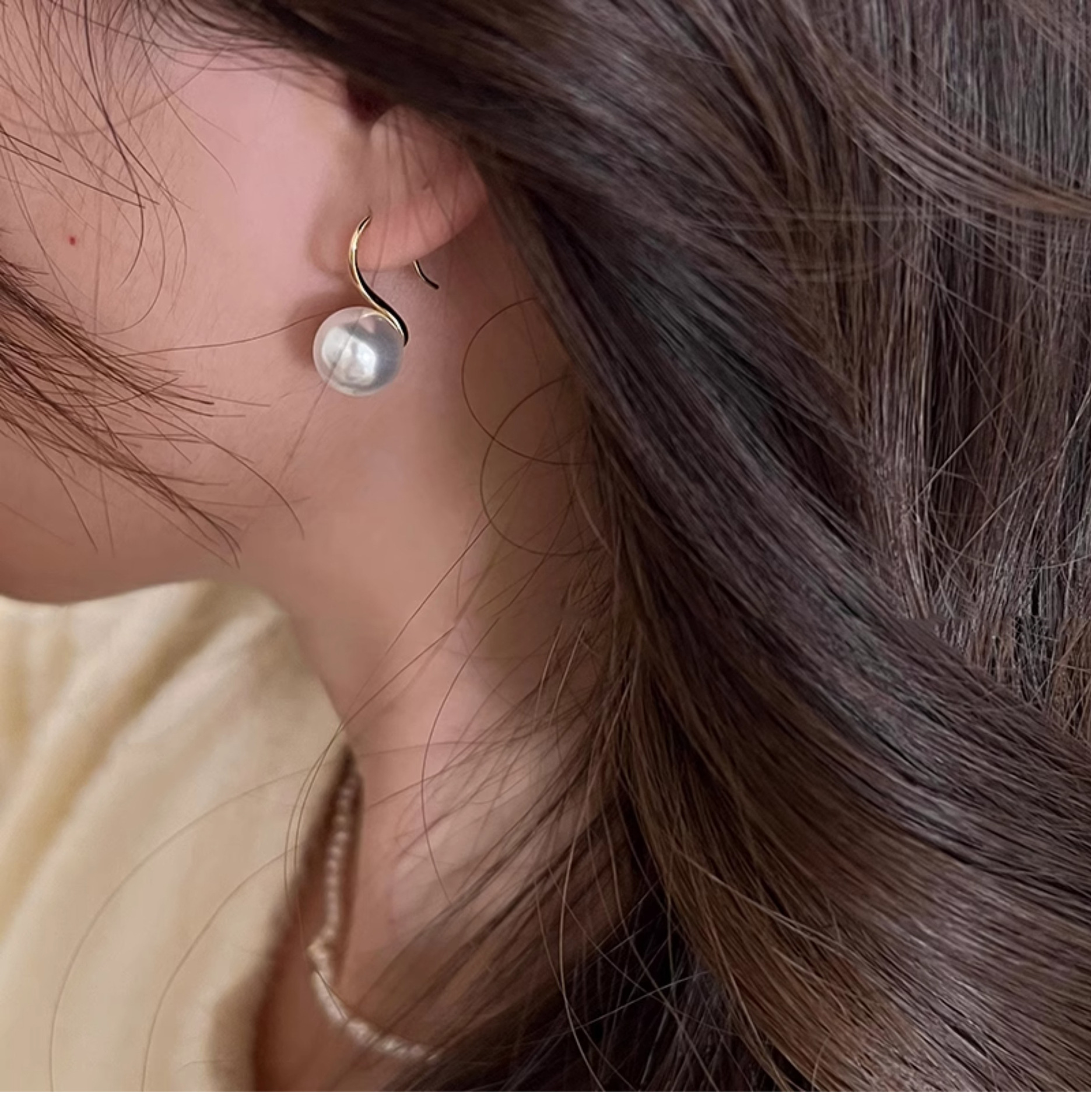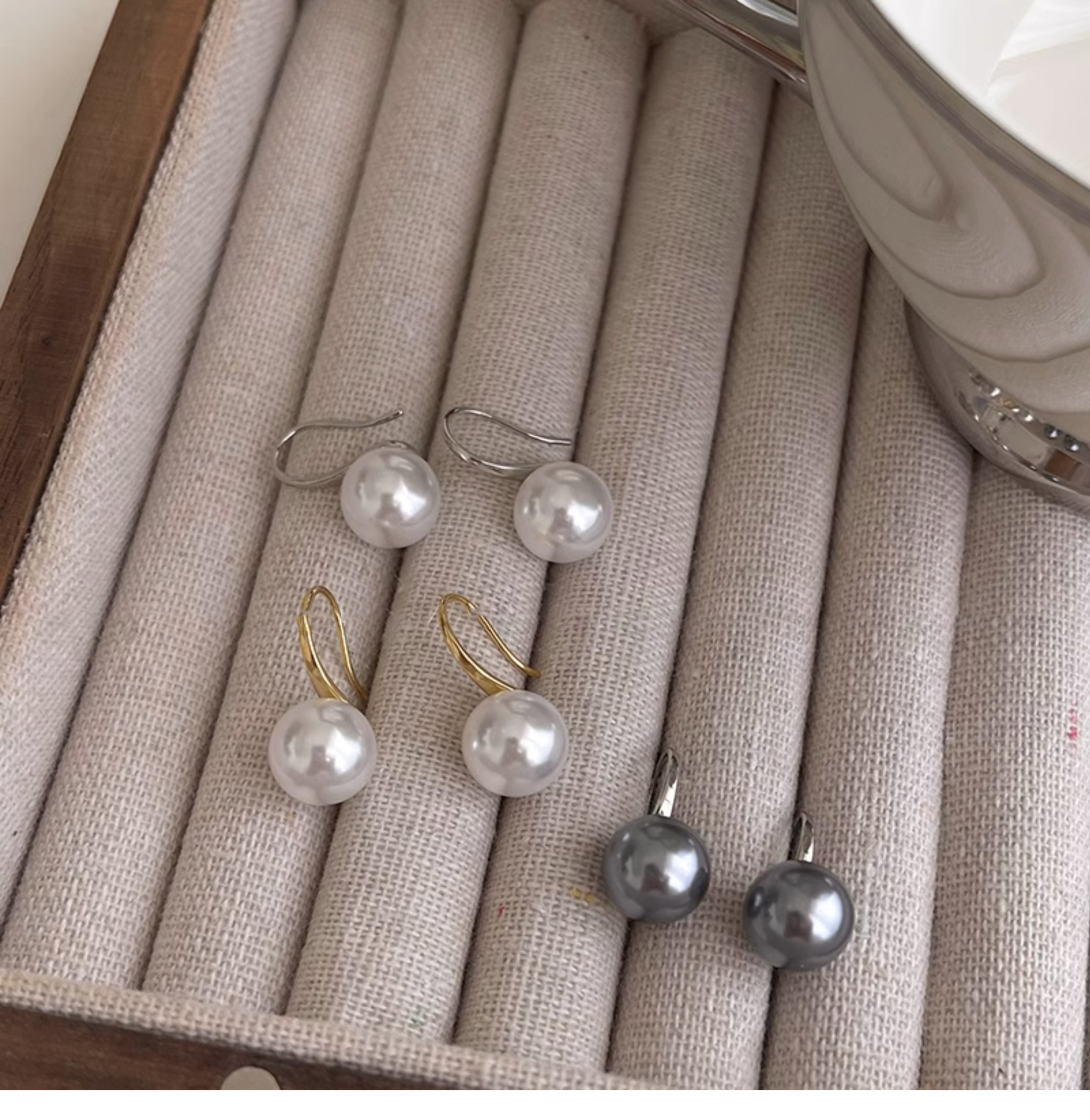 A2廠 韓國韓版灰色珍珠圓形銀針耳環 批發 折扣@洽客服 25.11.W2「HE29106--2」