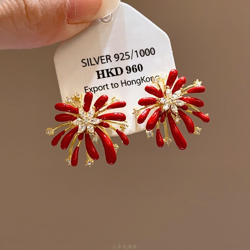 A2廠 韓國韓版鑲鑽滴油煙火銀針耳環 批發 折扣@洽客服 25.12.W2「HE29310」