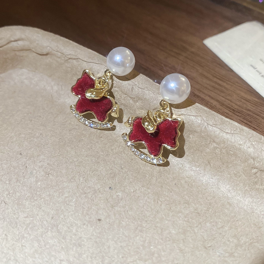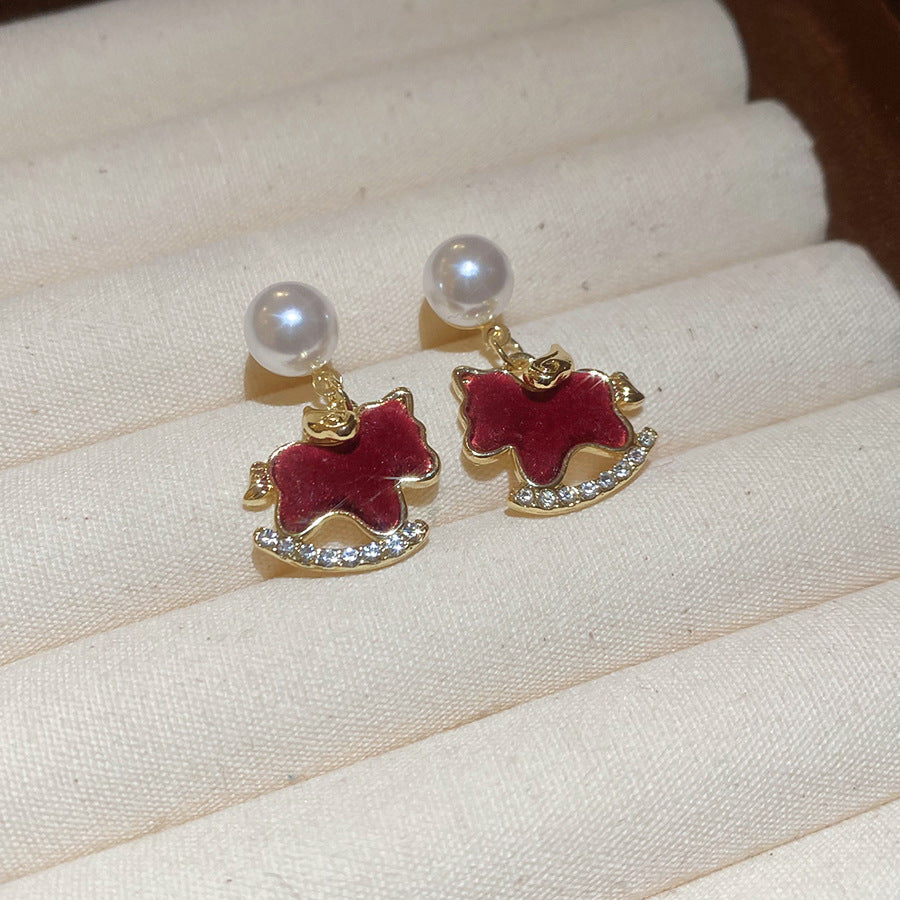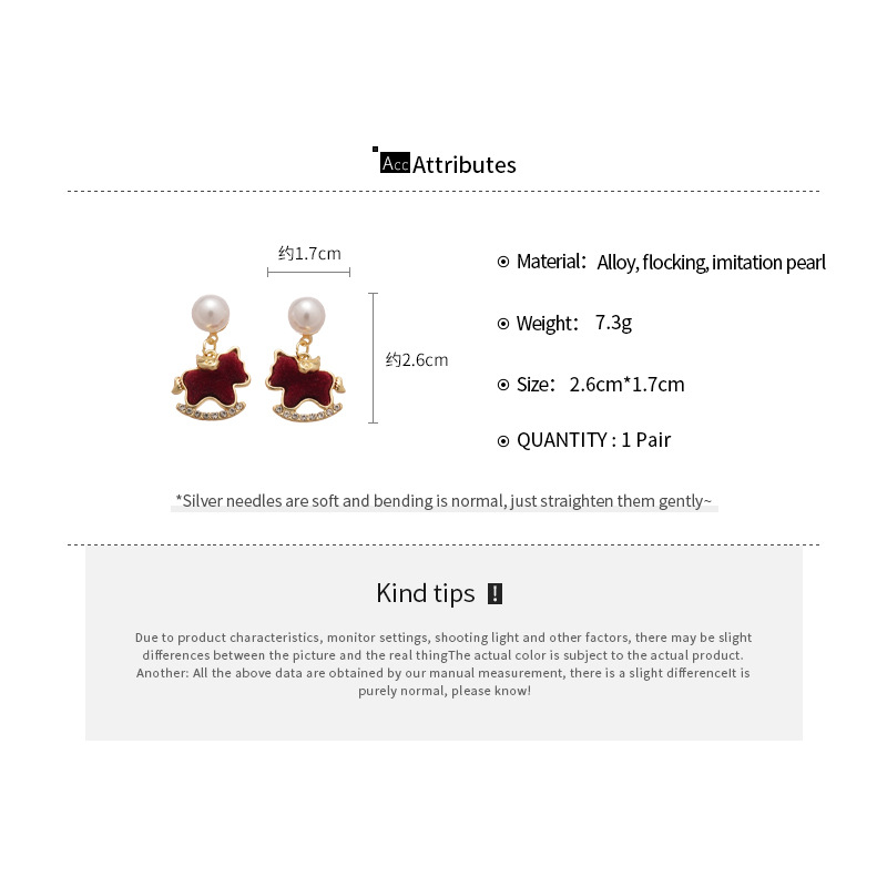 A2廠 韓國韓版鑲鑽植絨小馬珍珠銀針耳環 批發 折扣@洽客服 25.12.W2「HE29319」