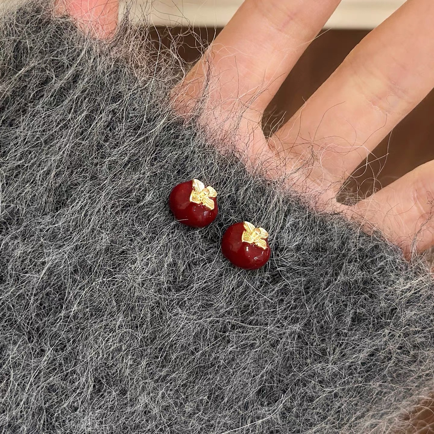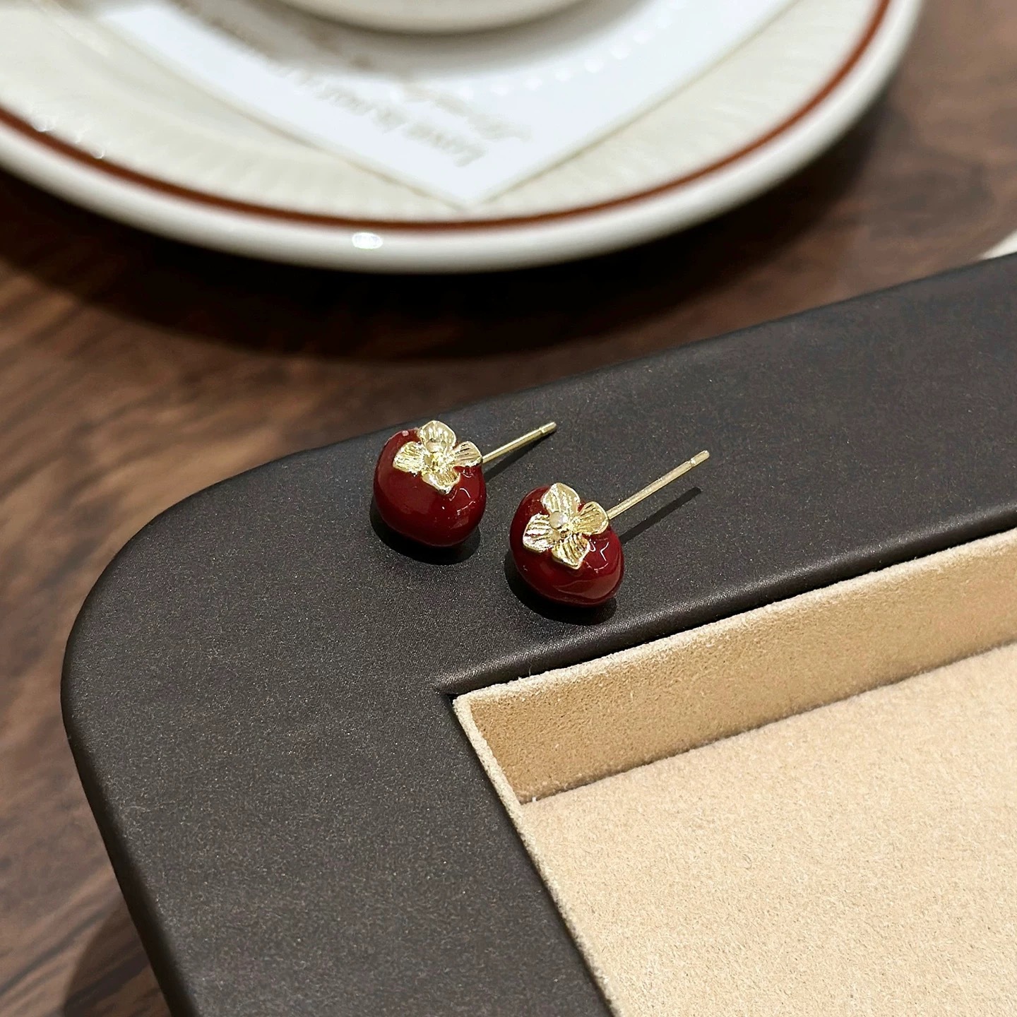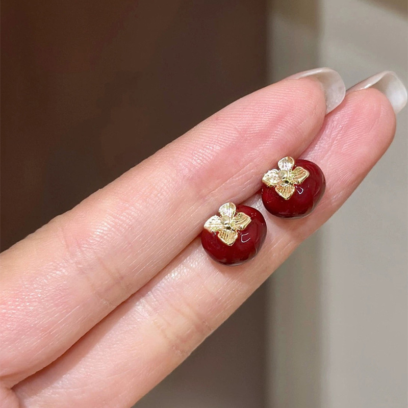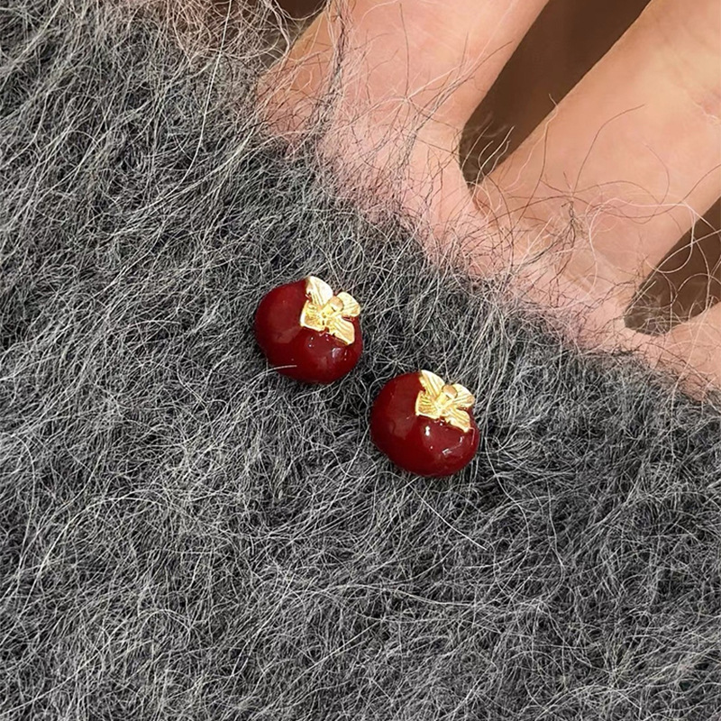 A2廠 韓國韓版聖誕節滴油蘋果銀針耳環 批發 折扣@洽客服 25.12.W1「HE29443」