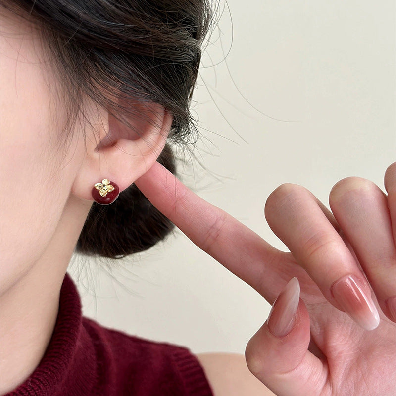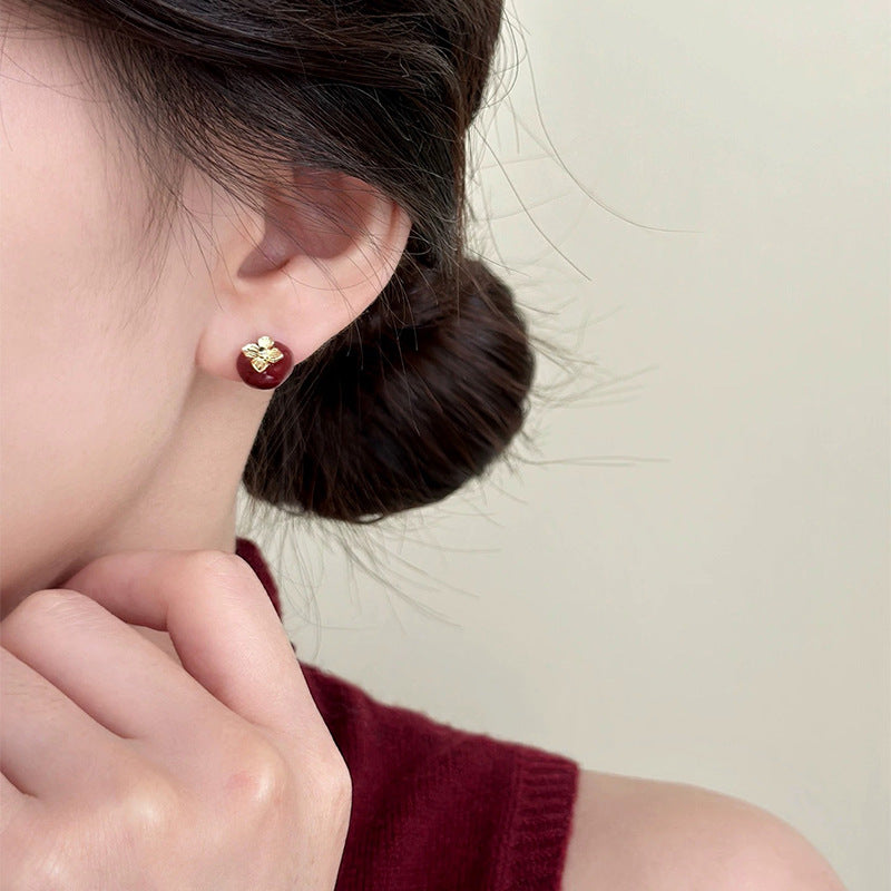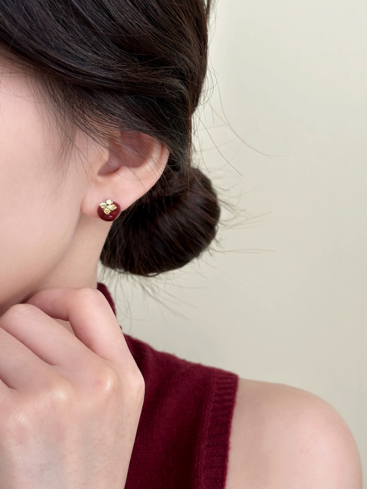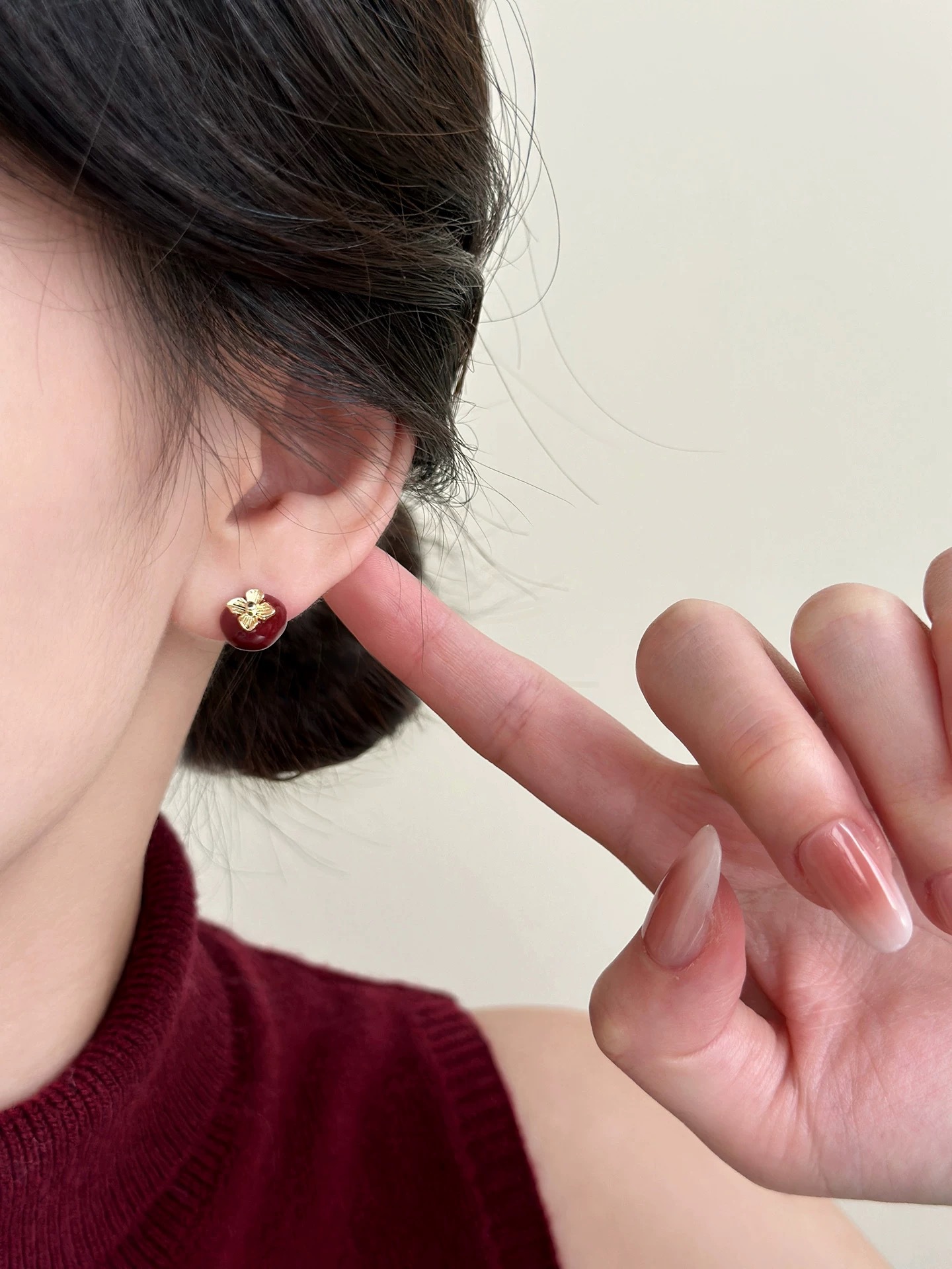 A2廠 韓國韓版聖誕節滴油蘋果銀針耳環 批發 折扣@洽客服 25.12.W1「HE29443」