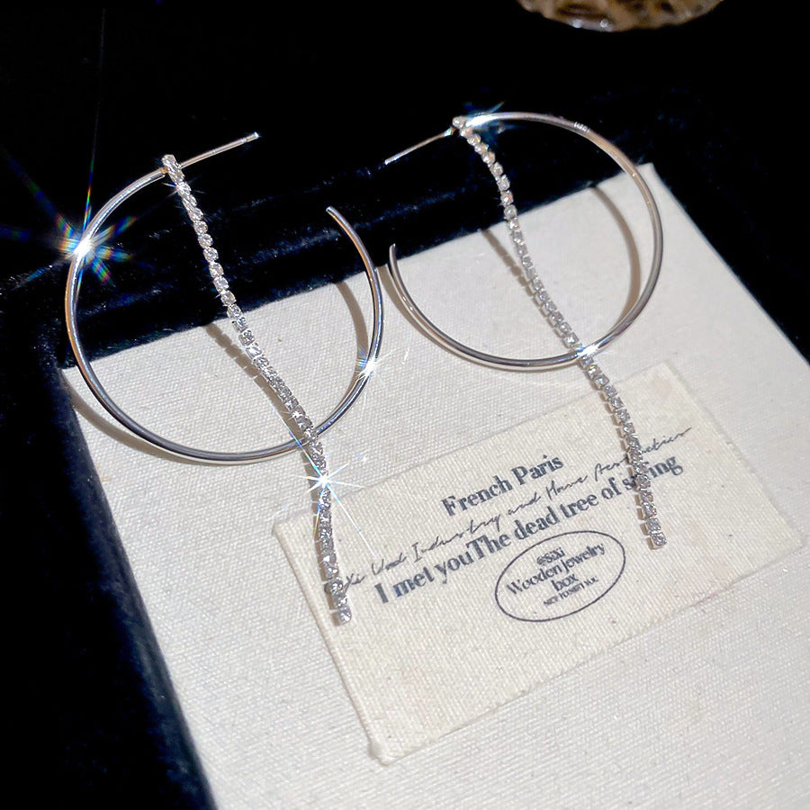 A2廠 韓國韓版鑲鑽圓形流蘇銀針耳環 批發 折扣@洽客服 25.12.W4「HE29662」