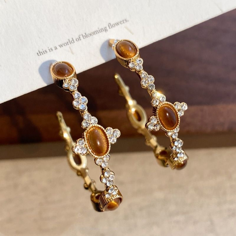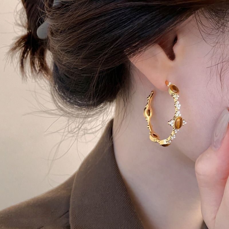 A2廠 韓國韓版虎眼石C型電鍍18k真金耳環 批發 折扣@洽客服 26.01.W1「HE29673」