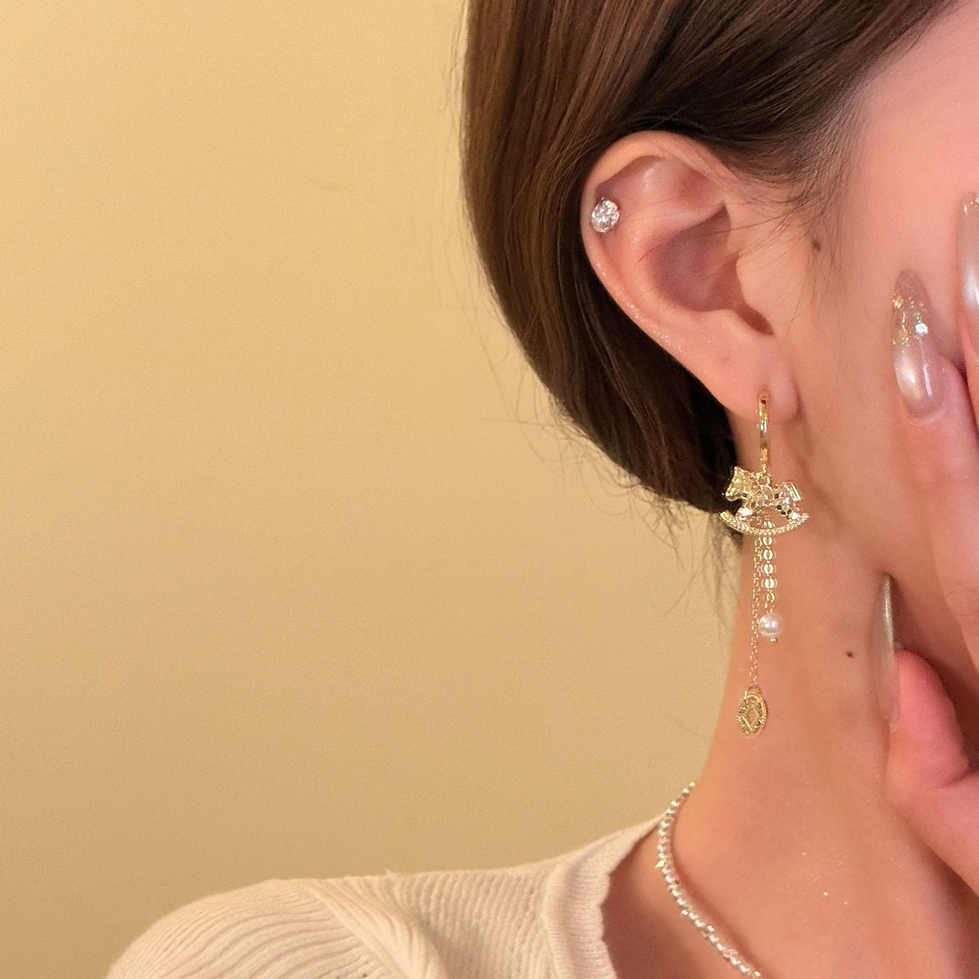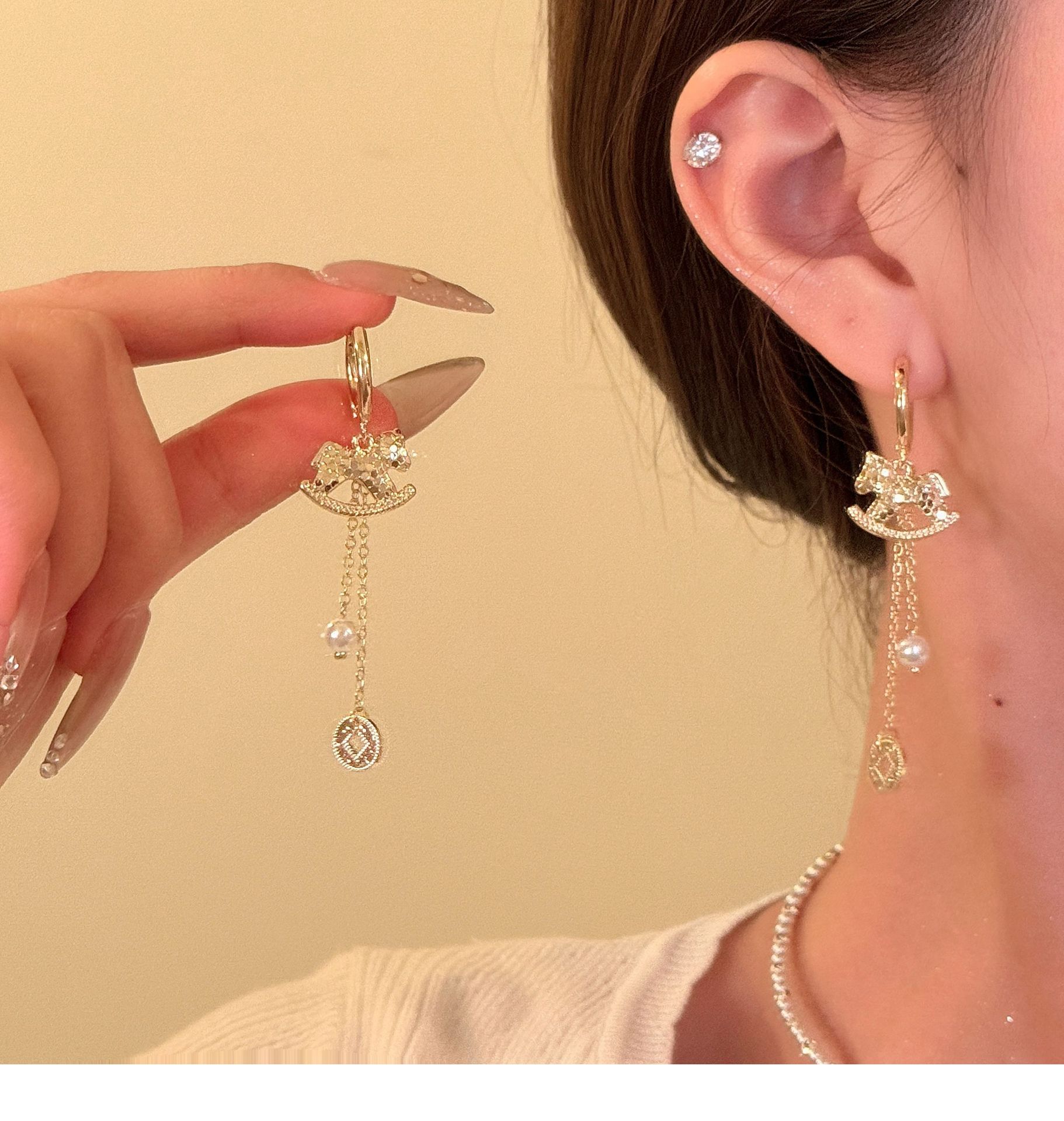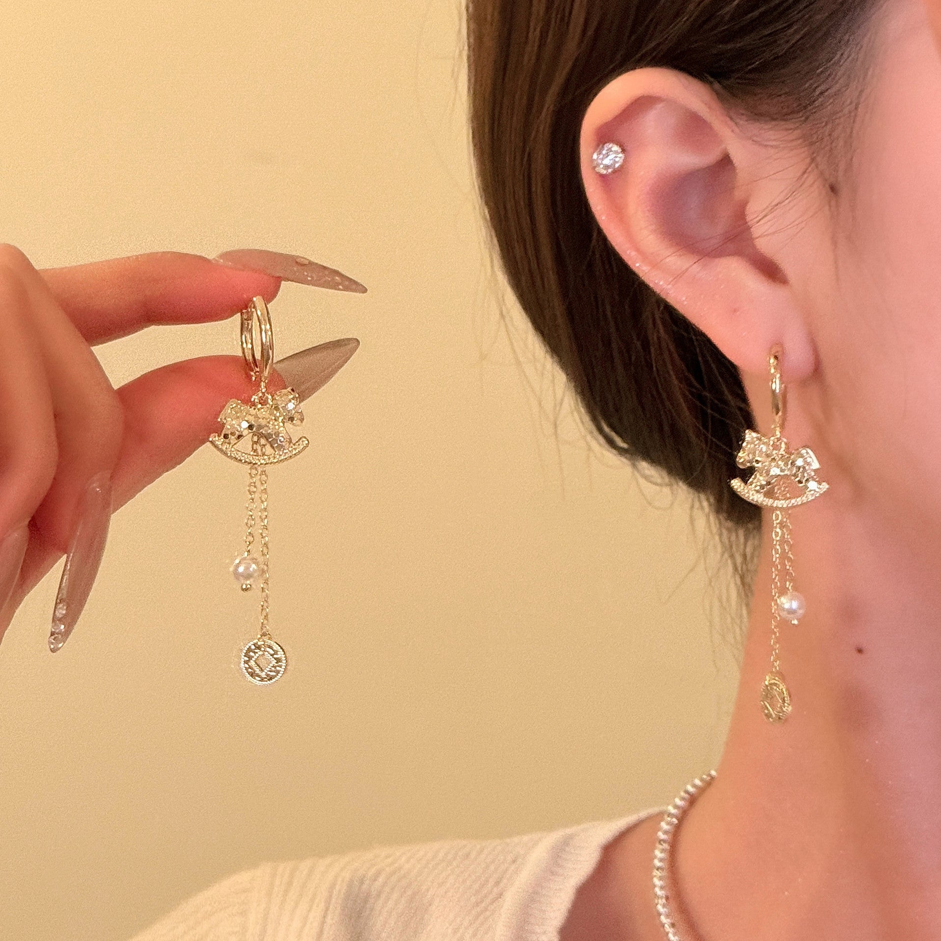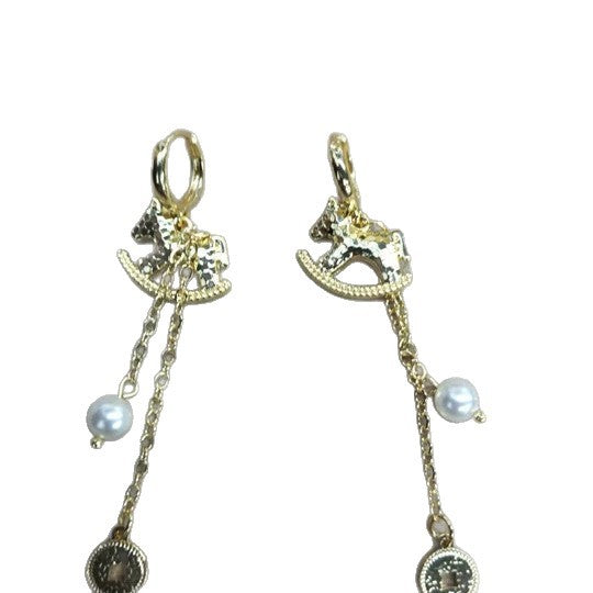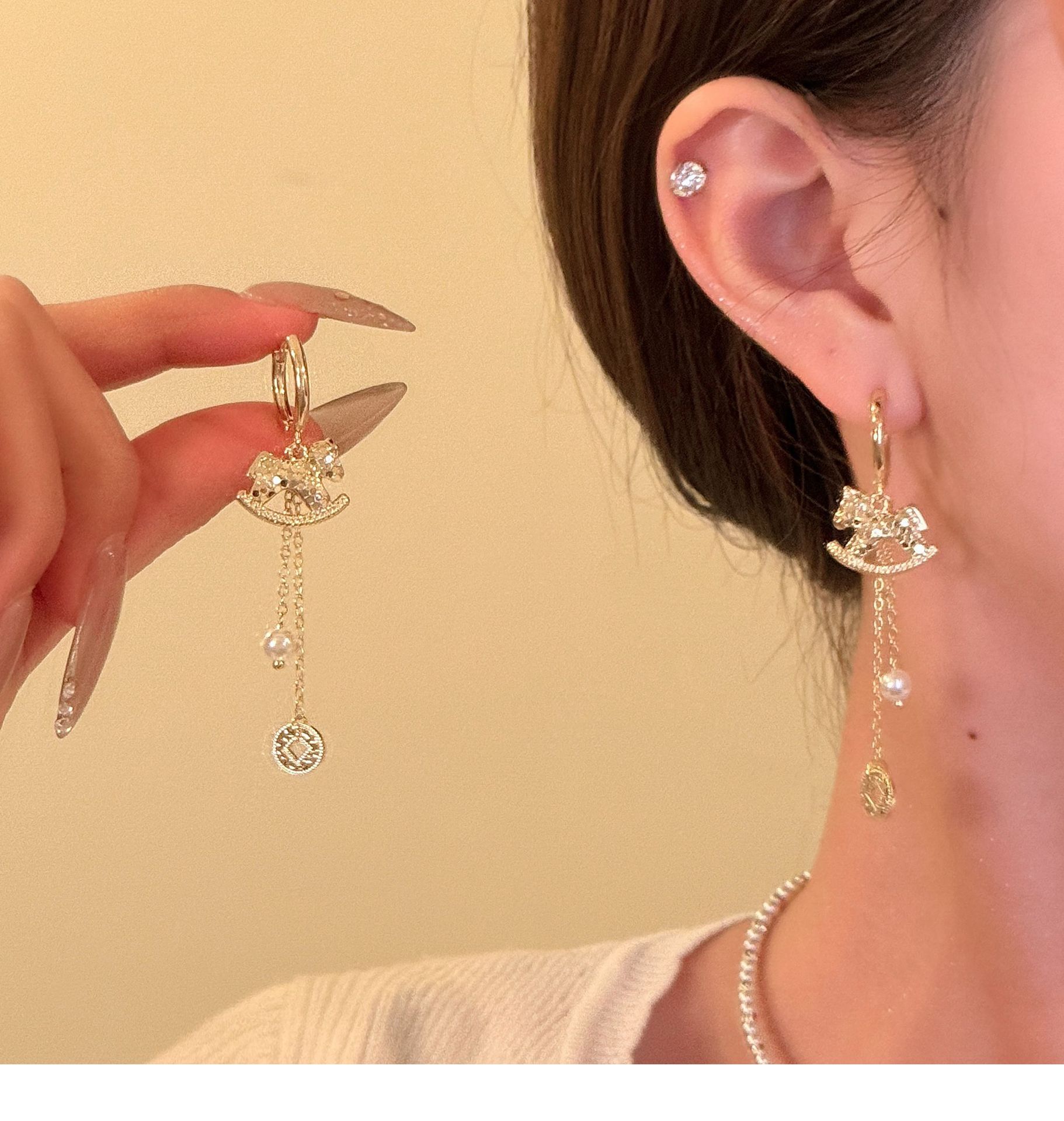 A2廠 韓國韓版小馬銅錢流蘇珍珠耳環 批發 折扣@洽客服 26.01.W1「HE29691」