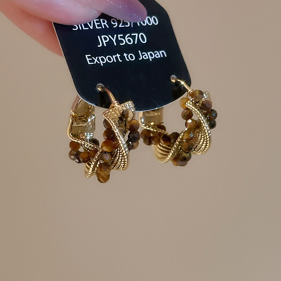 A2廠 韓國韓版虎眼石扭曲三角形銀針耳環 批發 折扣@洽客服 25.12.W4「HE29718」