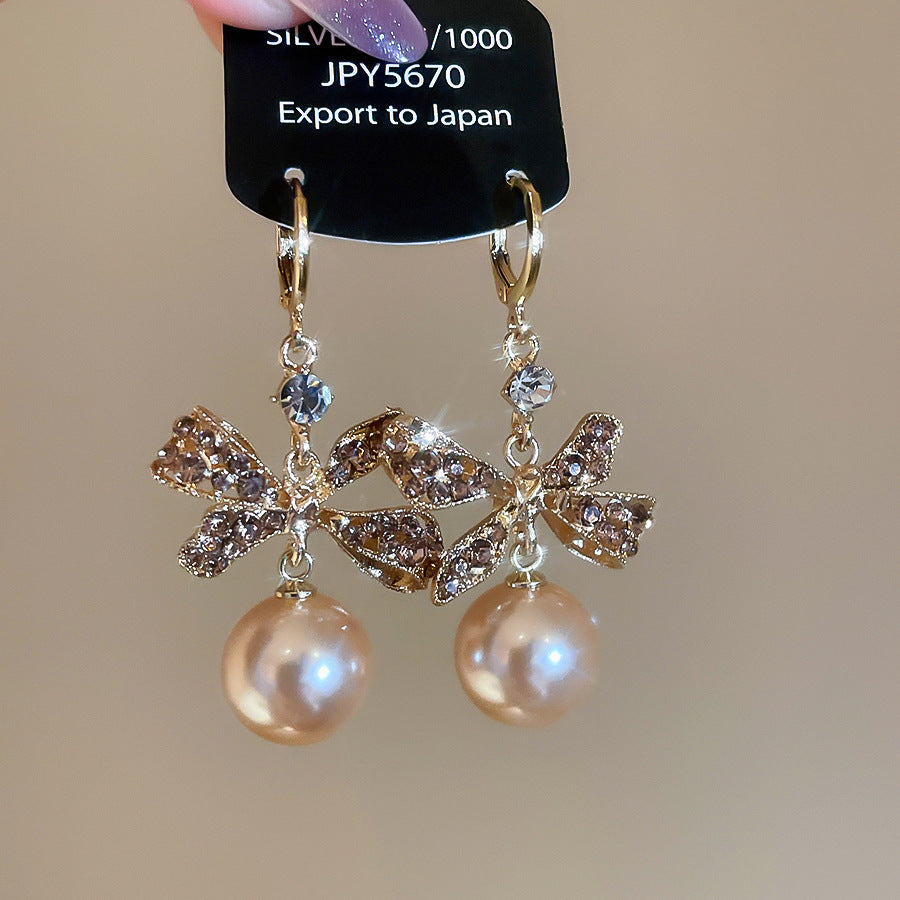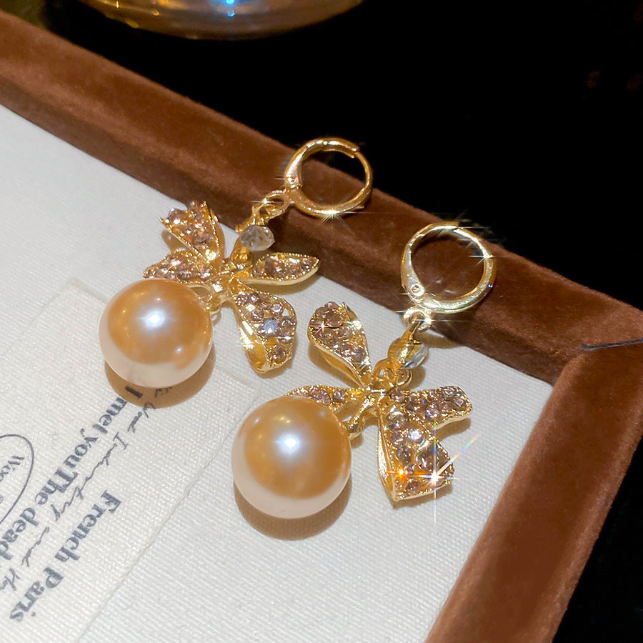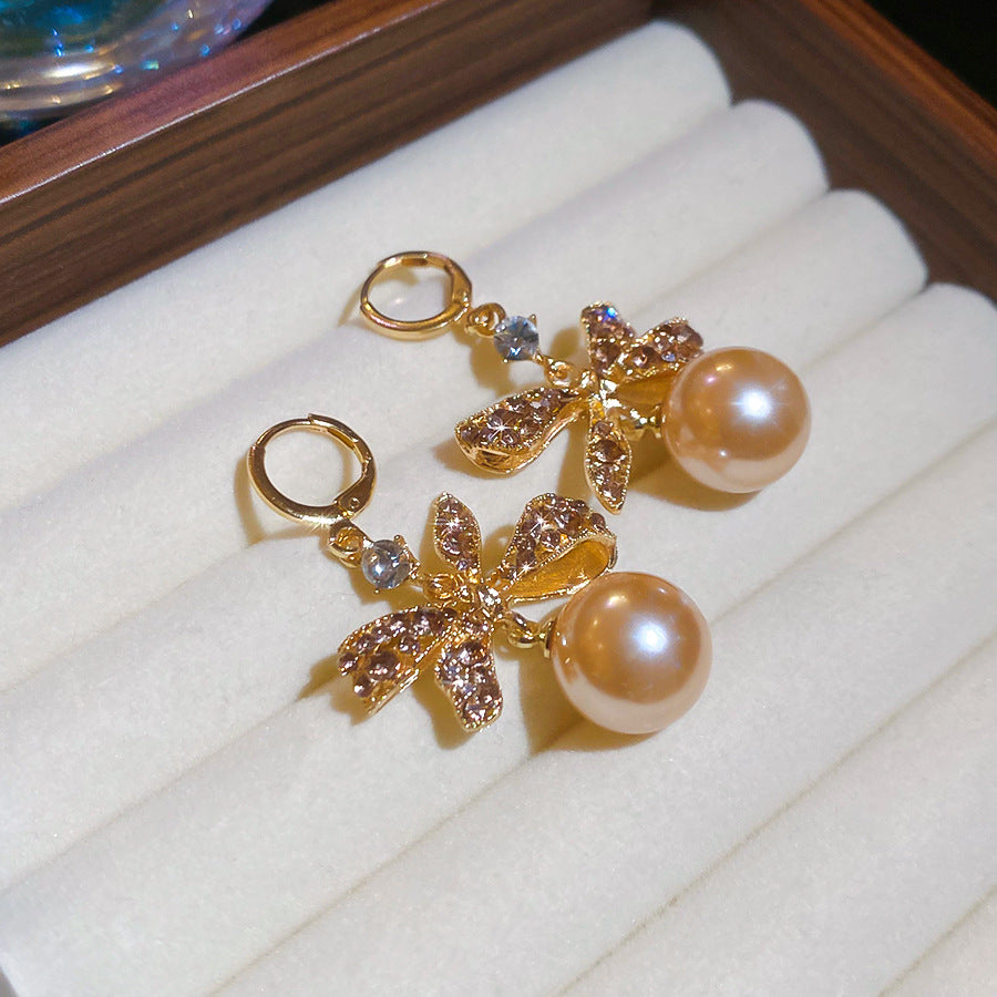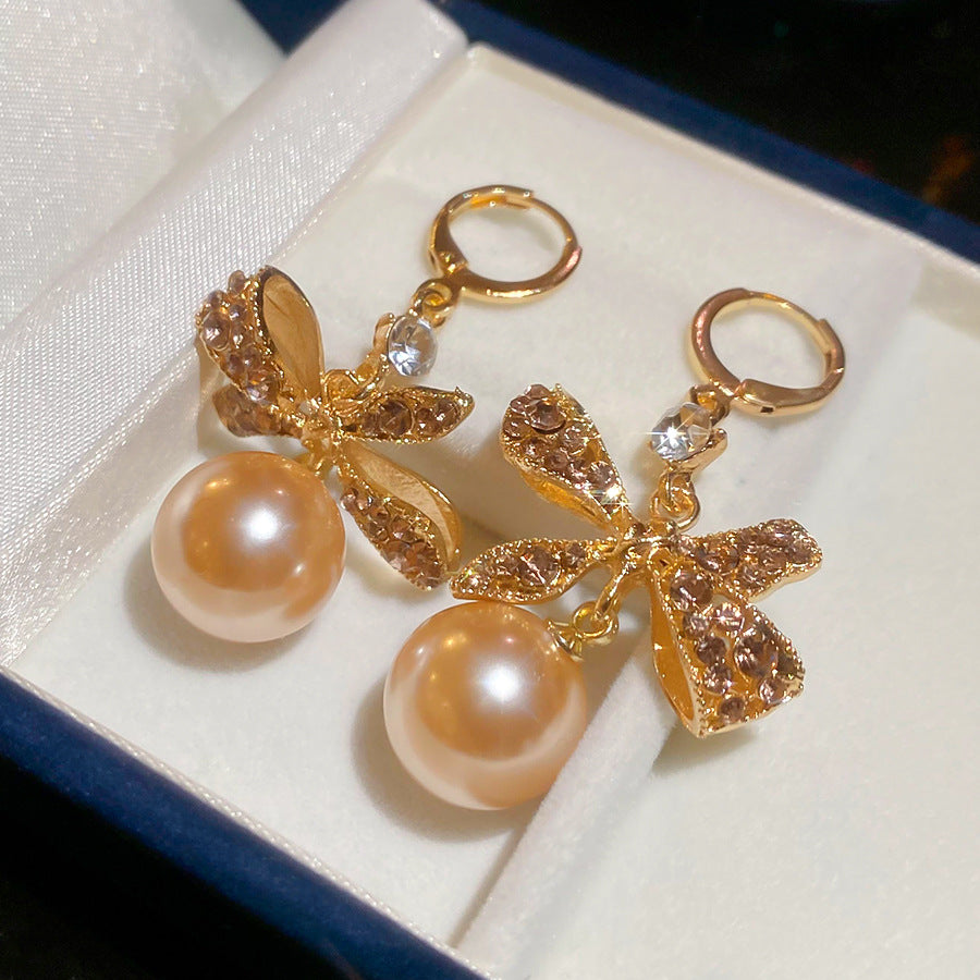 A2廠 韓國韓版鑲鑽蝴蝶結珍珠耳環 批發 折扣@洽客服 26.01.W1「HE29796」