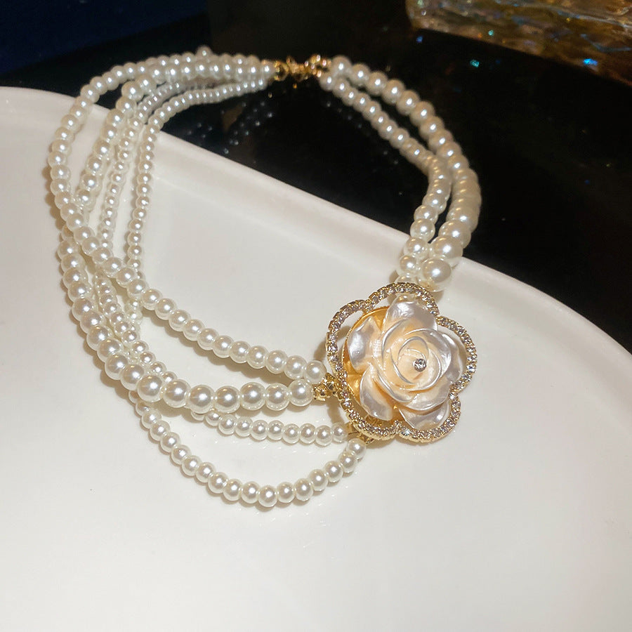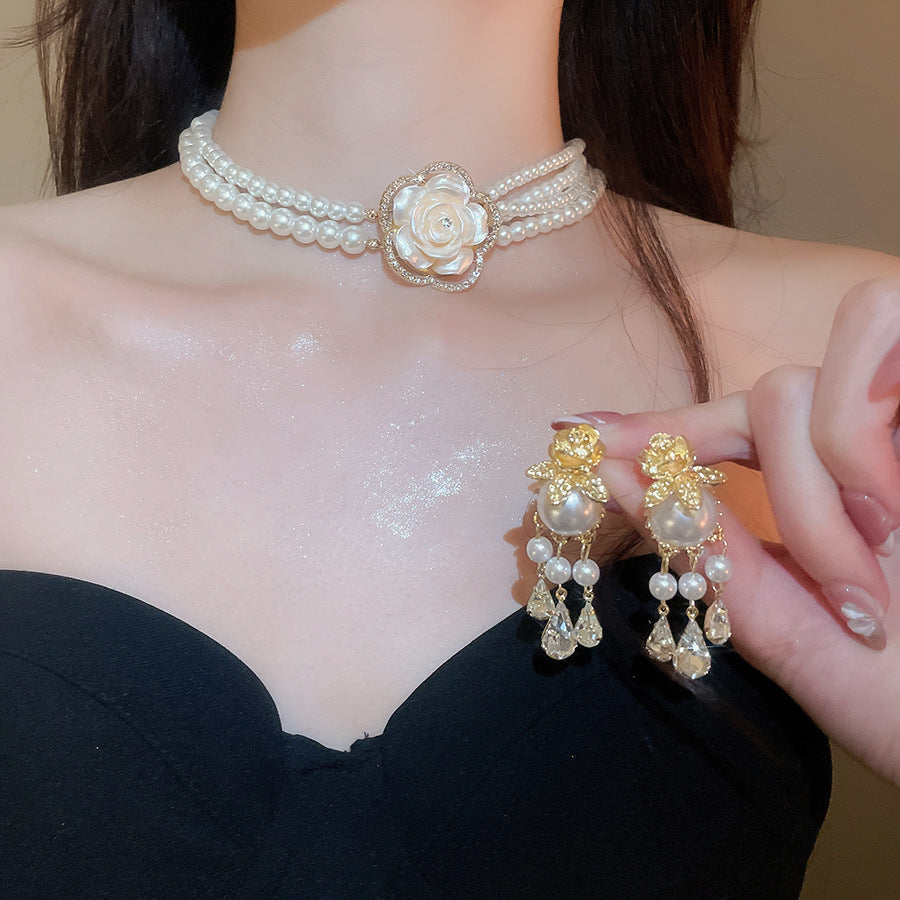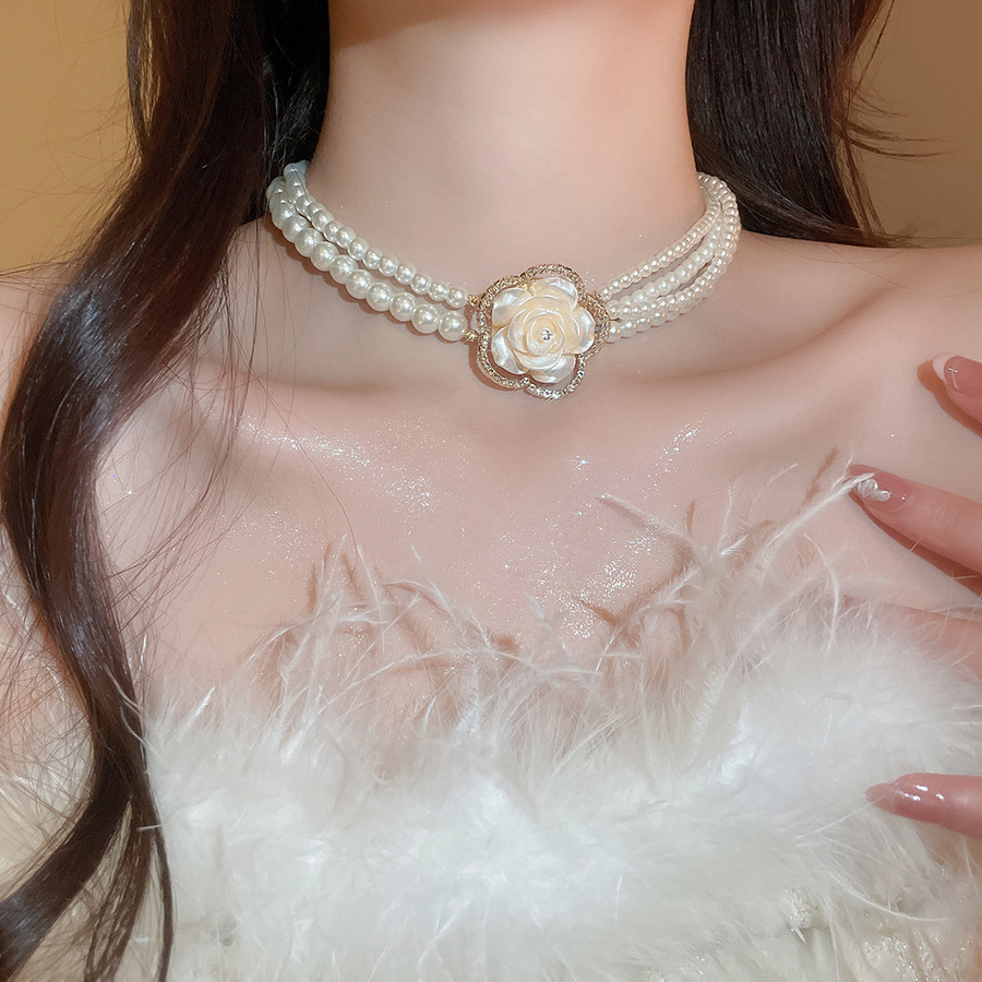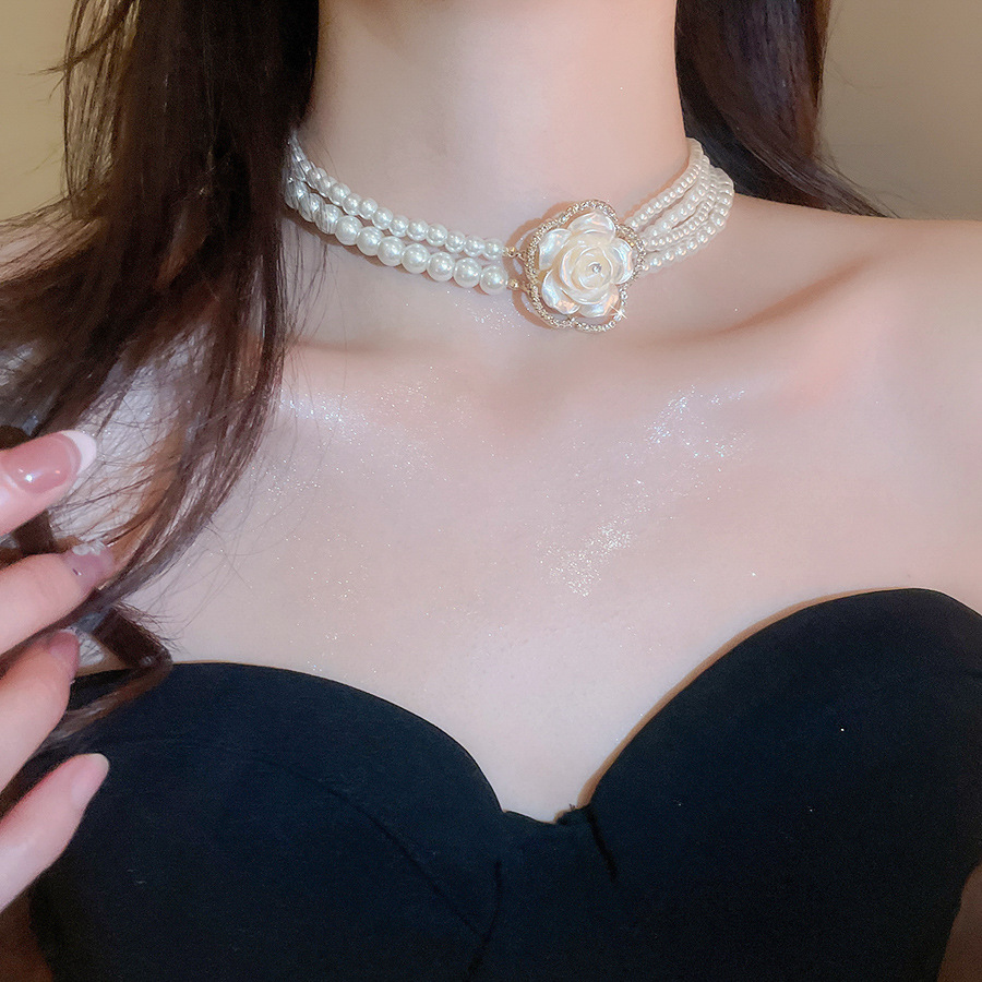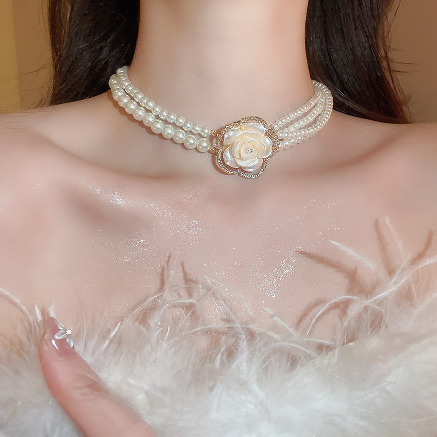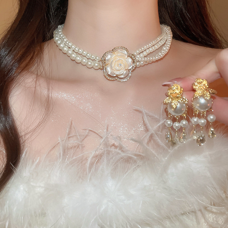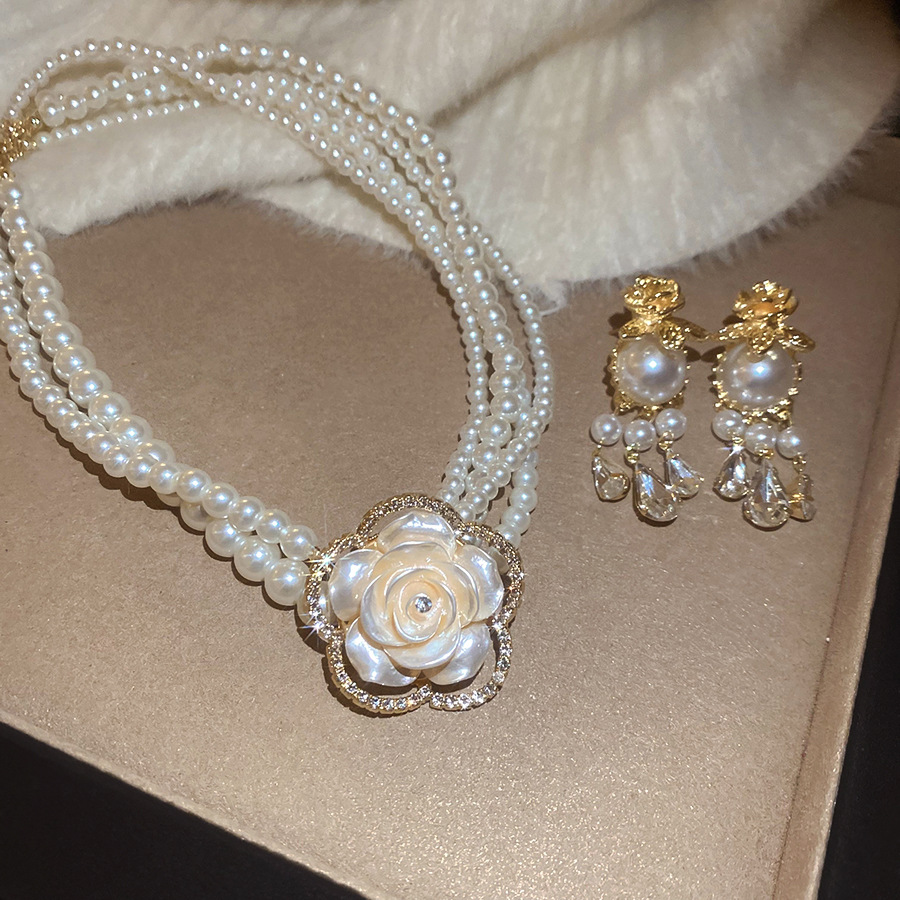 A2廠 韓國韓版鑲鑽花朵多層珍珠項鍊&耳環 批發 折扣@洽客服 26.01.W1「HE29800 HN10880」