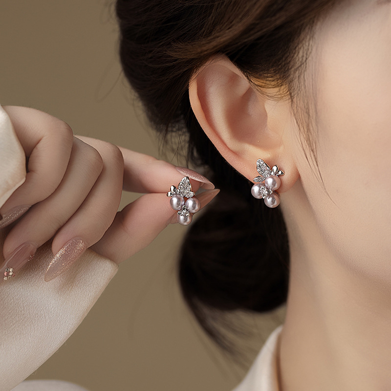 A2廠 韓國韓版鑲鑽花珍珠銀針耳環 批發 折扣@洽客服 25.12.W4「HE29842」