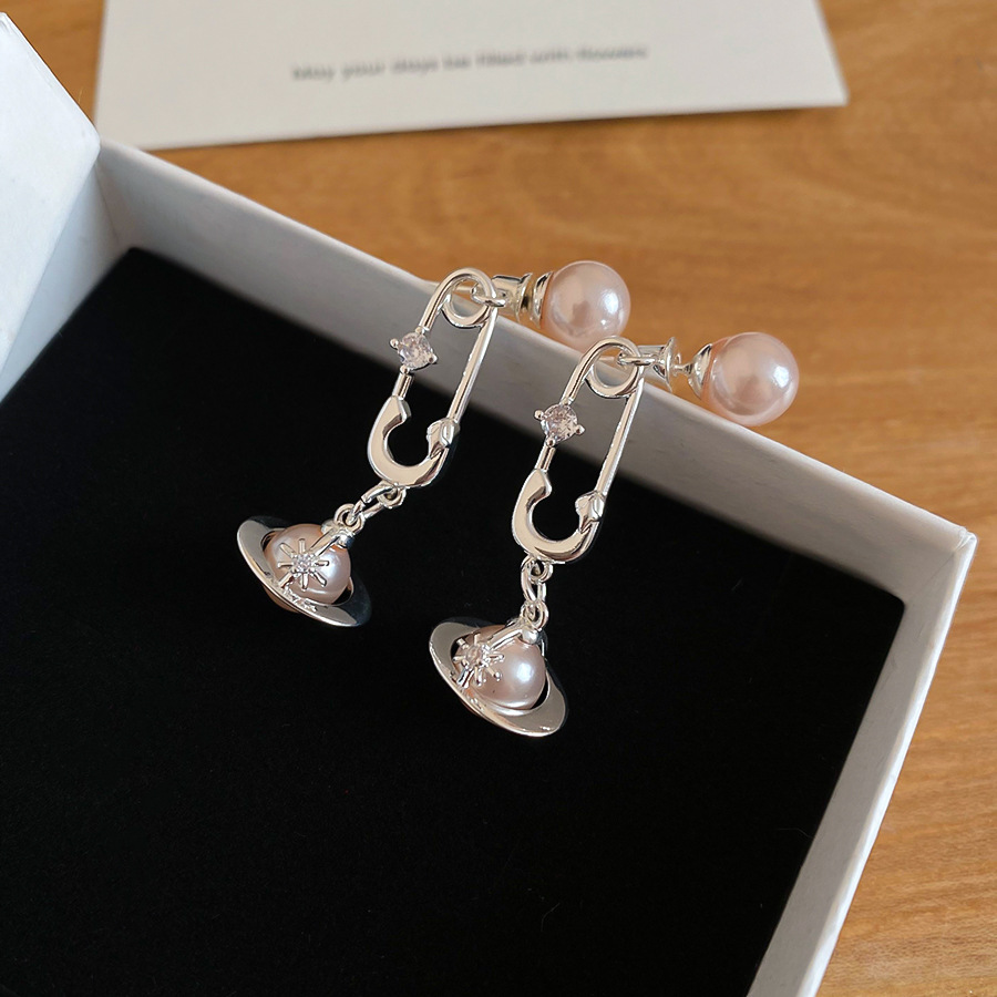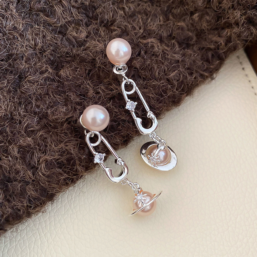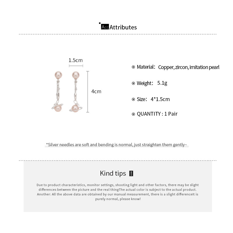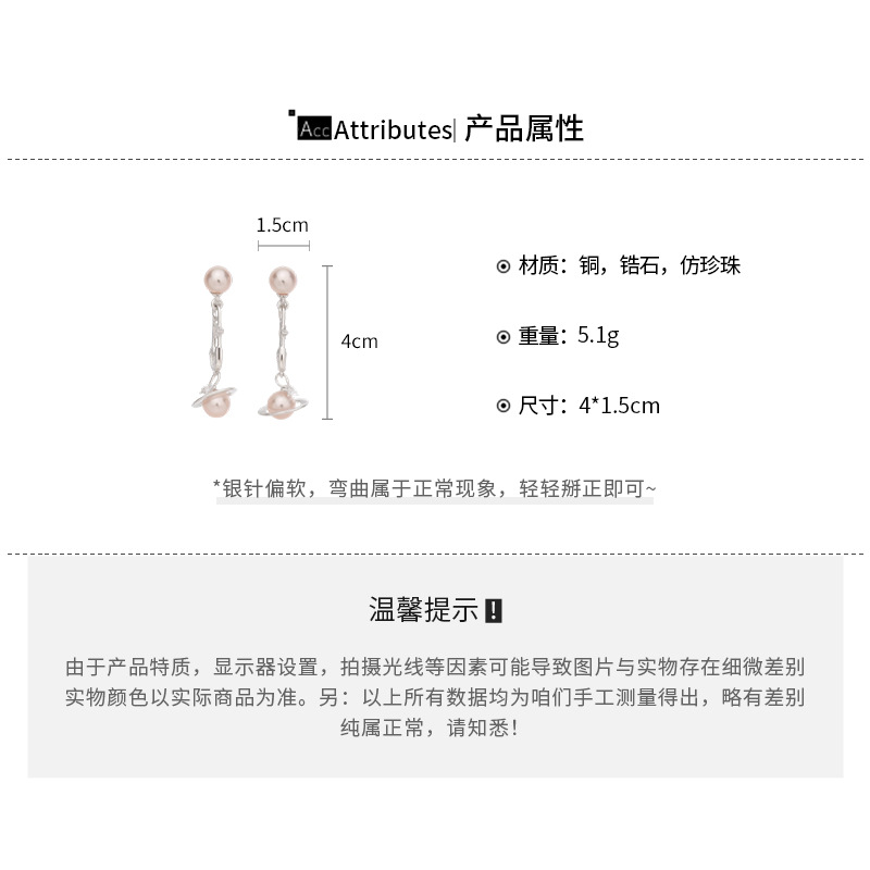 A2廠 鈦鋼|韓系鋯石土星珍珠銀針耳環 批發 折扣@洽客服 26.02.W1「HE30277」