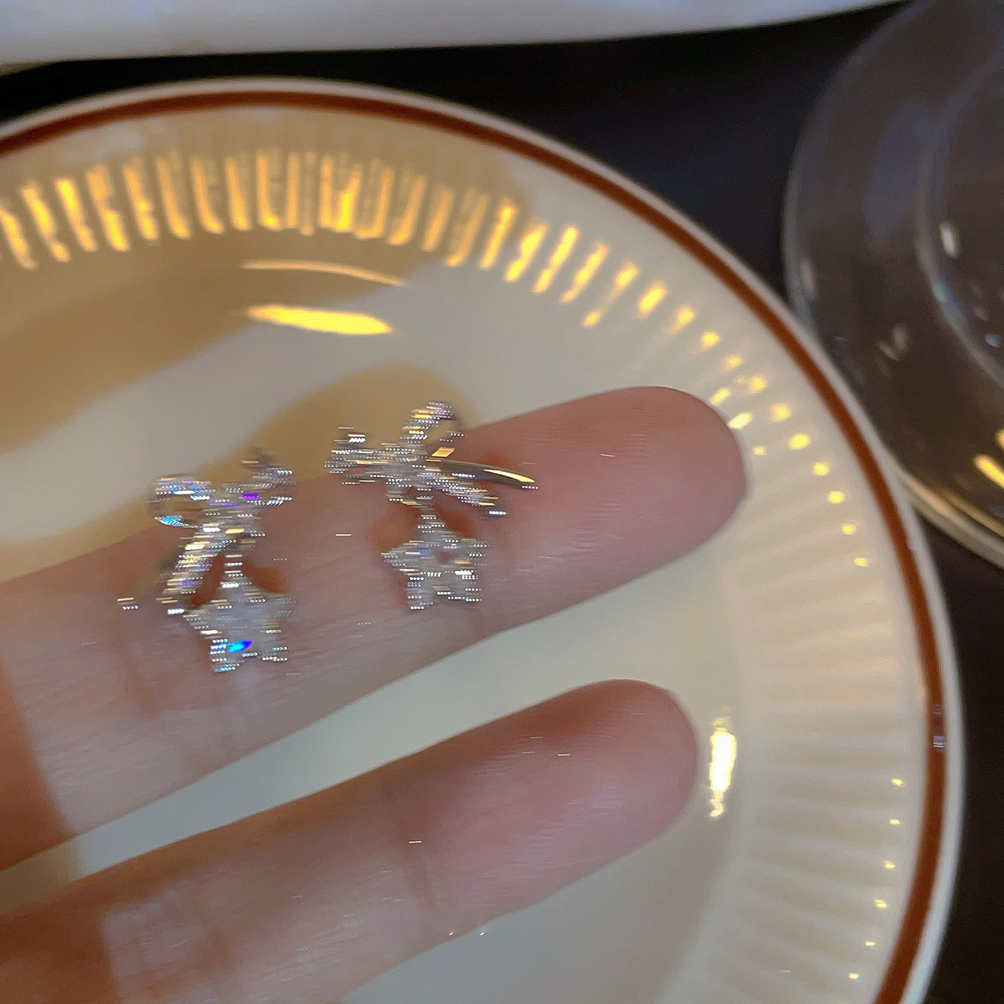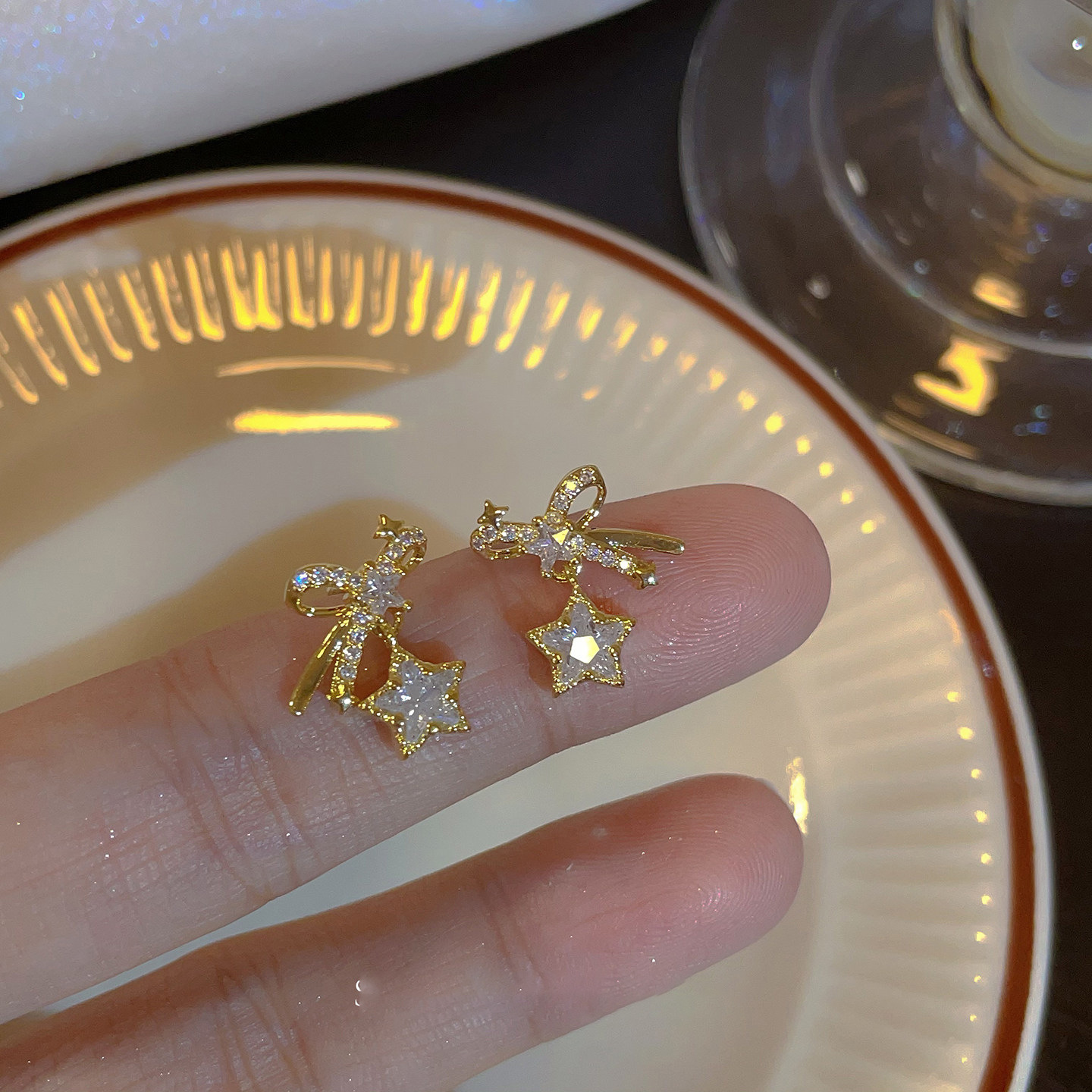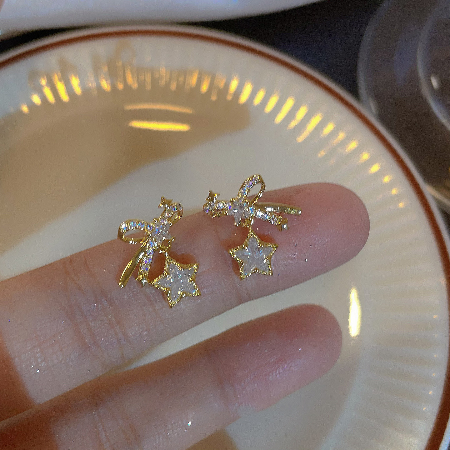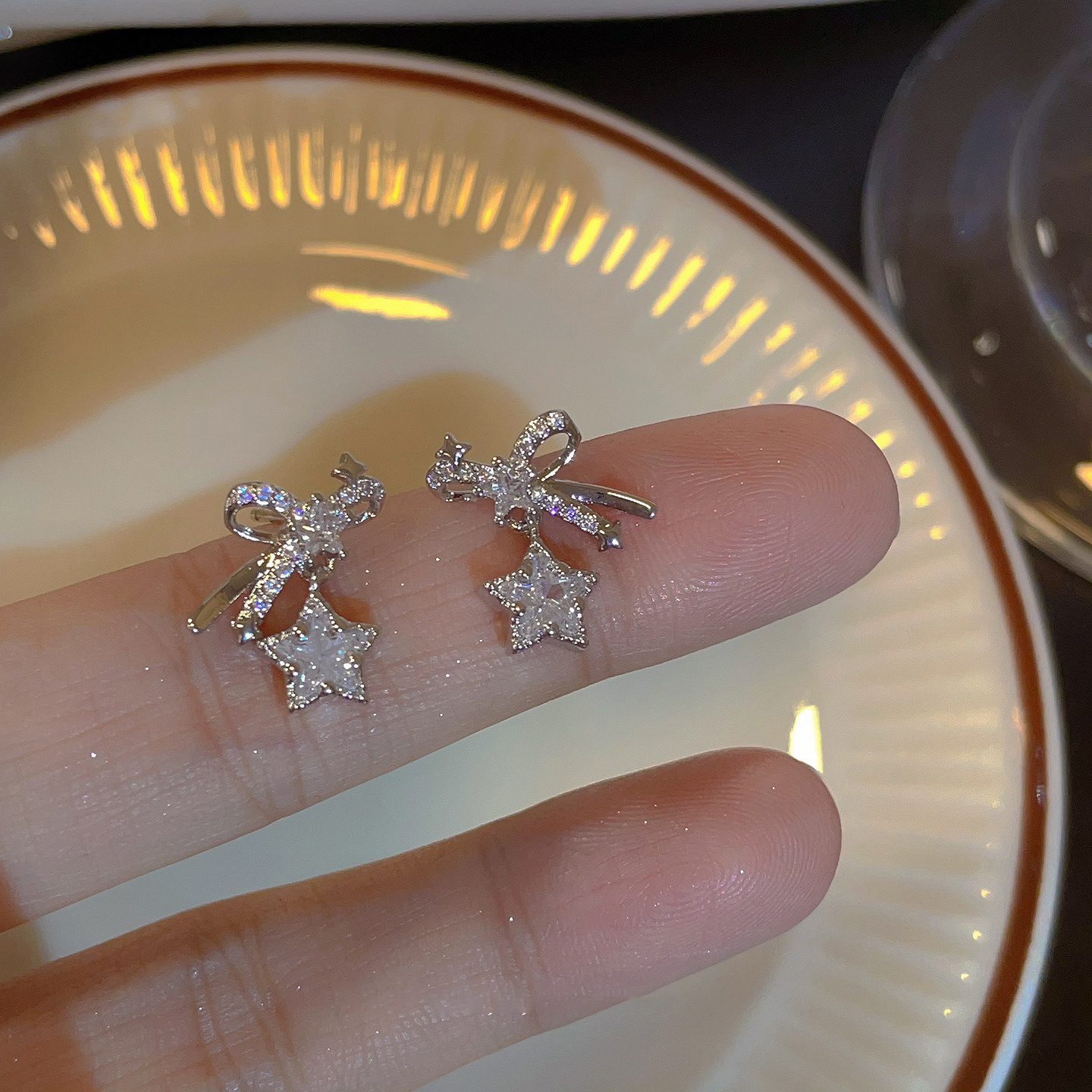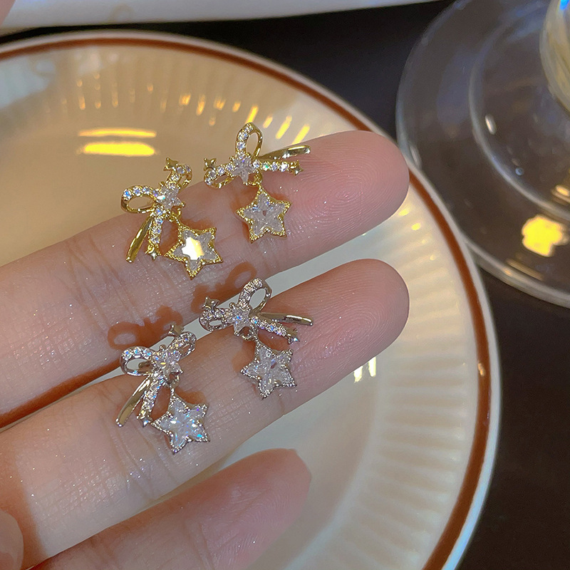 A2廠 鈦鋼|韓系鋯石蝴蝶結星星銀針耳環 批發 折扣@洽客服 26.02.W1「HE30441」