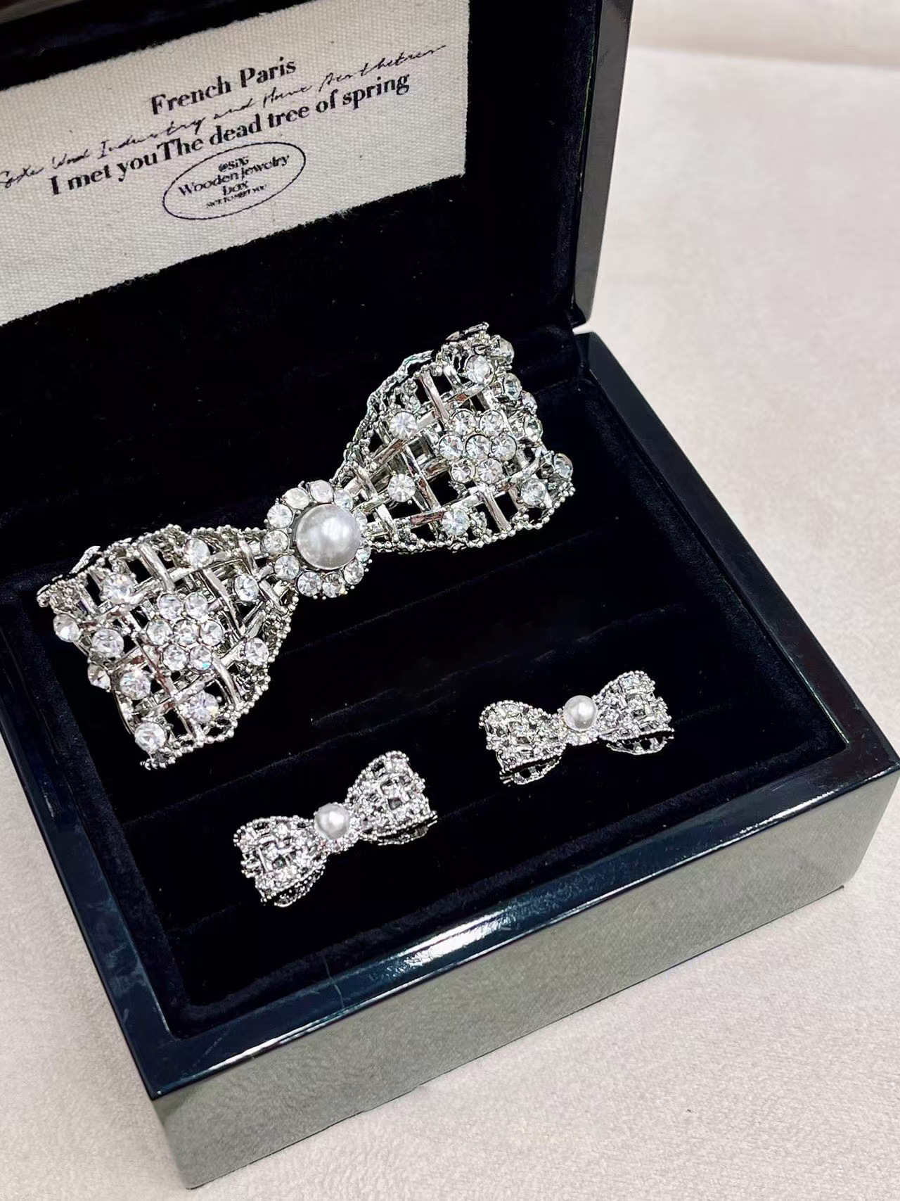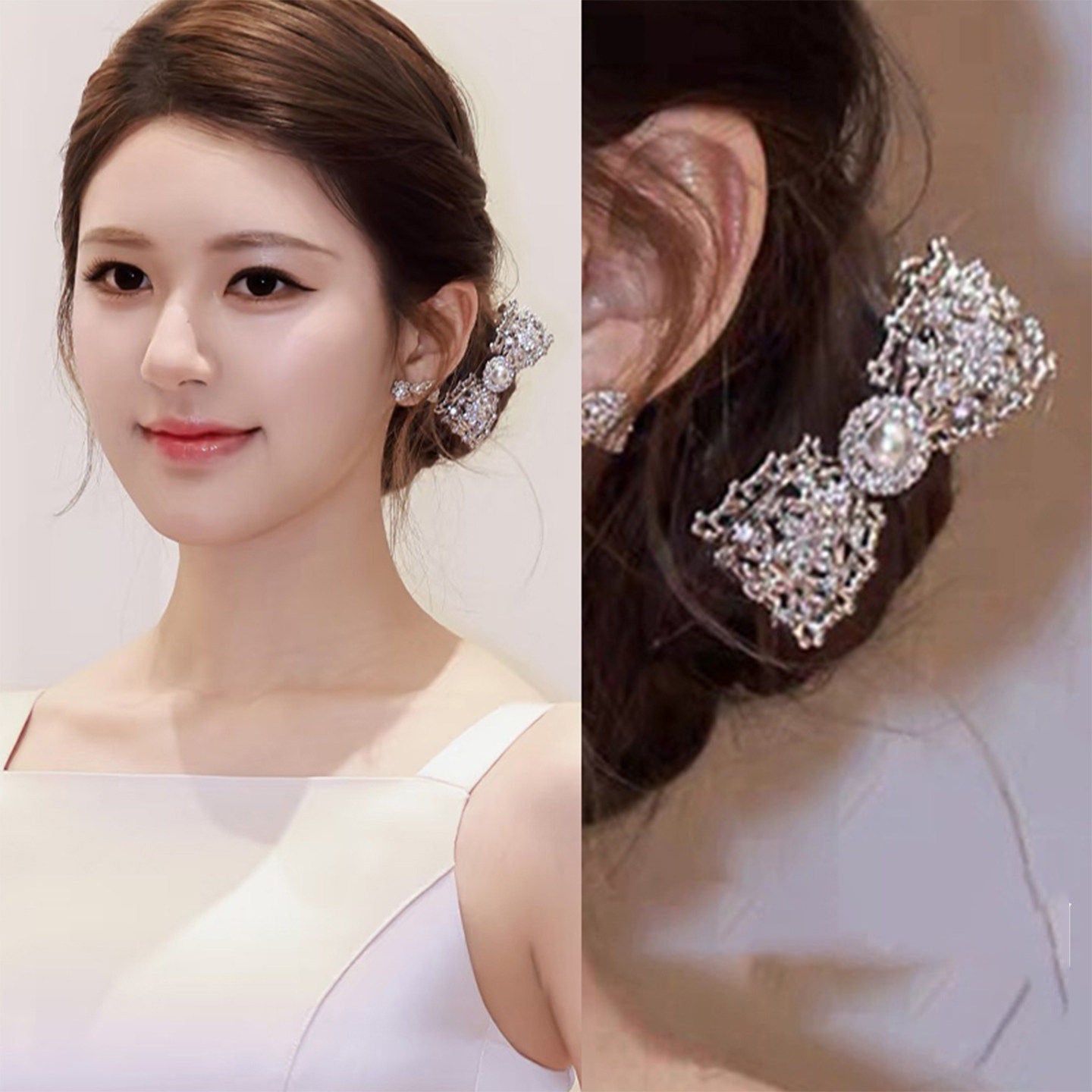 A2廠 韓國韓版鑲鑽鏤空蝴蝶結珍珠銀針耳環 &髮夾 批發 折扣@洽客服 26.02.W3「HE30451HH9523」