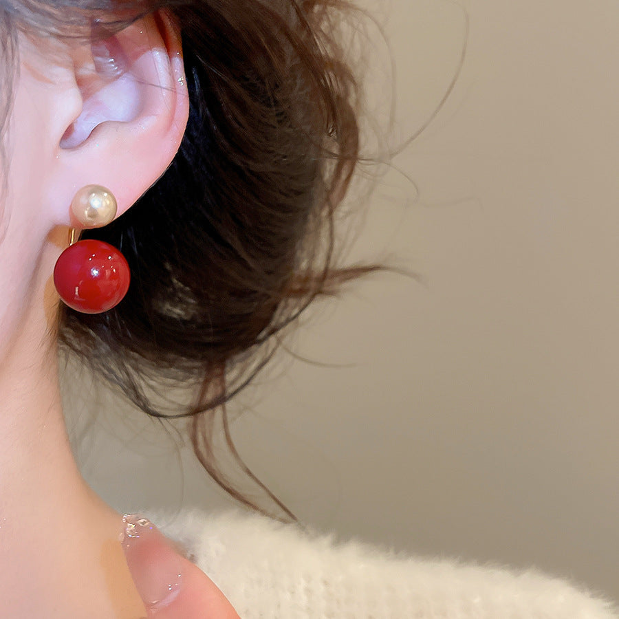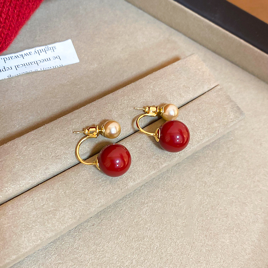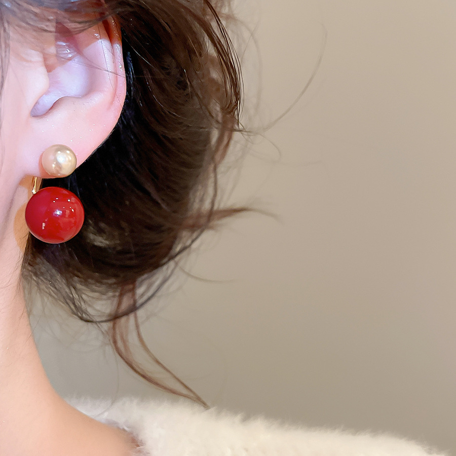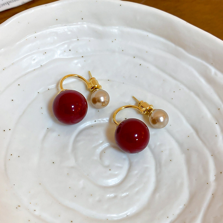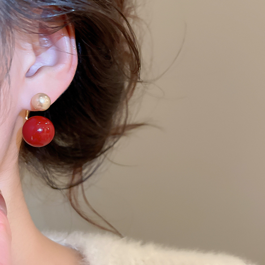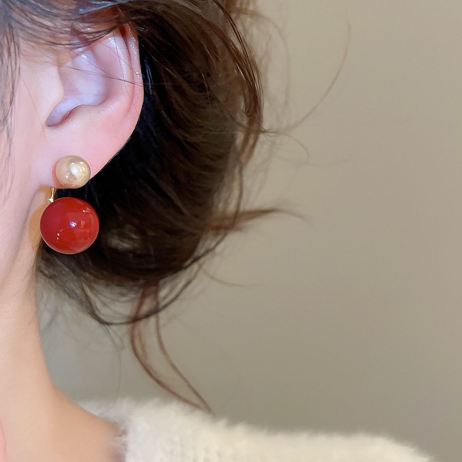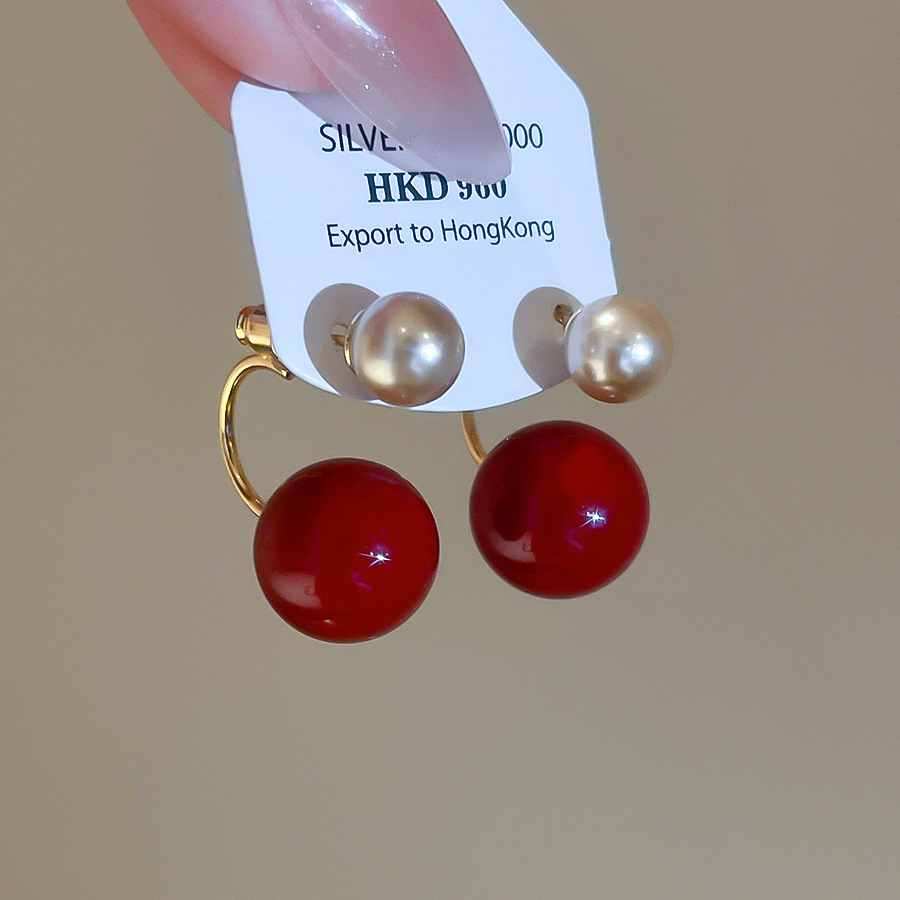 A2廠 韓國韓版紅圓珍珠鈦鋼銀針耳環 批發 折扣@洽客服 26.02.W3「HE30481」