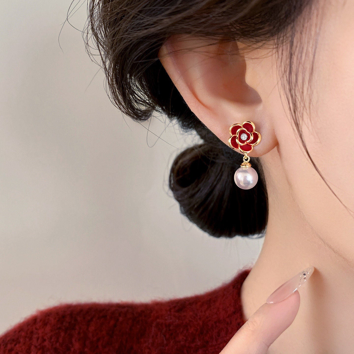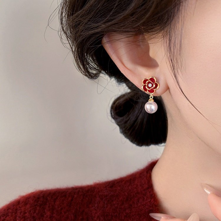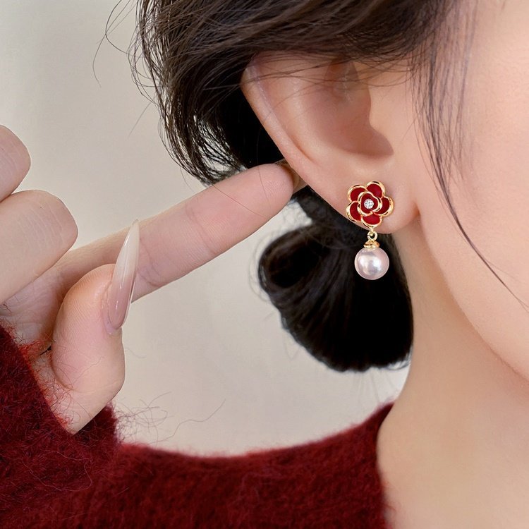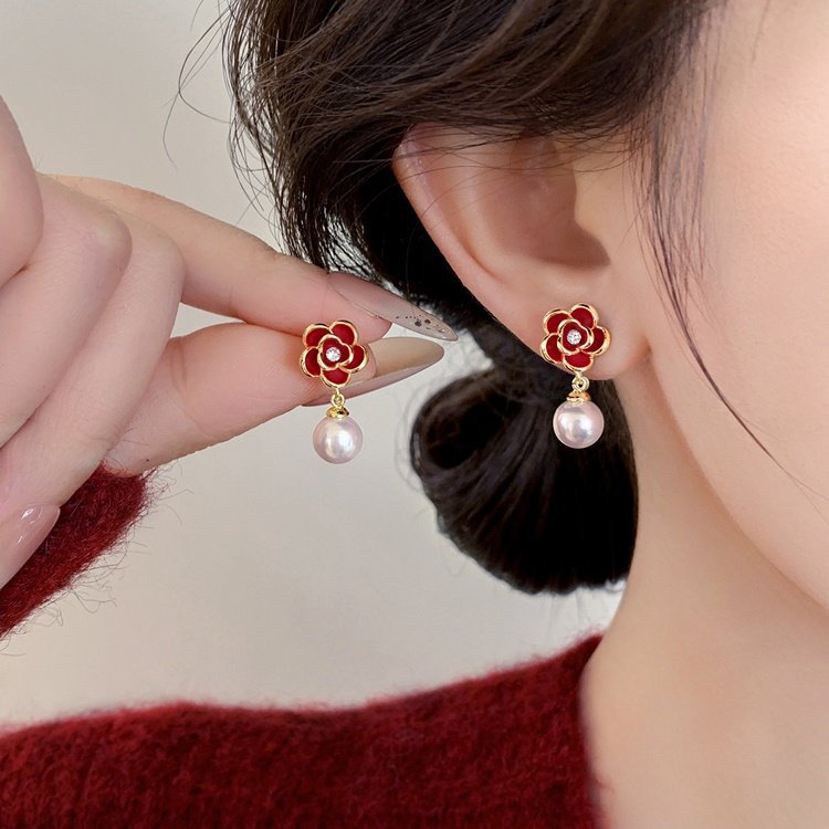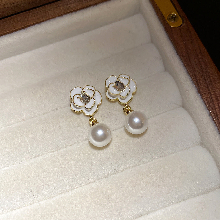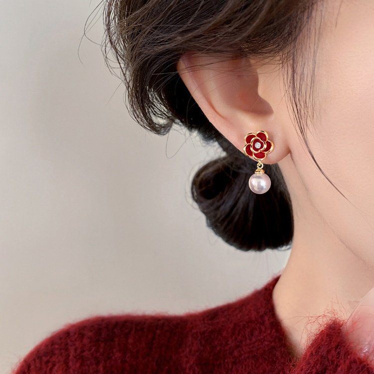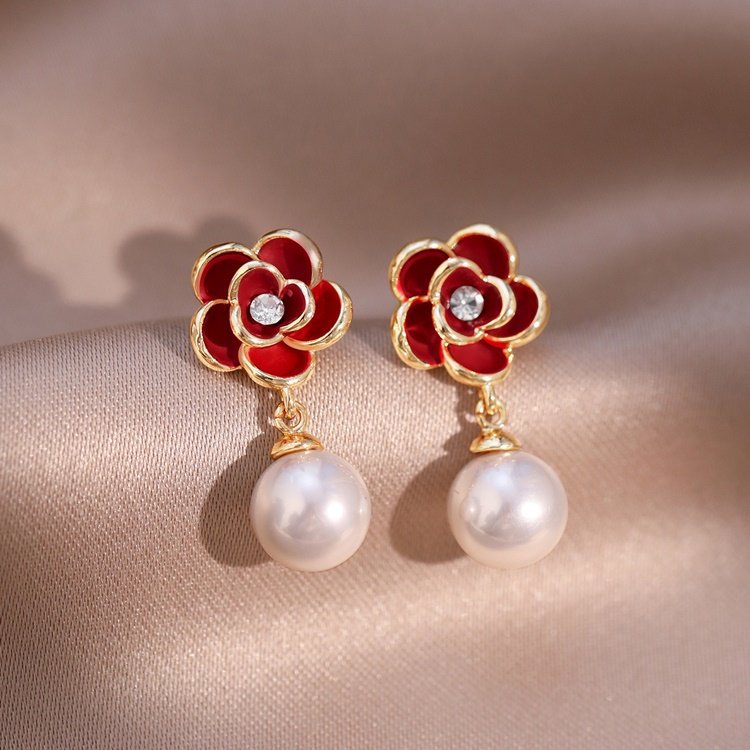 A2廠 韓國韓版 滴油花朵珍珠吊墜耳環批發 折扣@洽客服 26.03.W2「HE30627」