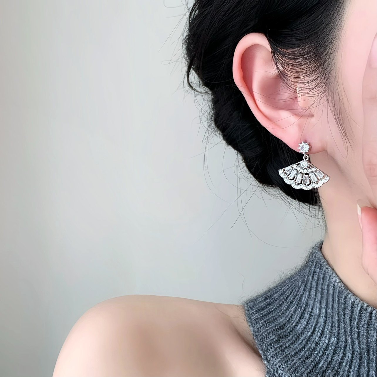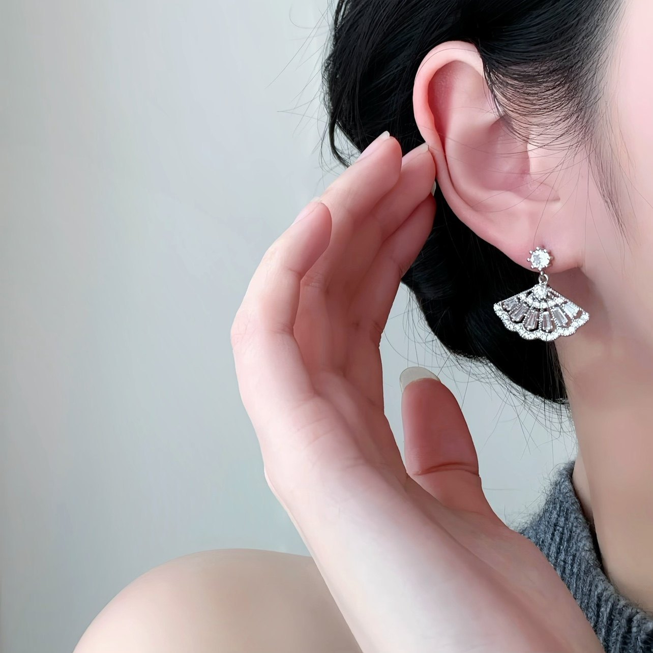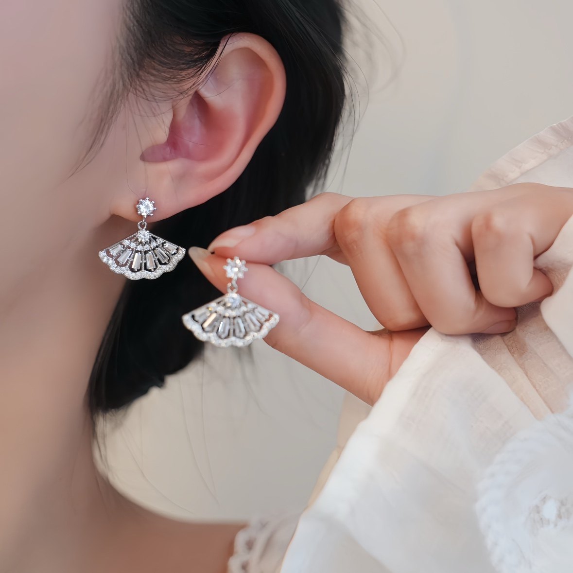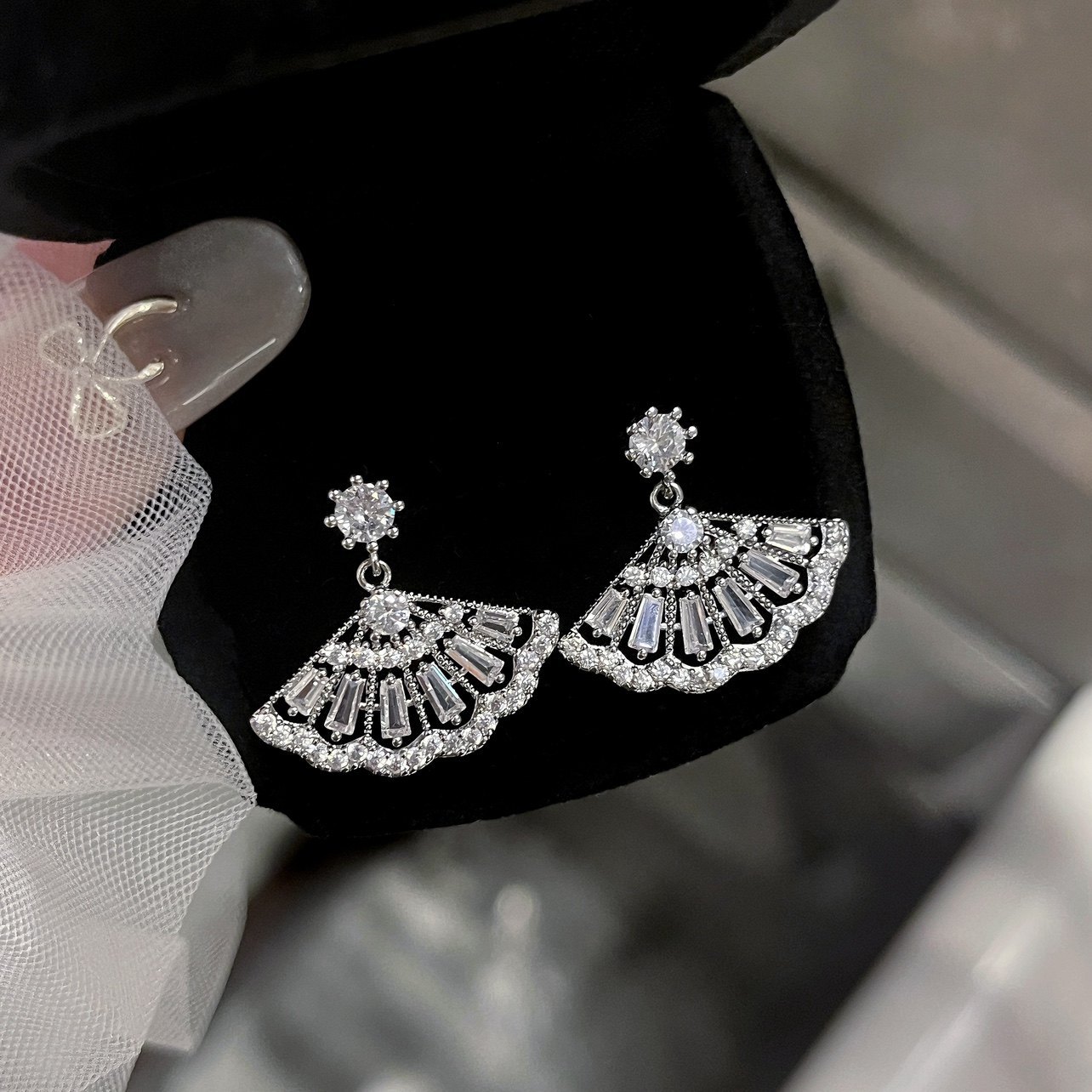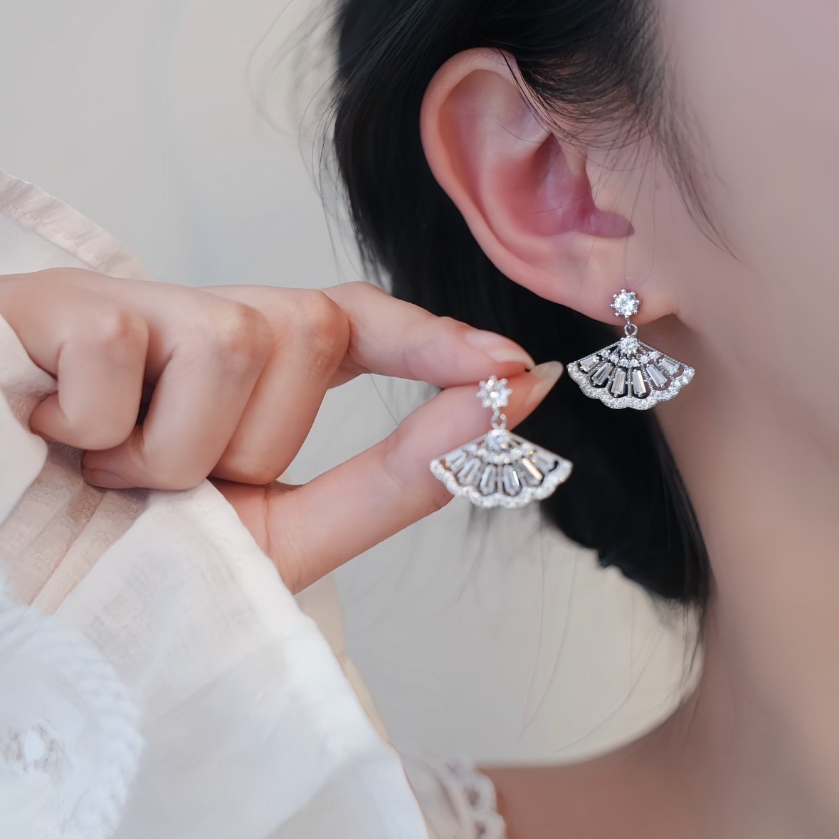 A2廠 韓國韓版鋯石扇形吊墜銀針耳環 批發 折扣@洽客服 26.02.W3「HE30643」