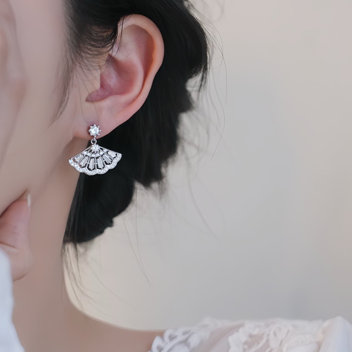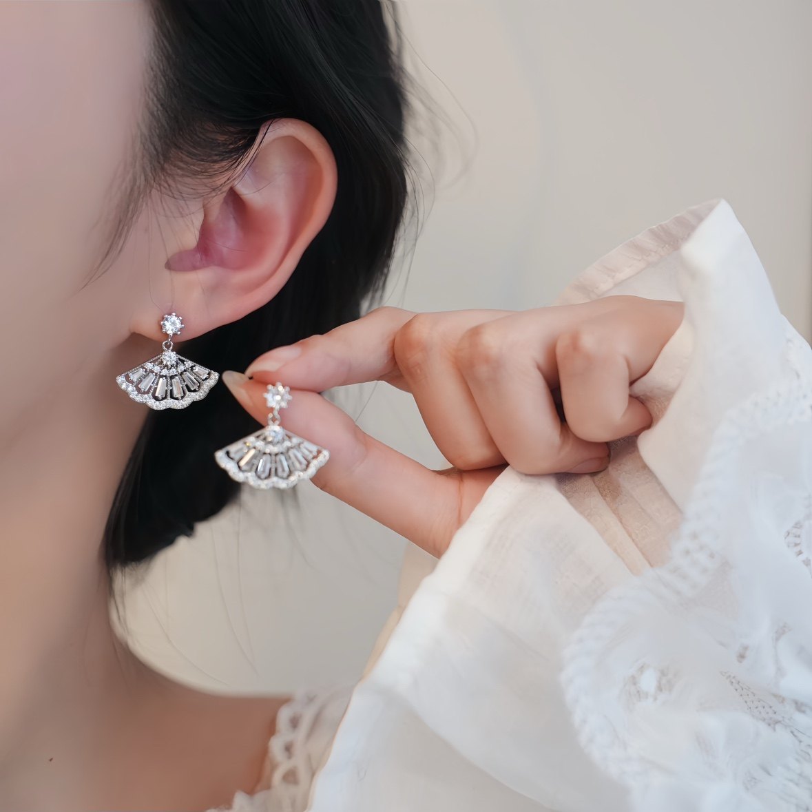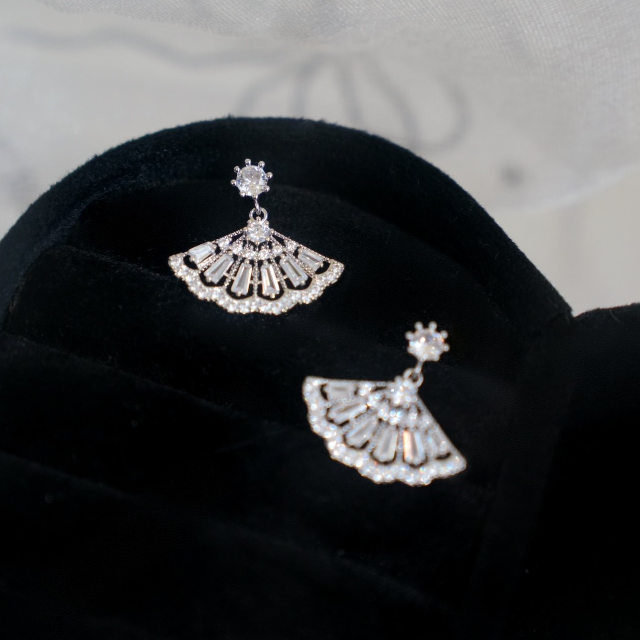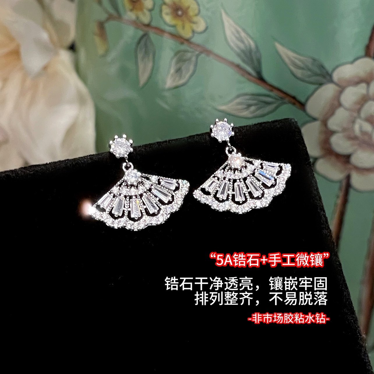 A2廠 韓國韓版鋯石扇形吊墜銀針耳環 批發 折扣@洽客服 26.02.W3「HE30643」