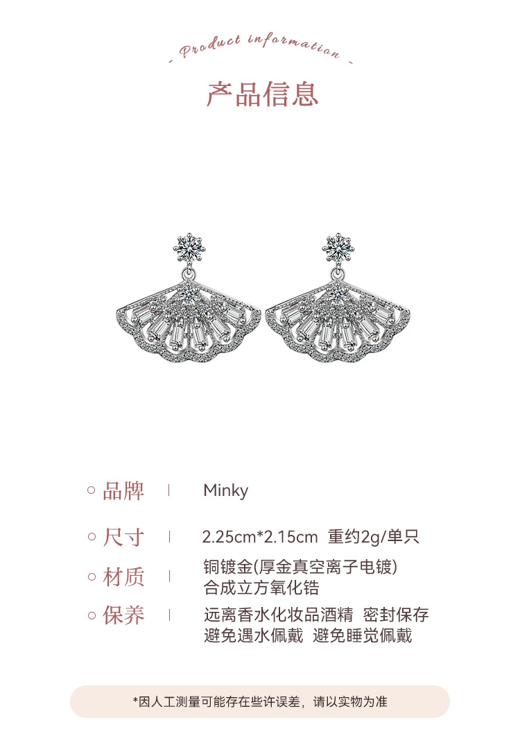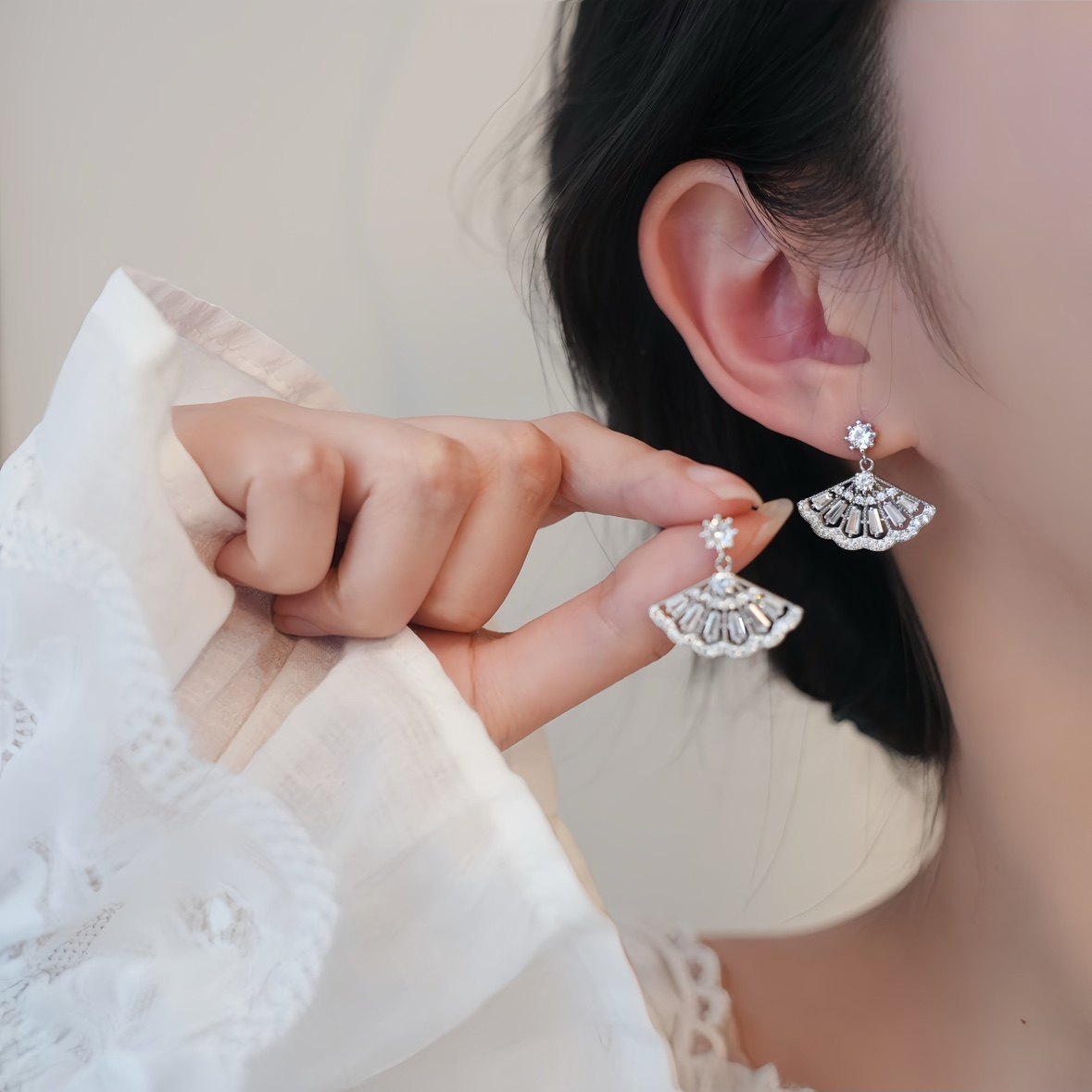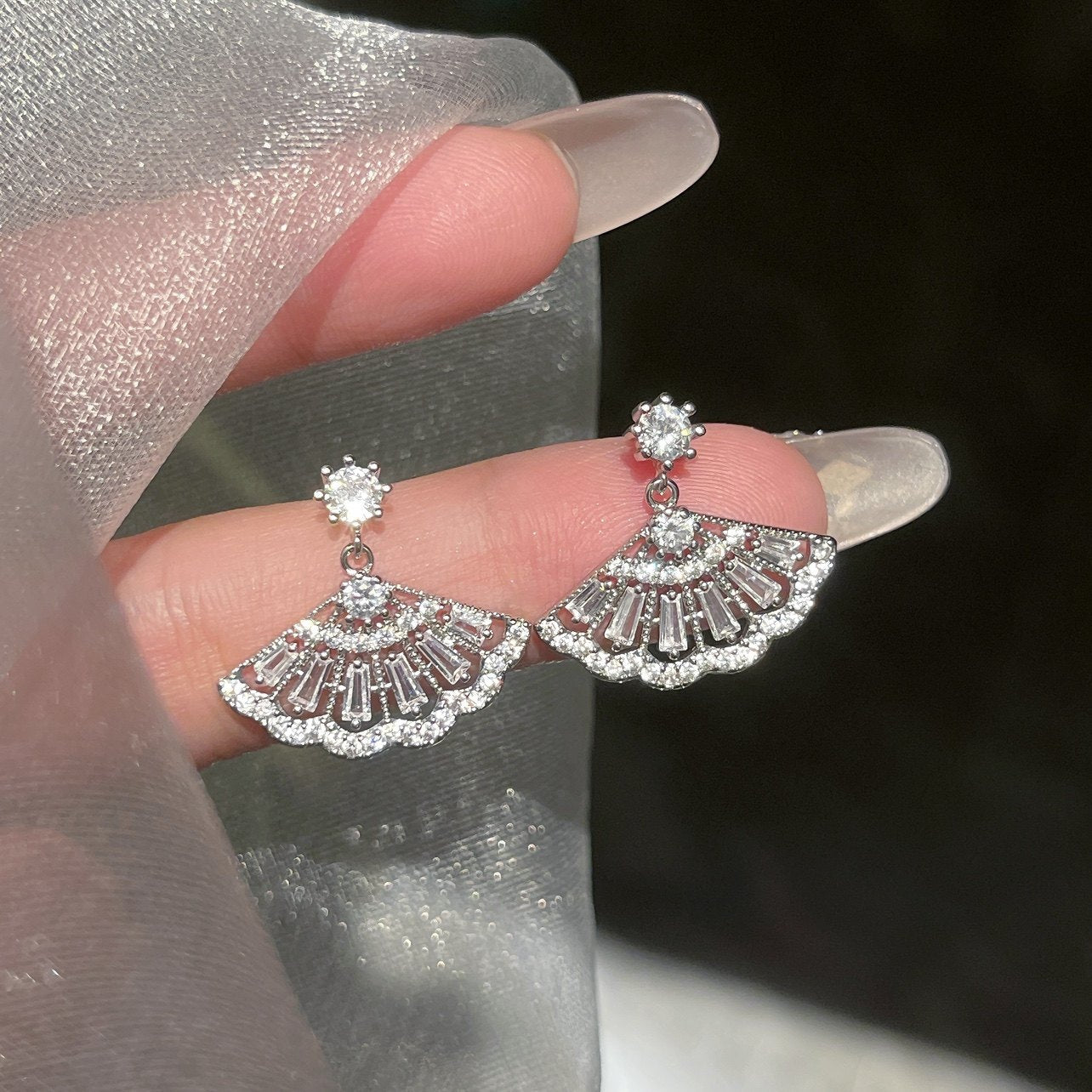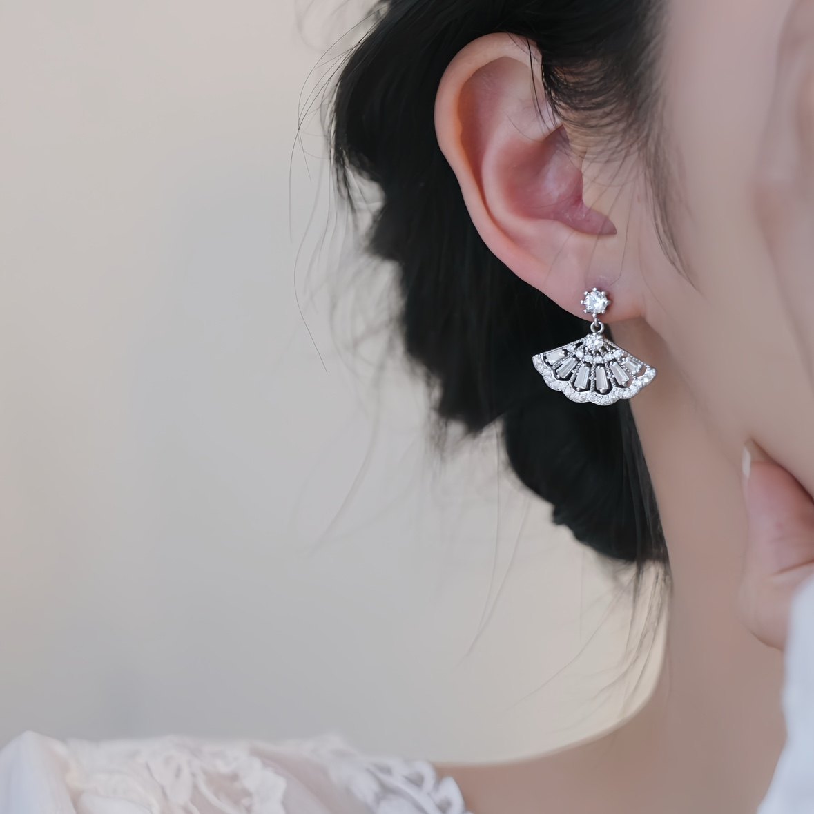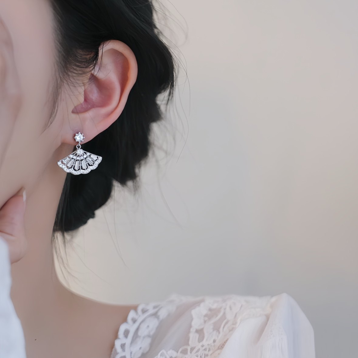 A2廠 韓國韓版鋯石扇形吊墜銀針耳環 批發 折扣@洽客服 26.02.W3「HE30643」