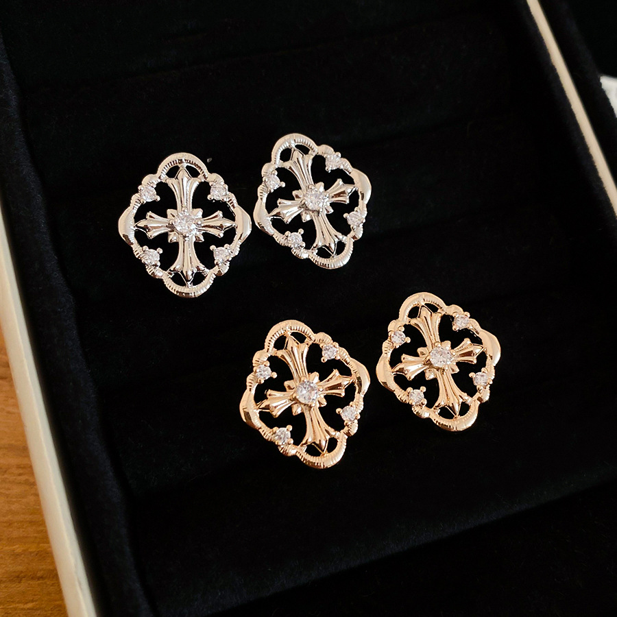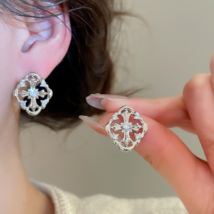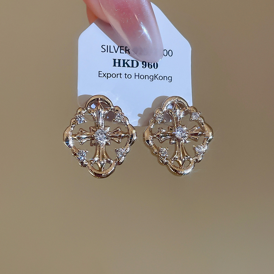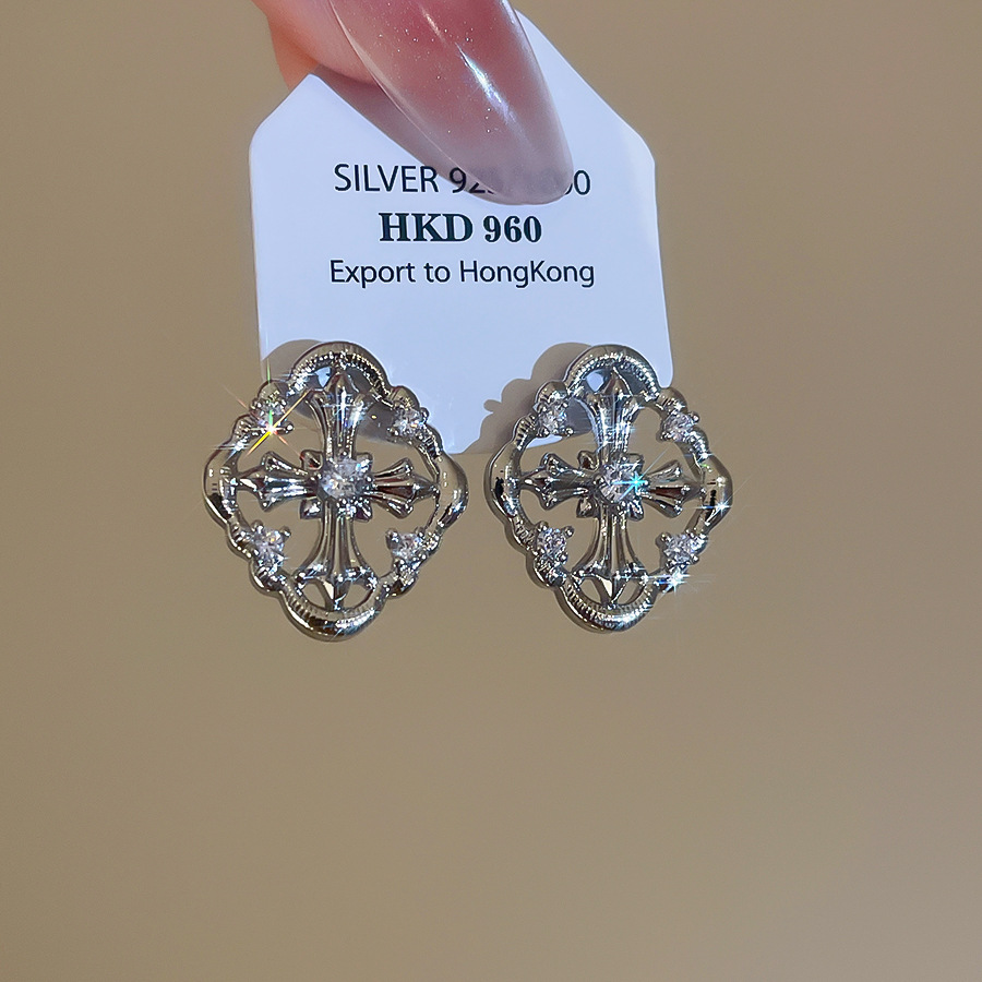 A2廠 韓國韓版 鋯石菱形十字架耳環批發 折扣@洽客服 26.03.W2「HE30701」