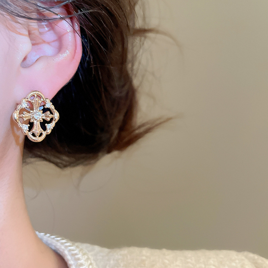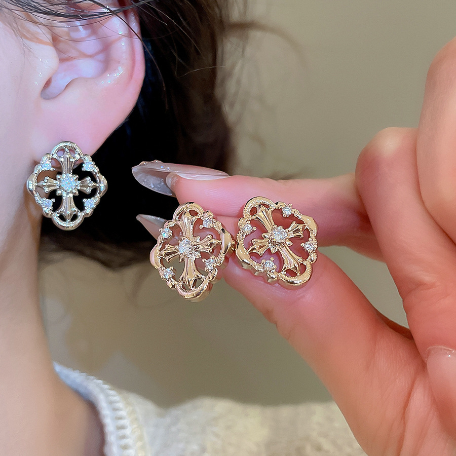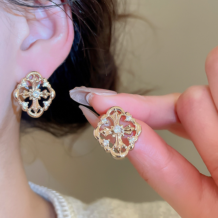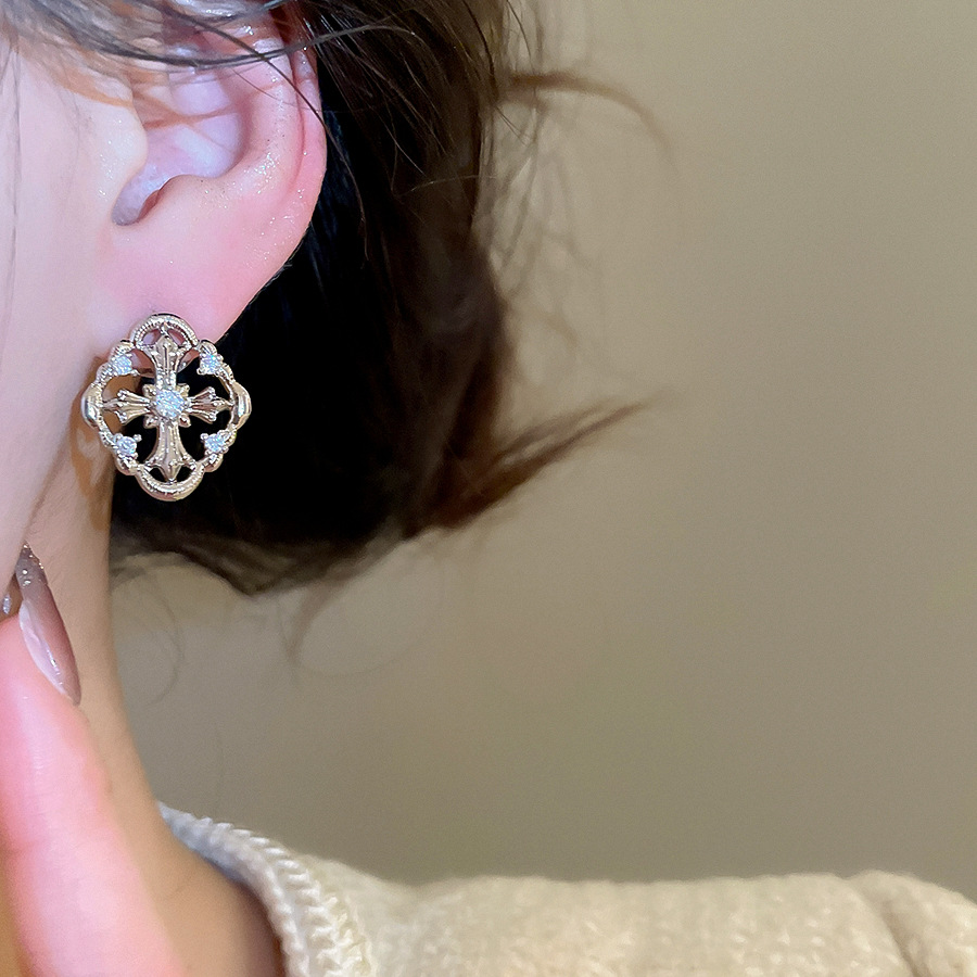 A2廠 韓國韓版 鋯石菱形十字架耳環批發 折扣@洽客服 26.03.W2「HE30701」