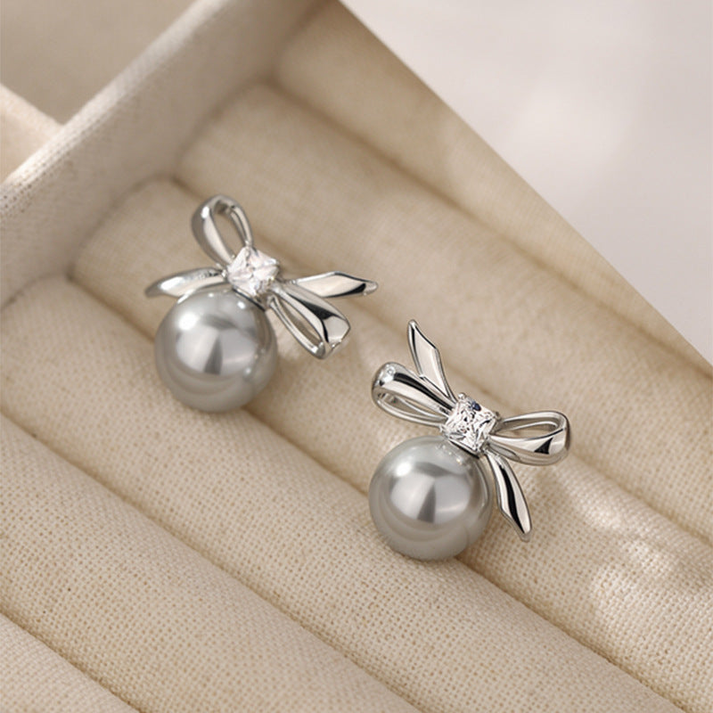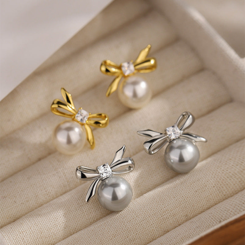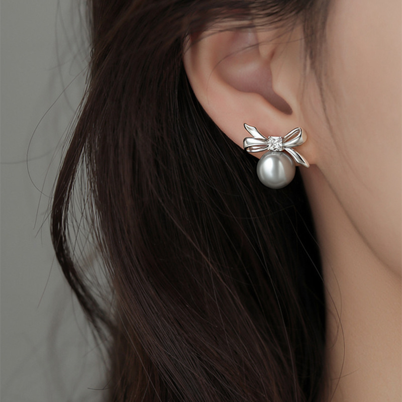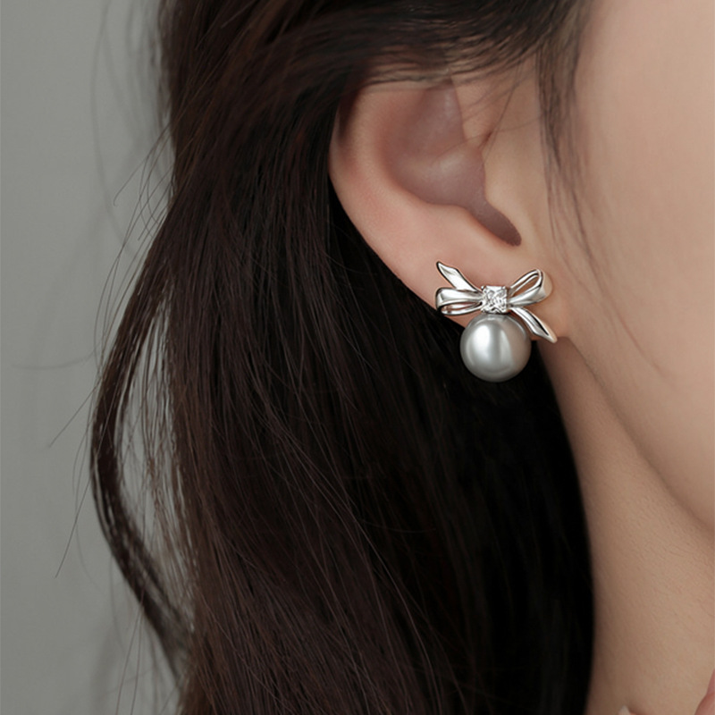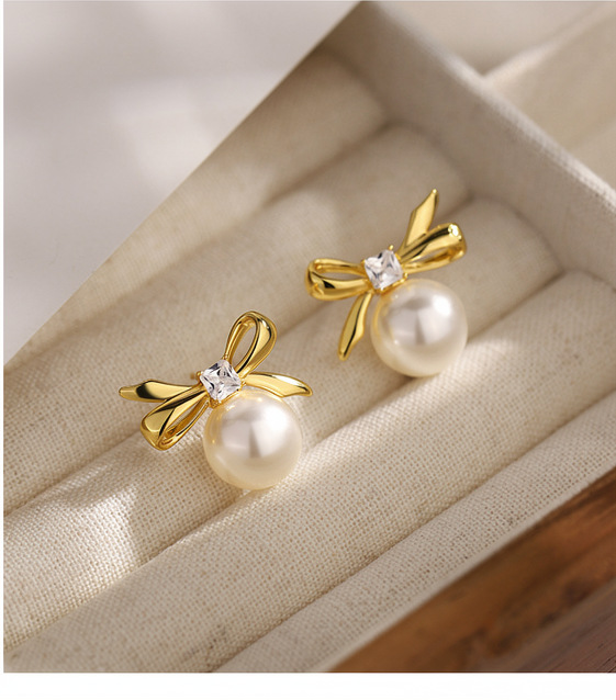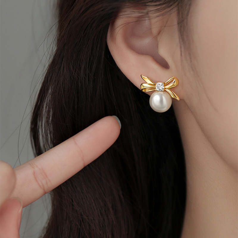 A2廠 韓國韓版 鋯石圓形蝴蝶結珍珠耳環批發 折扣@洽客服 26.03.W2「HE30873」