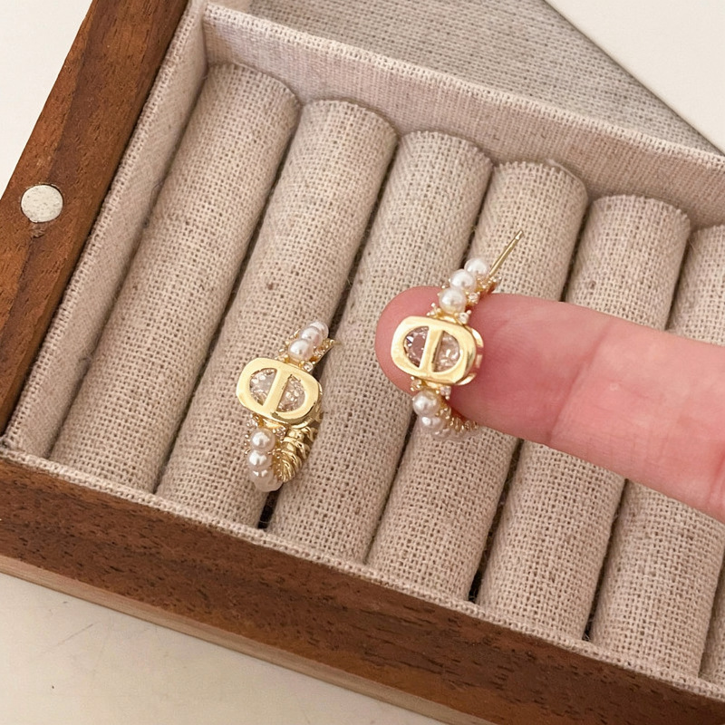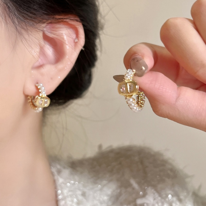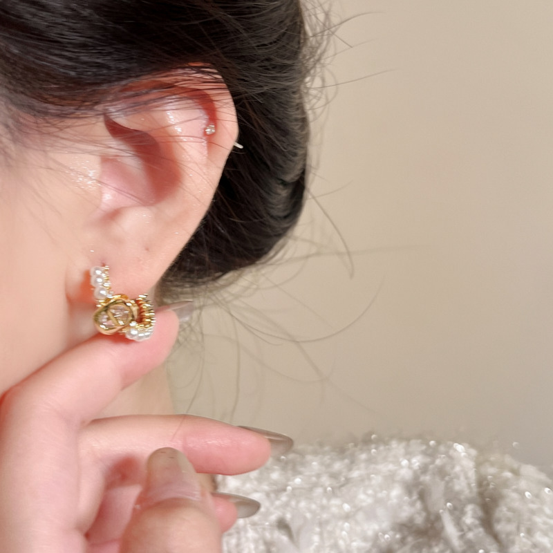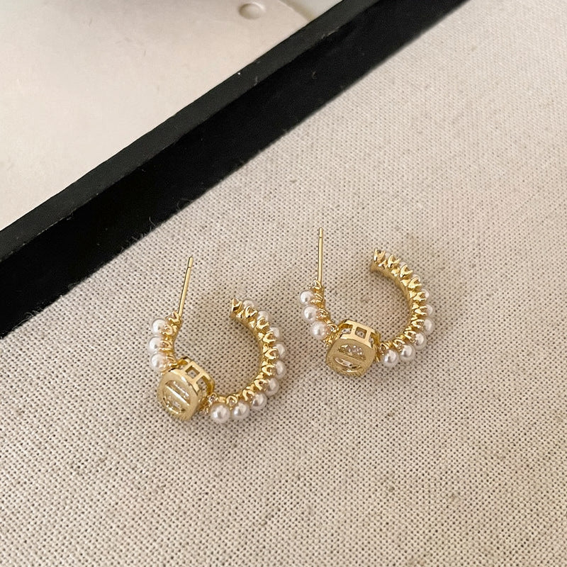 A2廠 韓國韓版 鋯石豬鼻子C型珍珠耳環批發 折扣@洽客服 26.03.W2「HE30874」