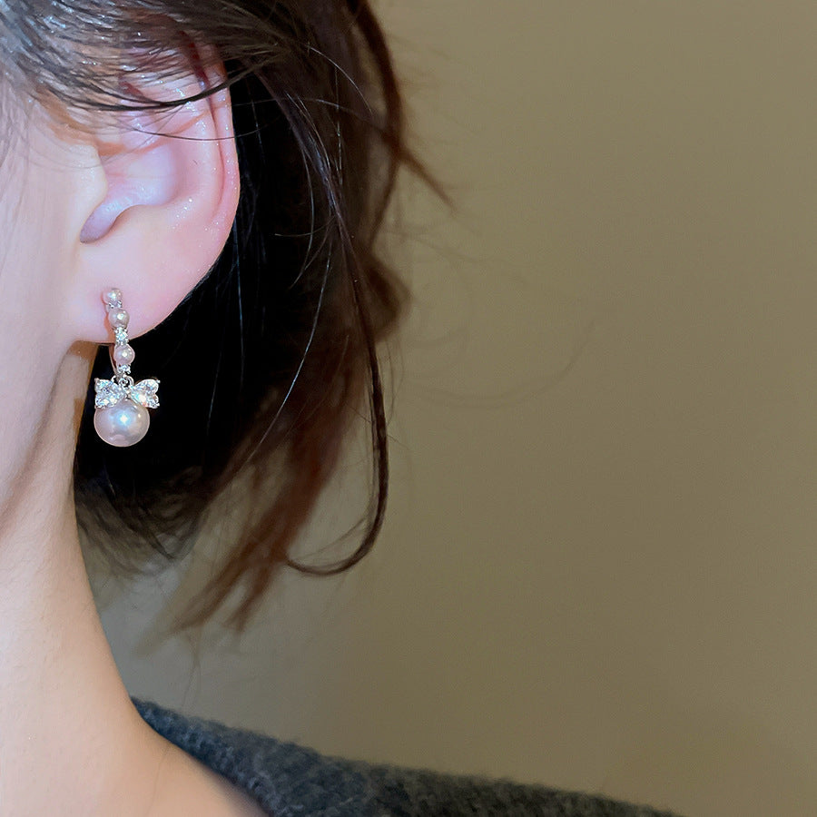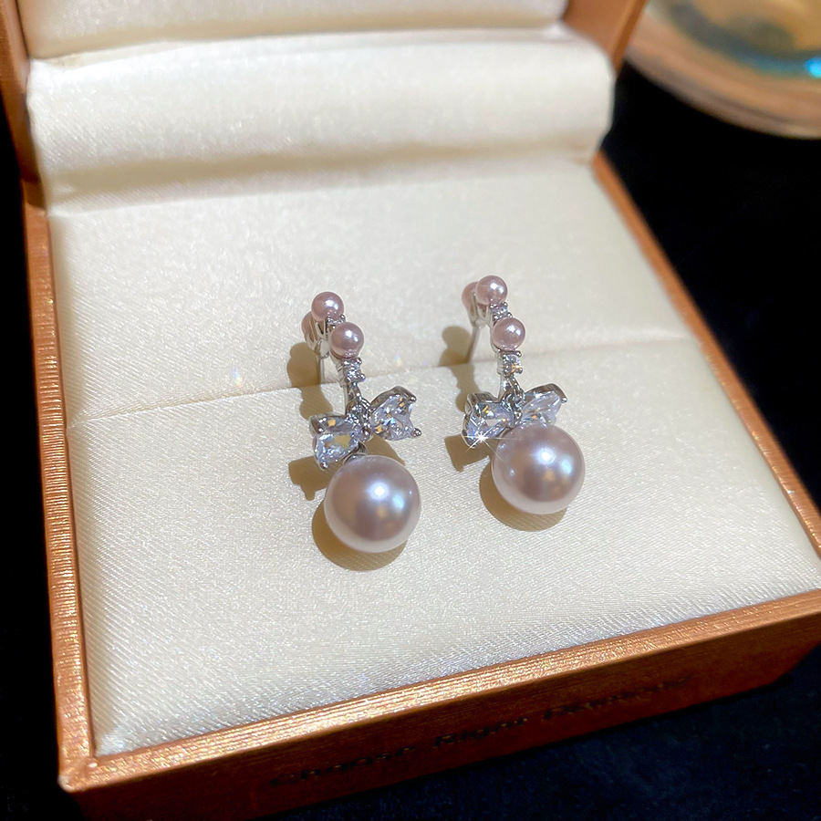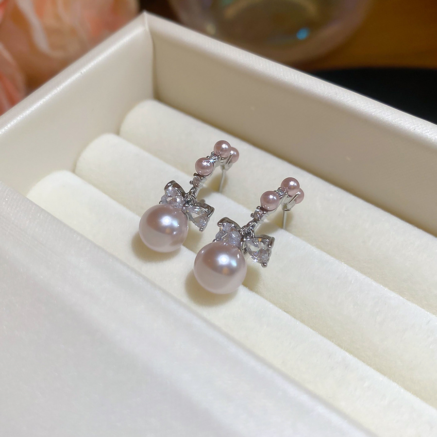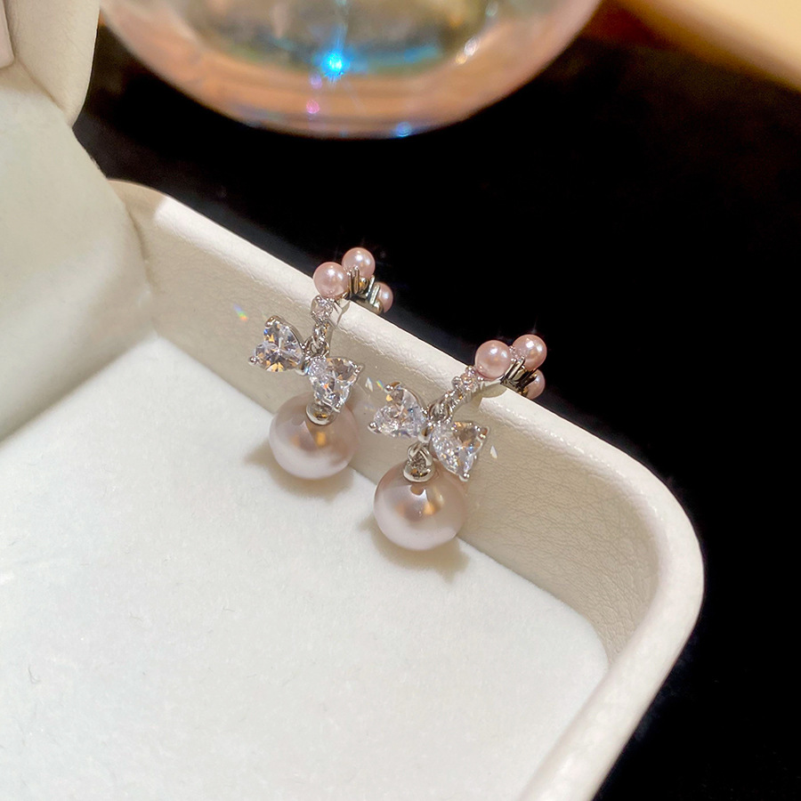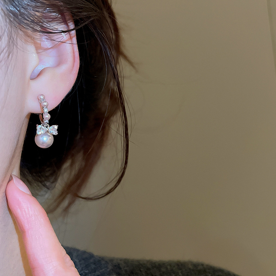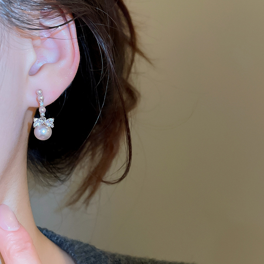 A2廠 韓國韓版 鋯石圓形蝴蝶結珍珠耳環批發 折扣@洽客服 26.03.W2「HE30985」