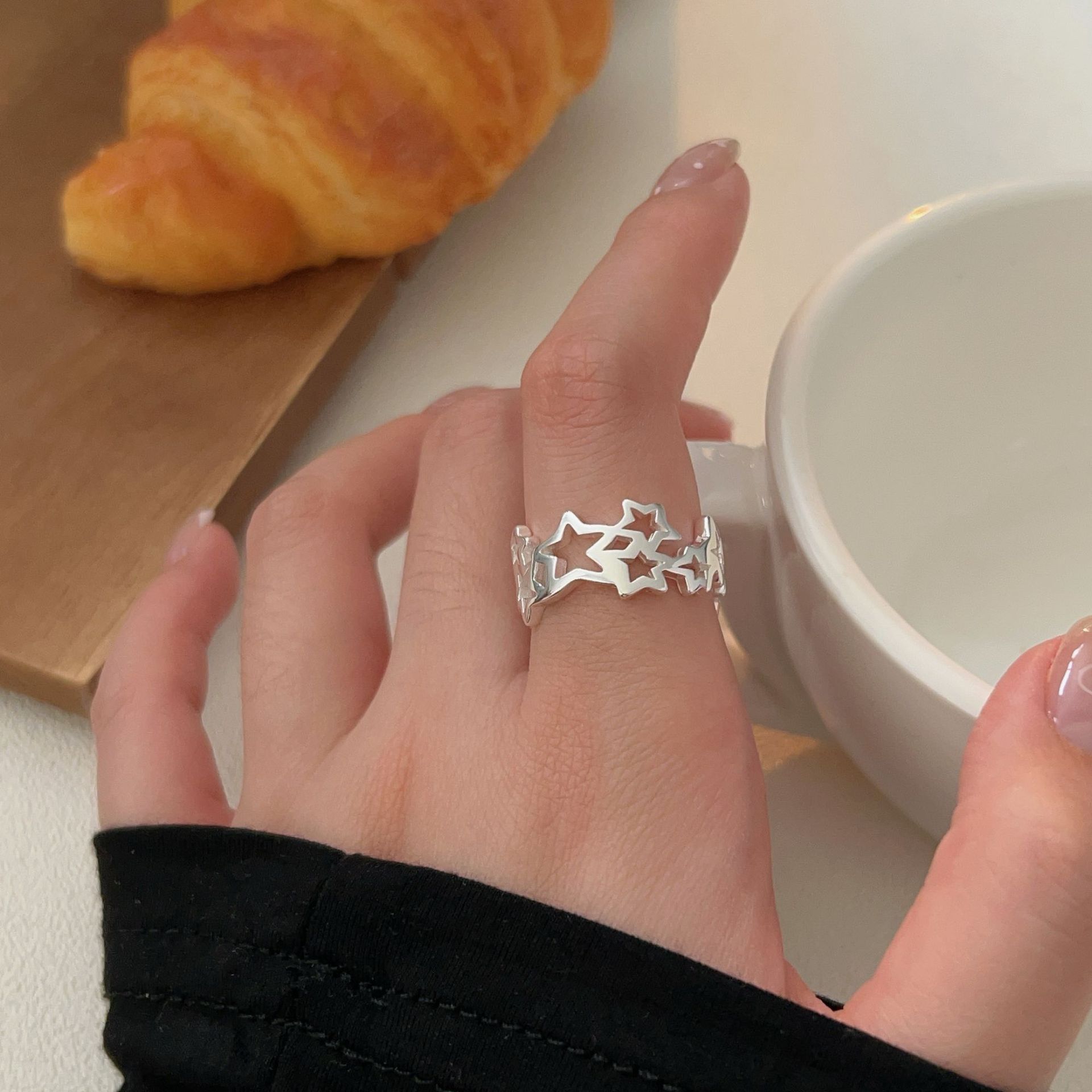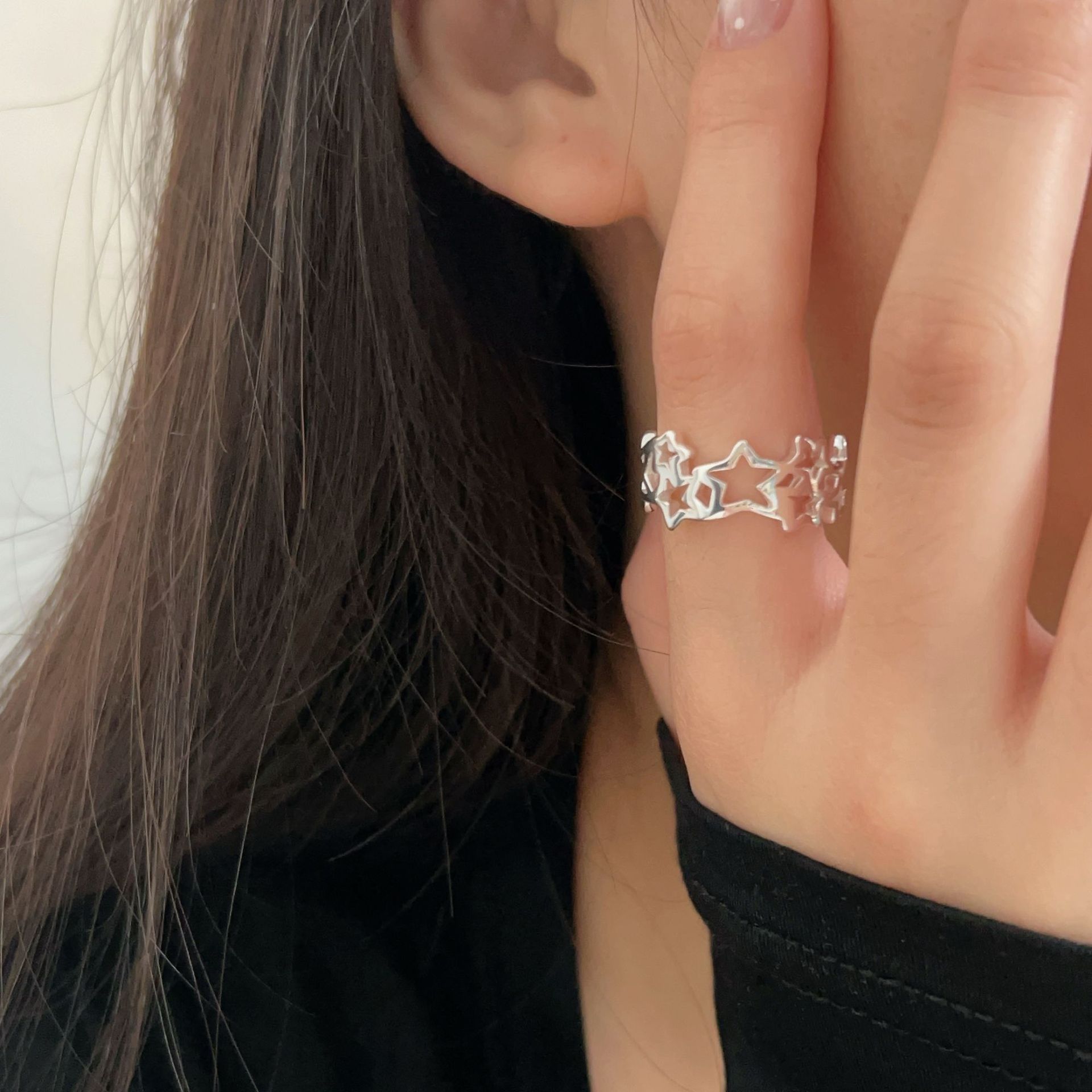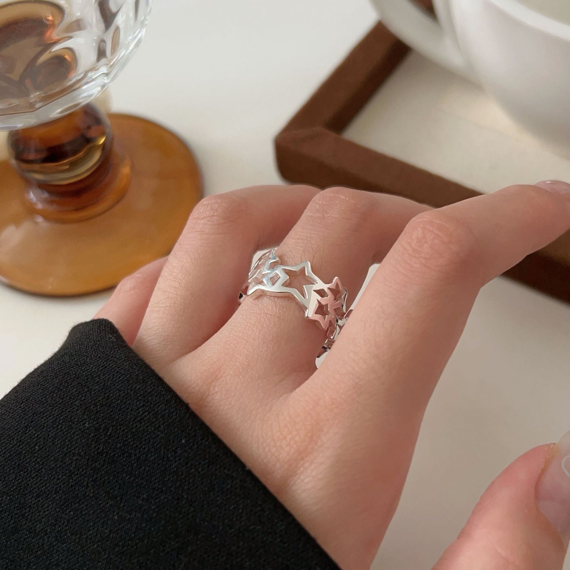 C3廠 韓國韓版S925純銀|鏤空五角星戒指 批發 折扣@洽客服 26.02.W3「hjz305」