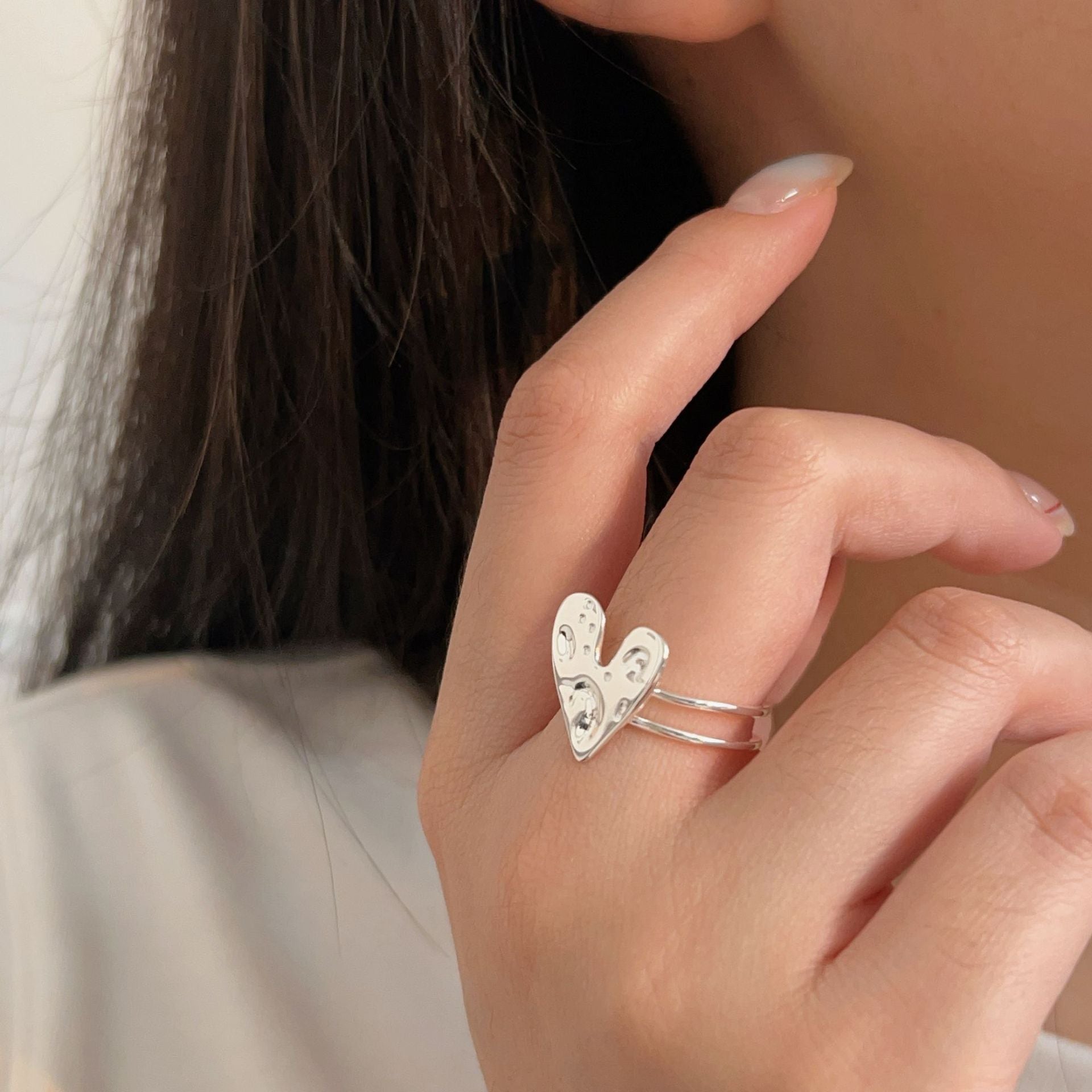 C3廠 韓國韓版錘紋愛心S925純銀戒指 批發 折扣@洽客服 25.10.W5「hjz426」