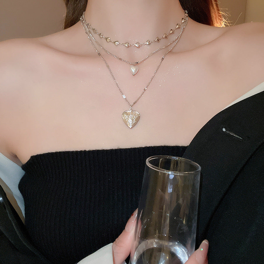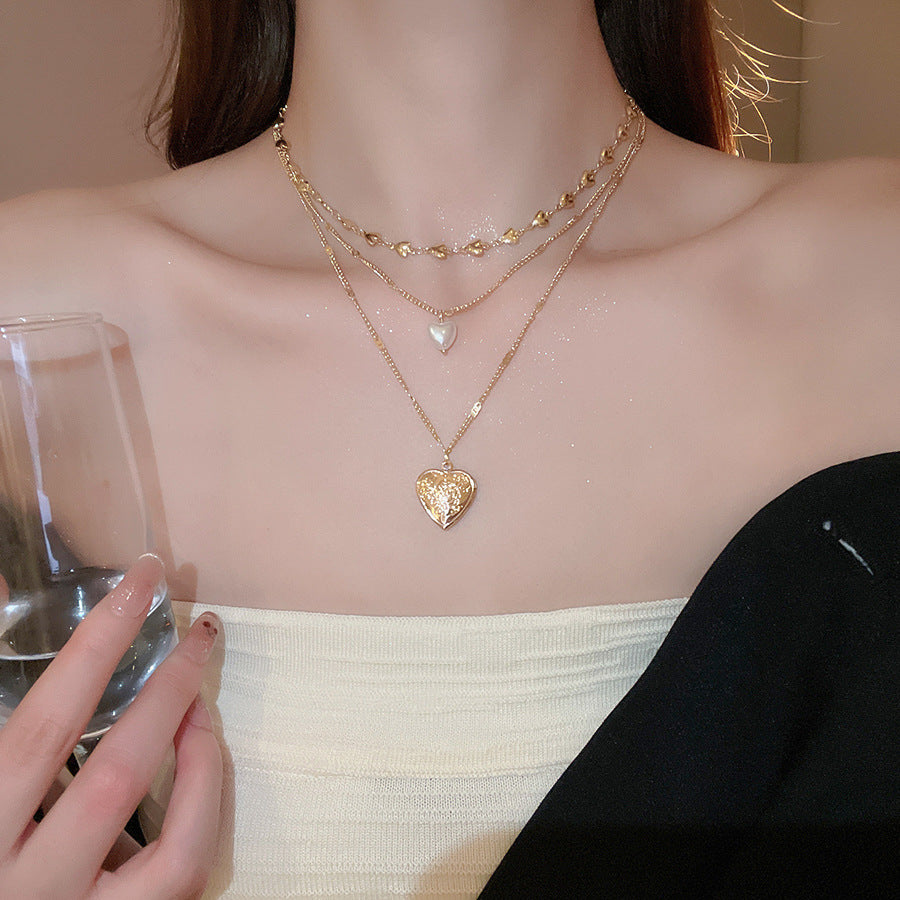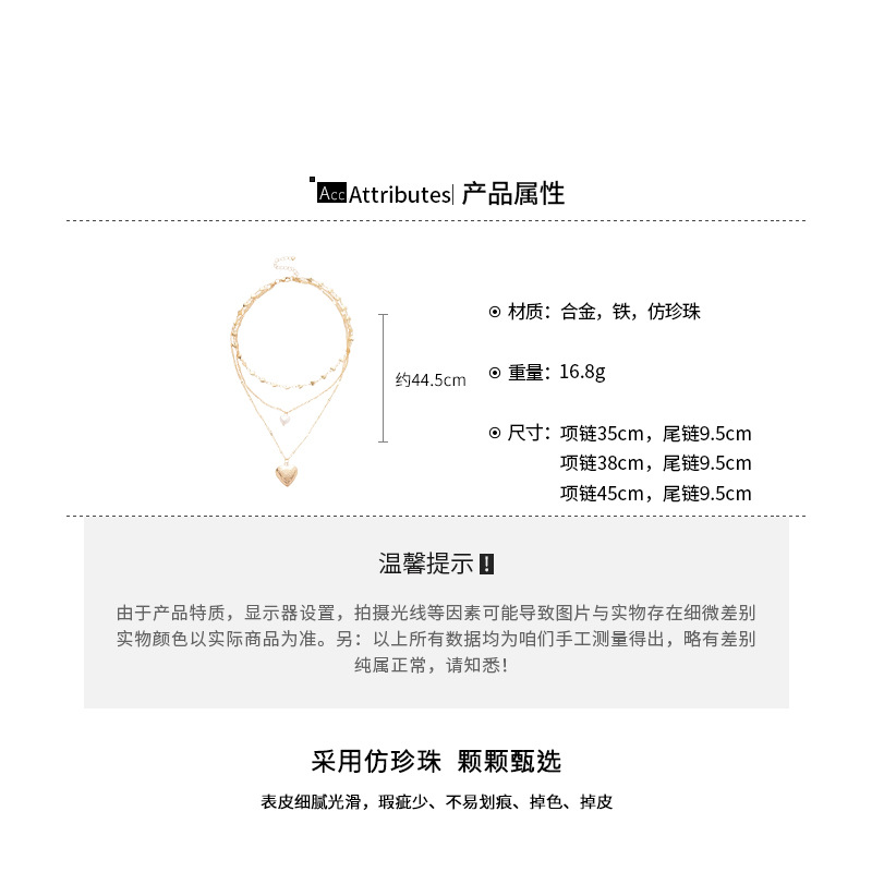 A2廠 韓國韓版愛心吊墜三層珍珠項鍊 批發 折扣@洽客服 25.09.W4「HN9821」