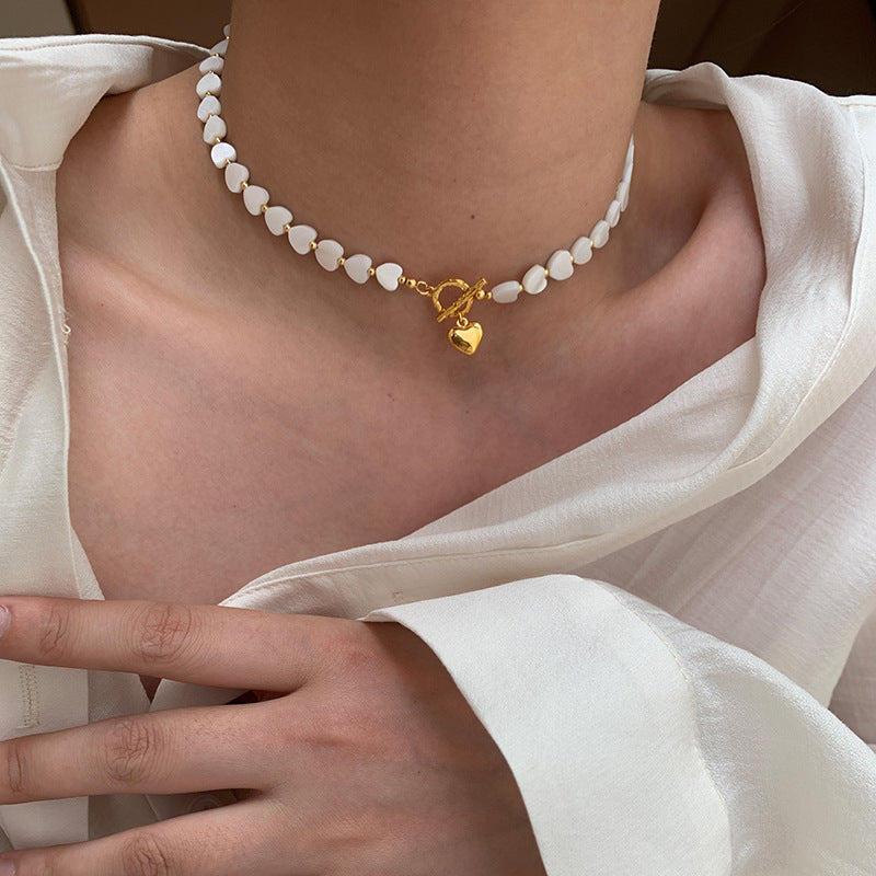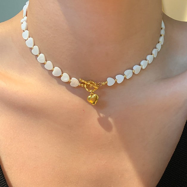A2廠 韓國韓版復古貝殼串珠愛心時尚項鍊 批發 折扣@洽客服 25.10.W2「HN9935」