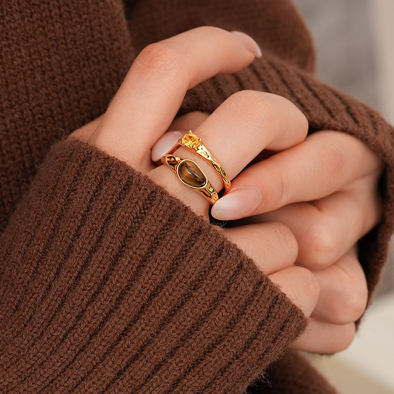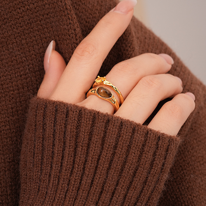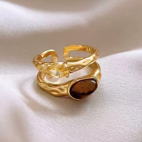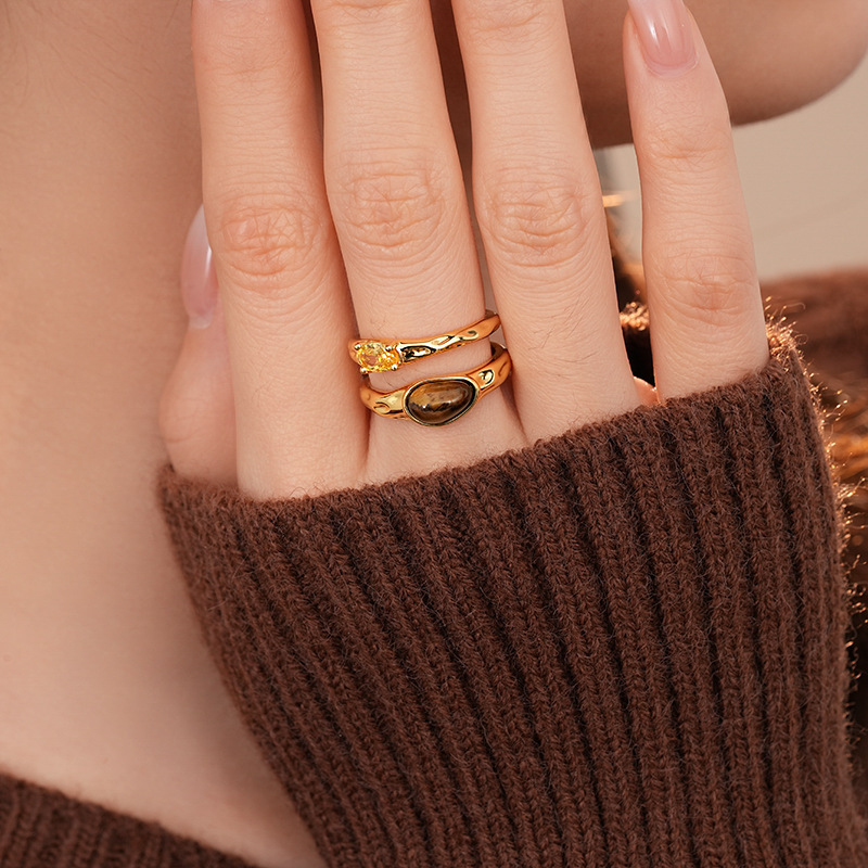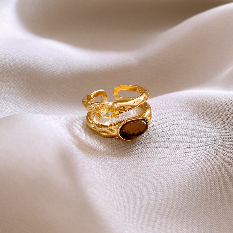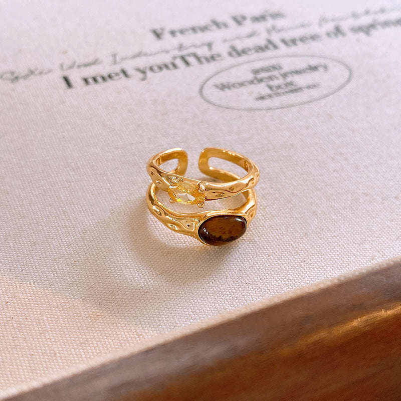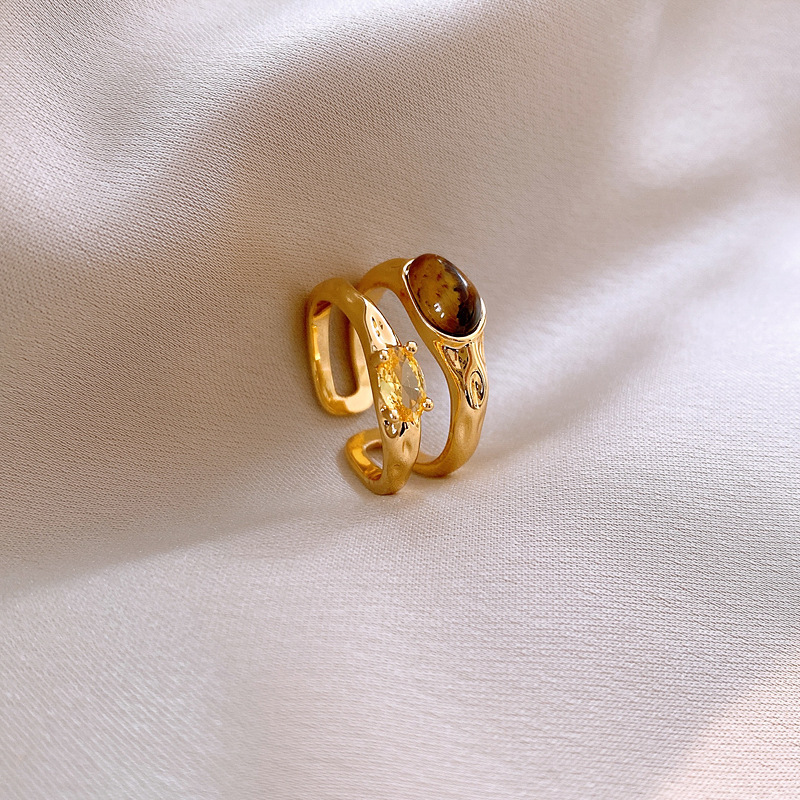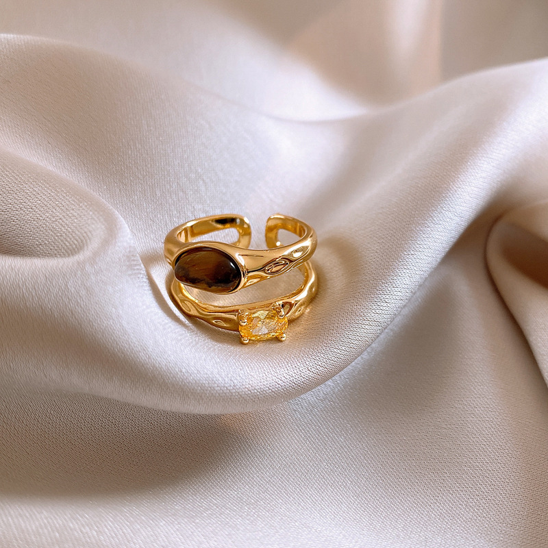 A2廠 韓國韓版鋯石虎眼石雙層電鍍18k真金開口戒指 批發 折扣@洽客服 25.10.W3「HR2343」