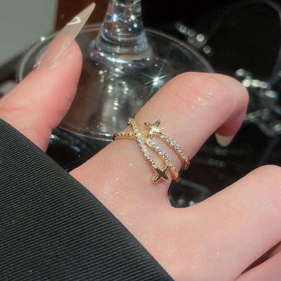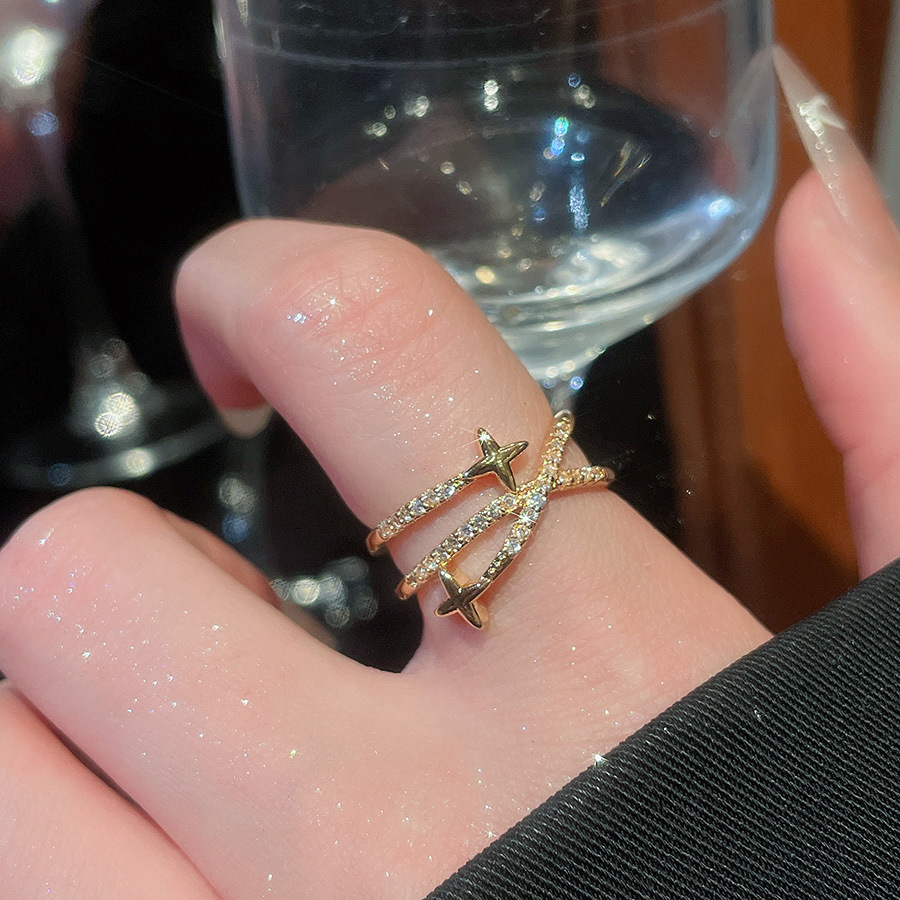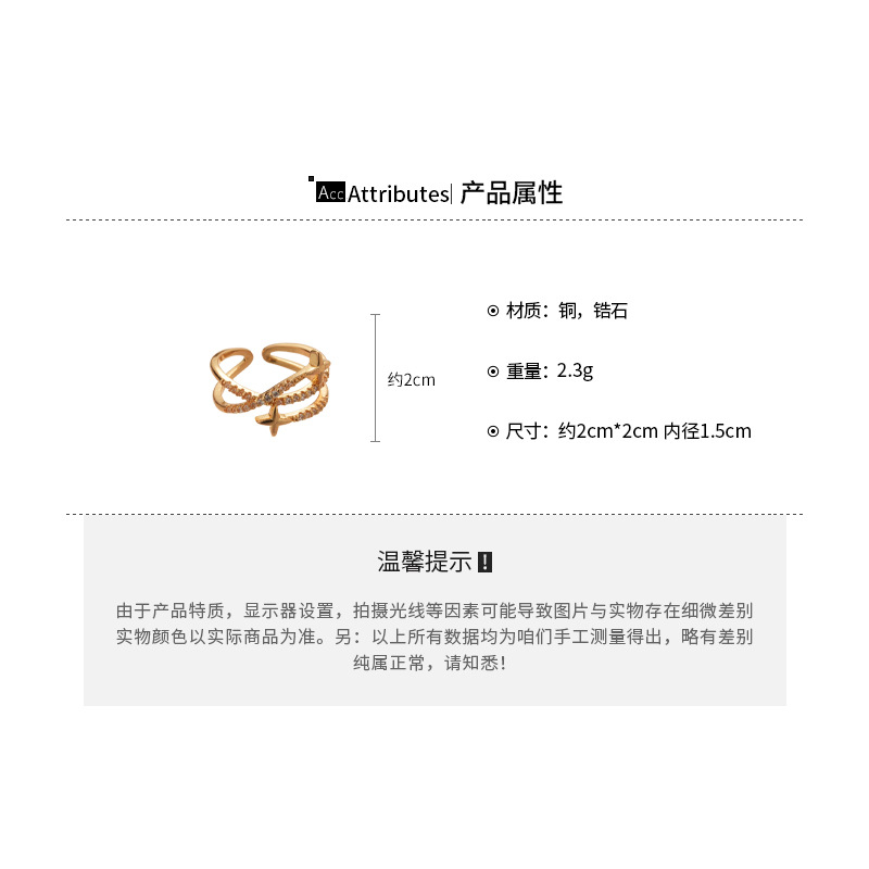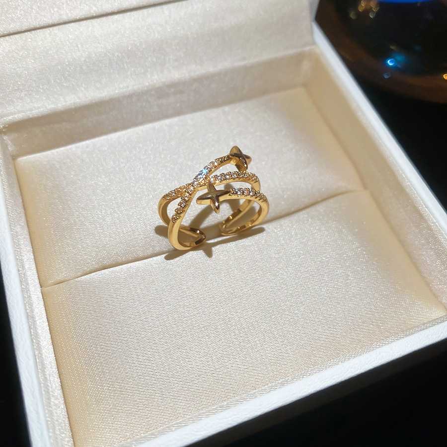 A2廠 韓國韓版鋯石芒星交叉雙層時尚開口戒指 批發 折扣@洽客服 25.11.W3「HR2775-TR124-TR125」