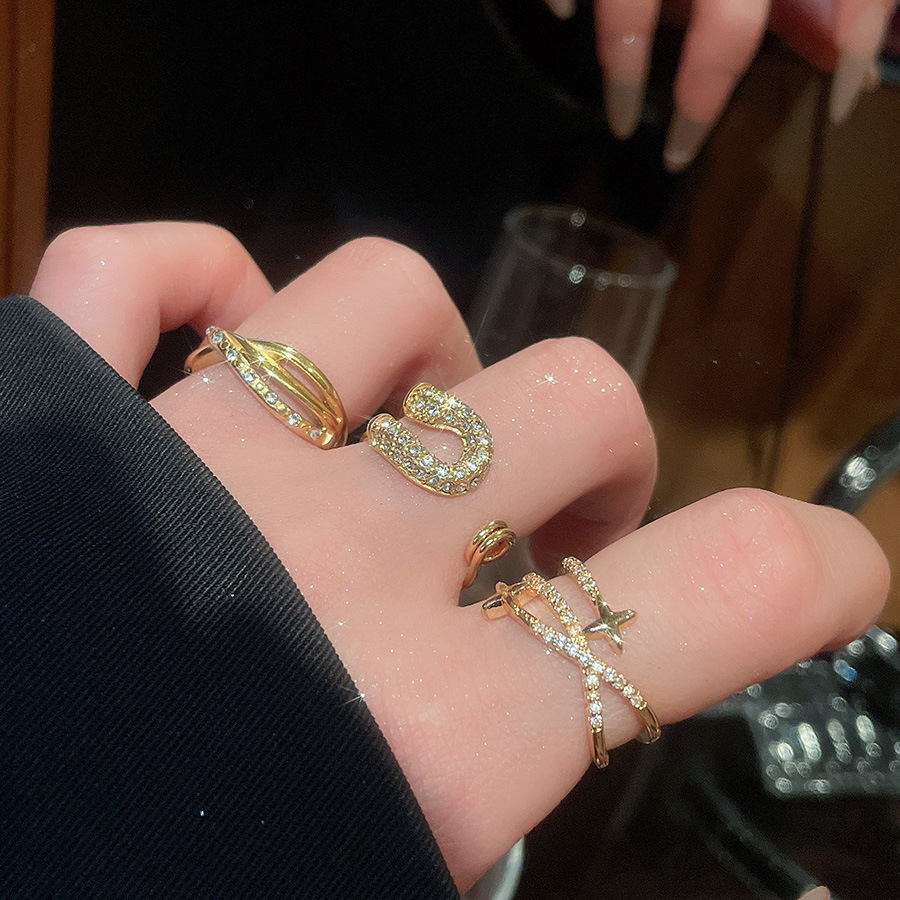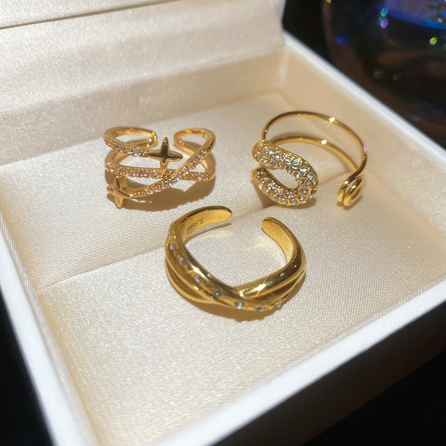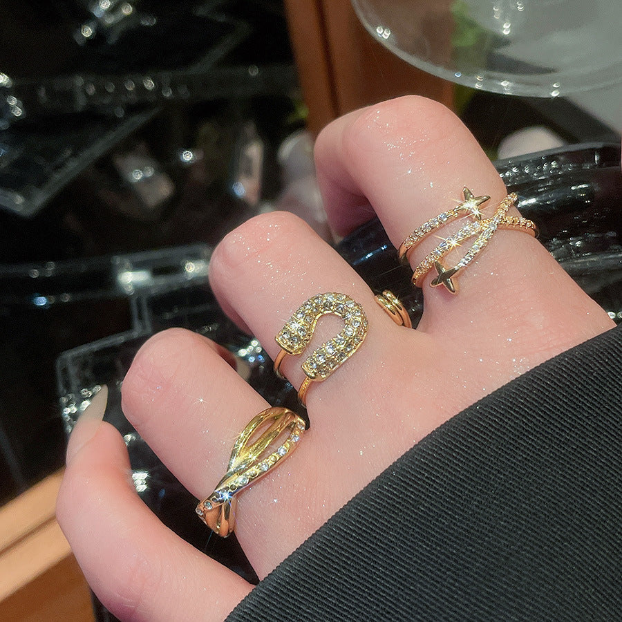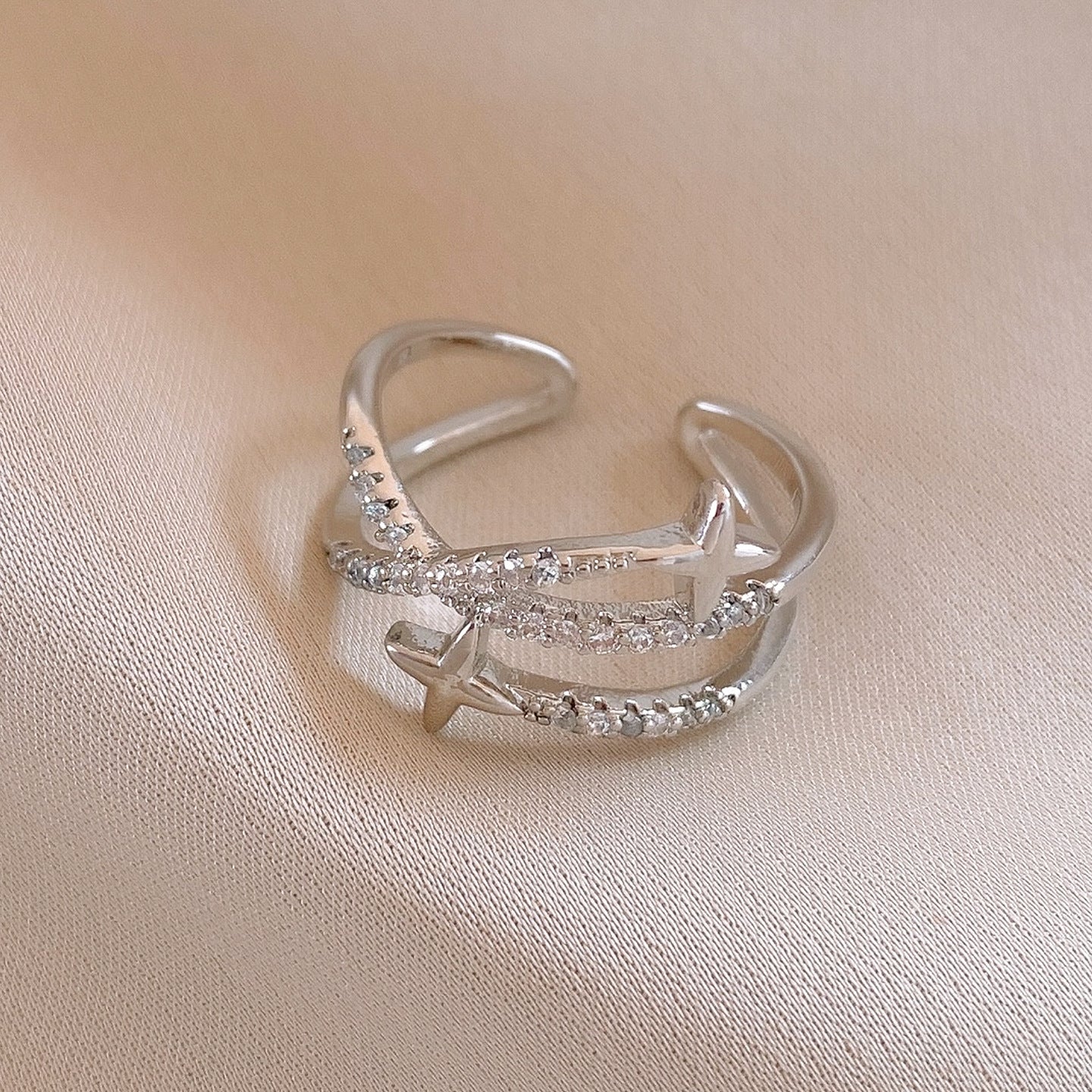 A2廠 韓國韓版鋯石芒星交叉雙層時尚開口戒指 批發 折扣@洽客服 25.11.W3「HR2775-TR124-TR125」