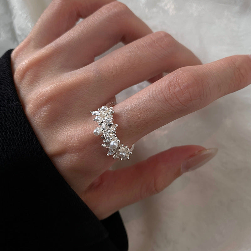 A2廠 韓國韓版重工設計感鋯石珍珠開口戒指 批發 折扣@洽客服 25.12.W1「HR2826」