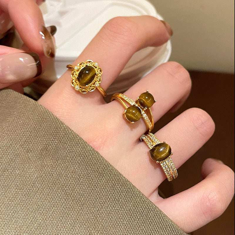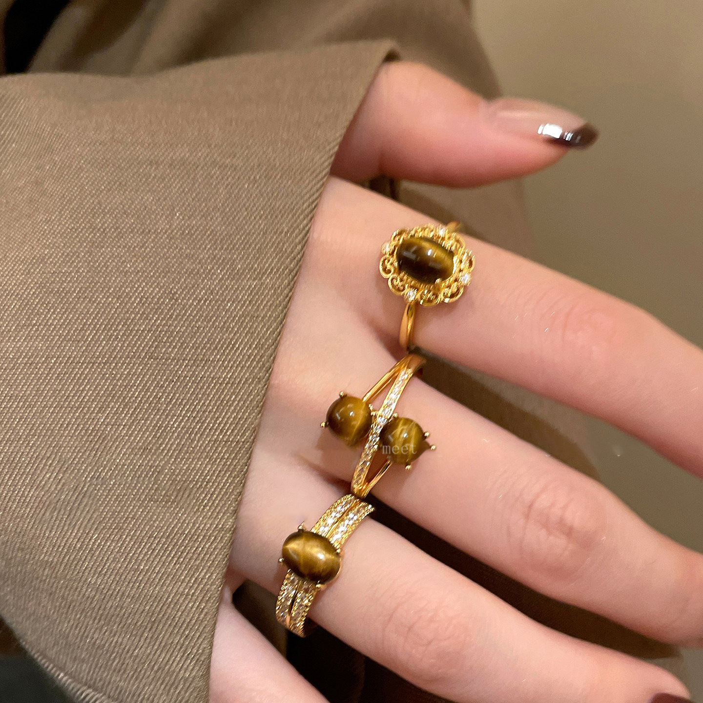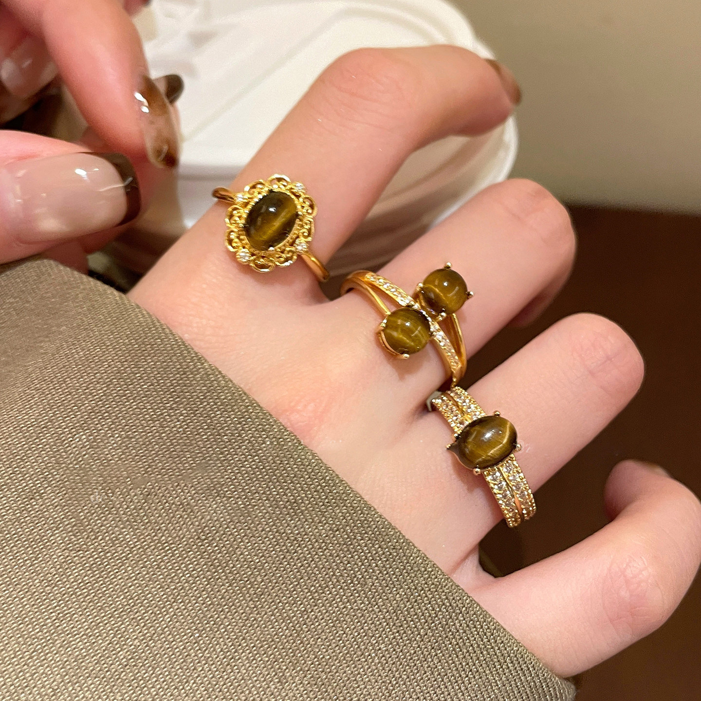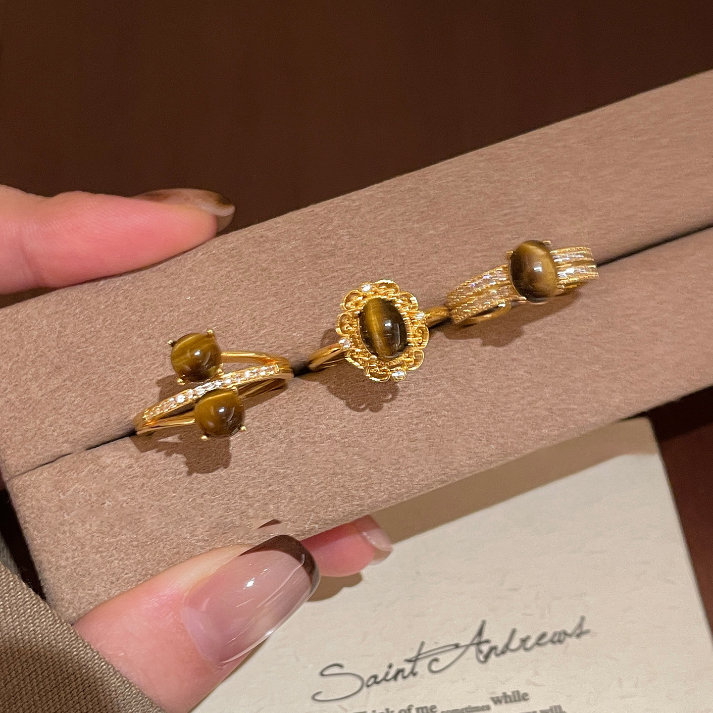 A2廠 韓國韓版鋯石虎眼石銅鍍真金開口戒指 批發 折扣@洽客服 26.02.W3「HR2927」