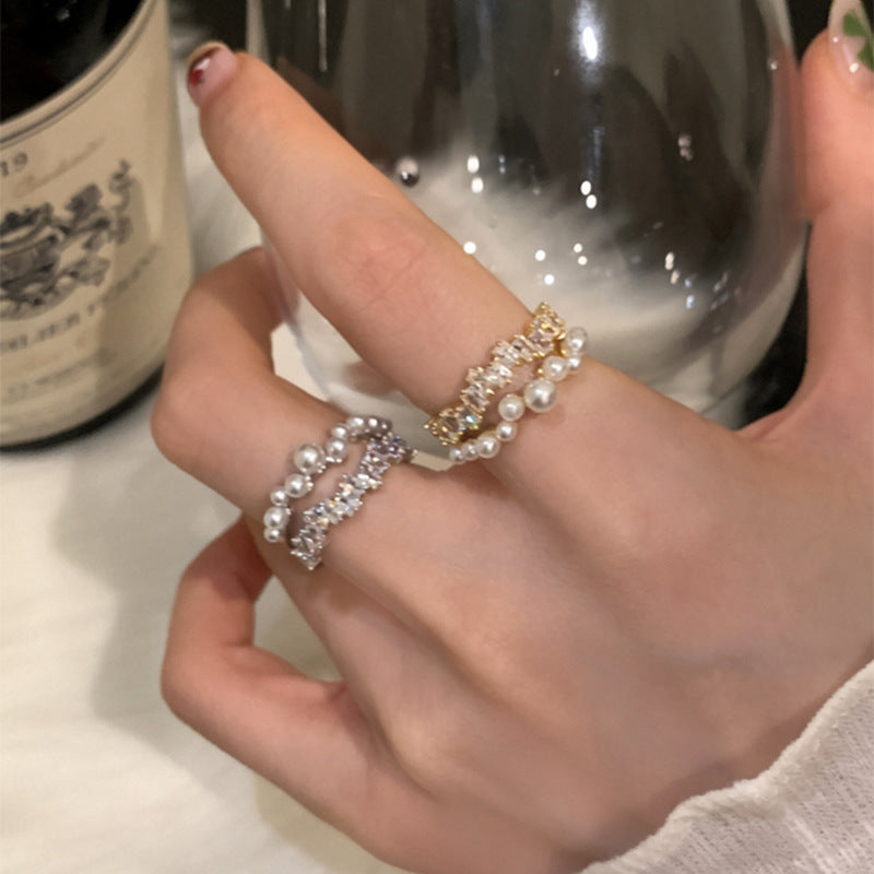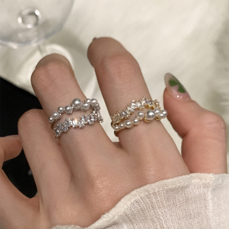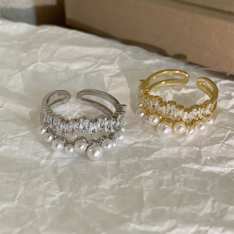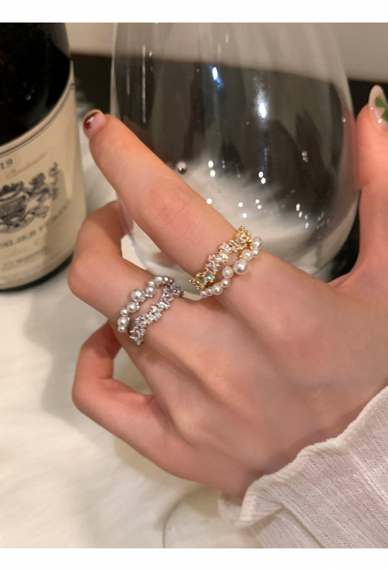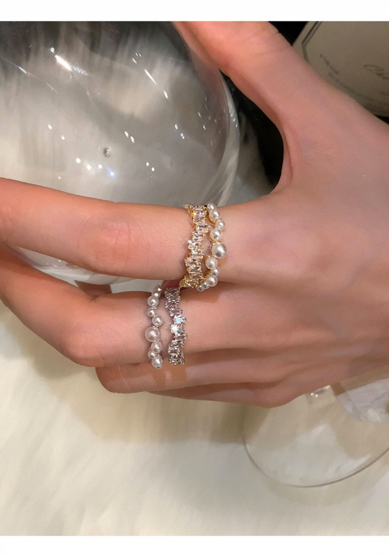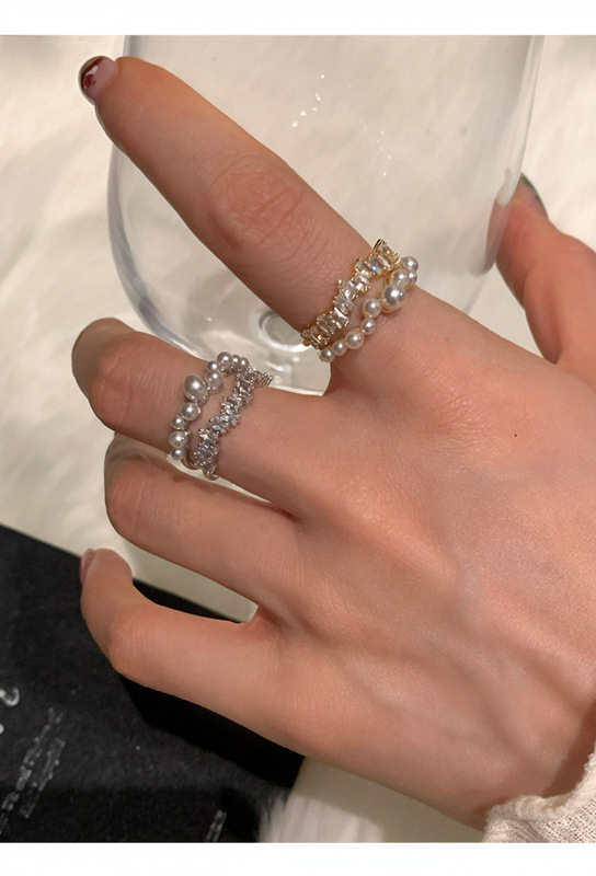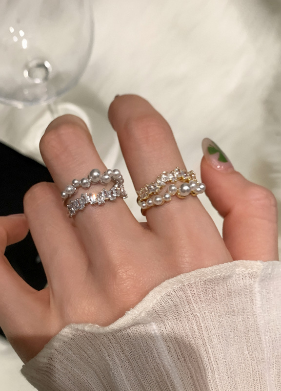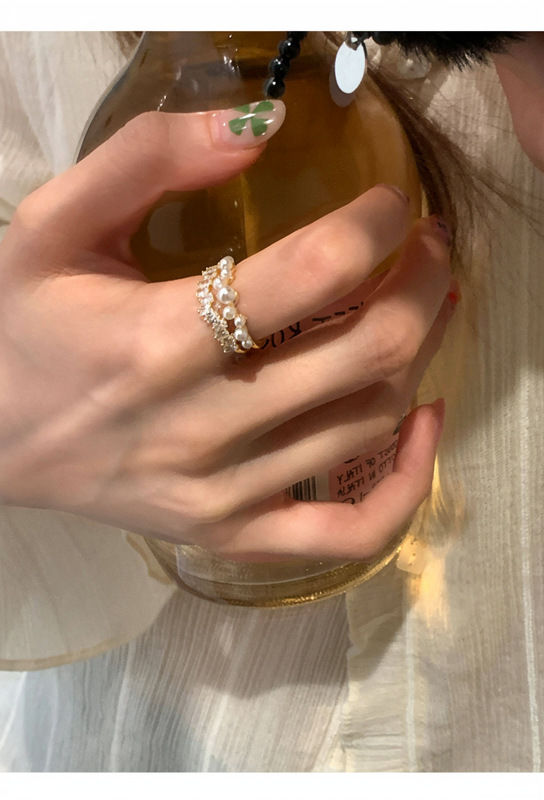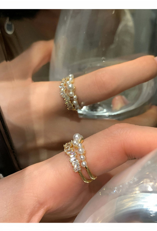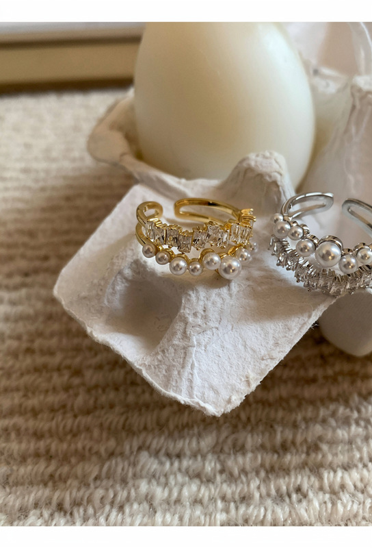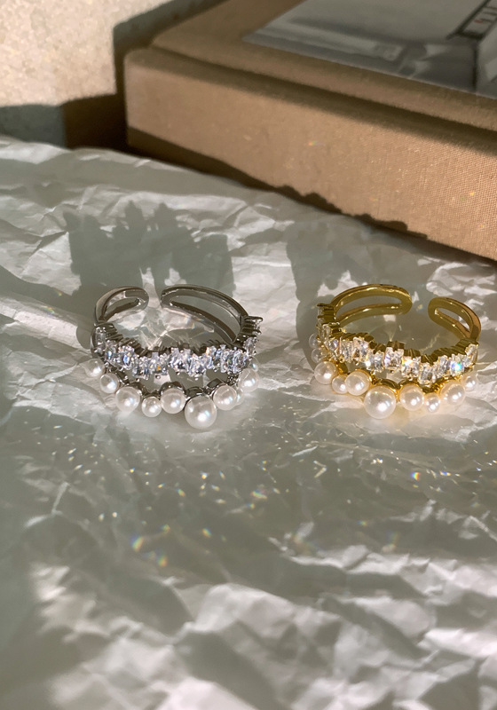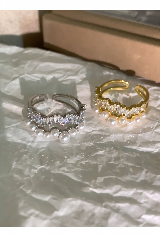 A2廠 韓國韓版雙層鋯石珍珠開口電鍍14k真金戒指批發 折扣@洽客服 26.03.W3「HR3045-」