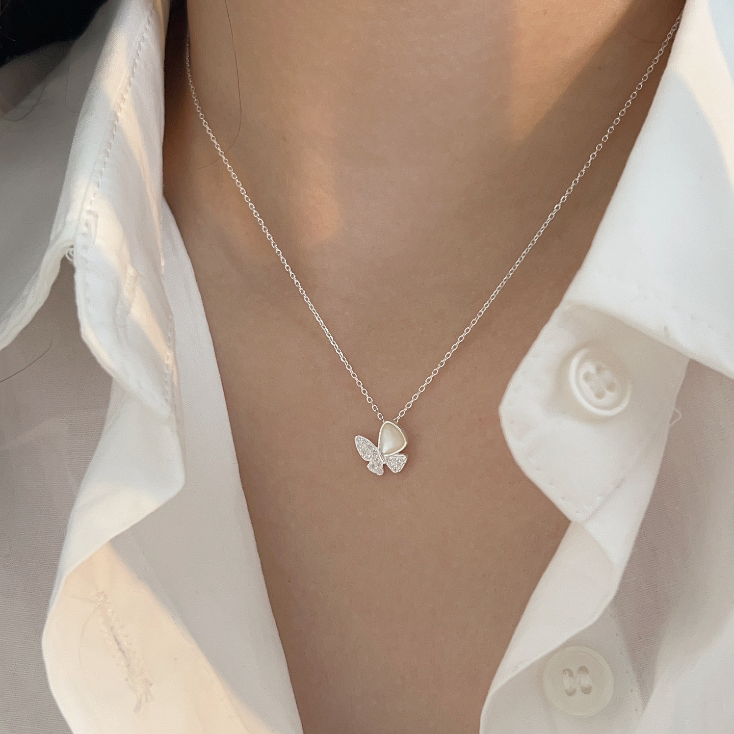 C3廠 韓國韓版S925純銀|鑲嵌蝴蝶項鍊 批發 折扣@洽客服 26.02.W3「hxl222」