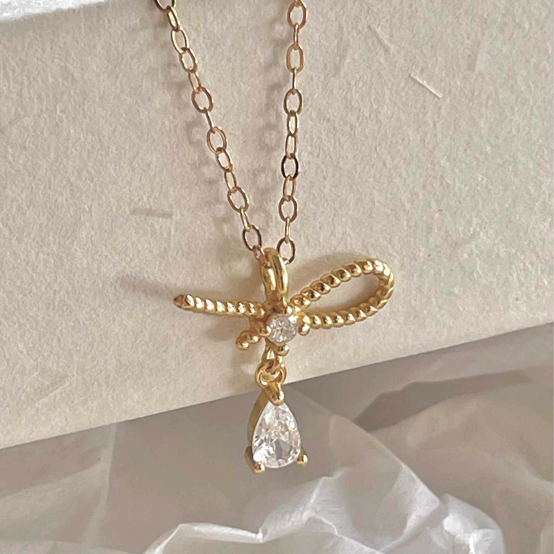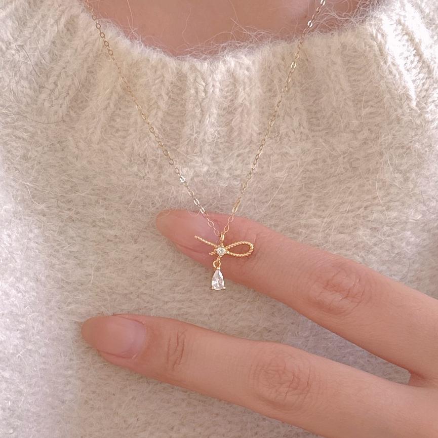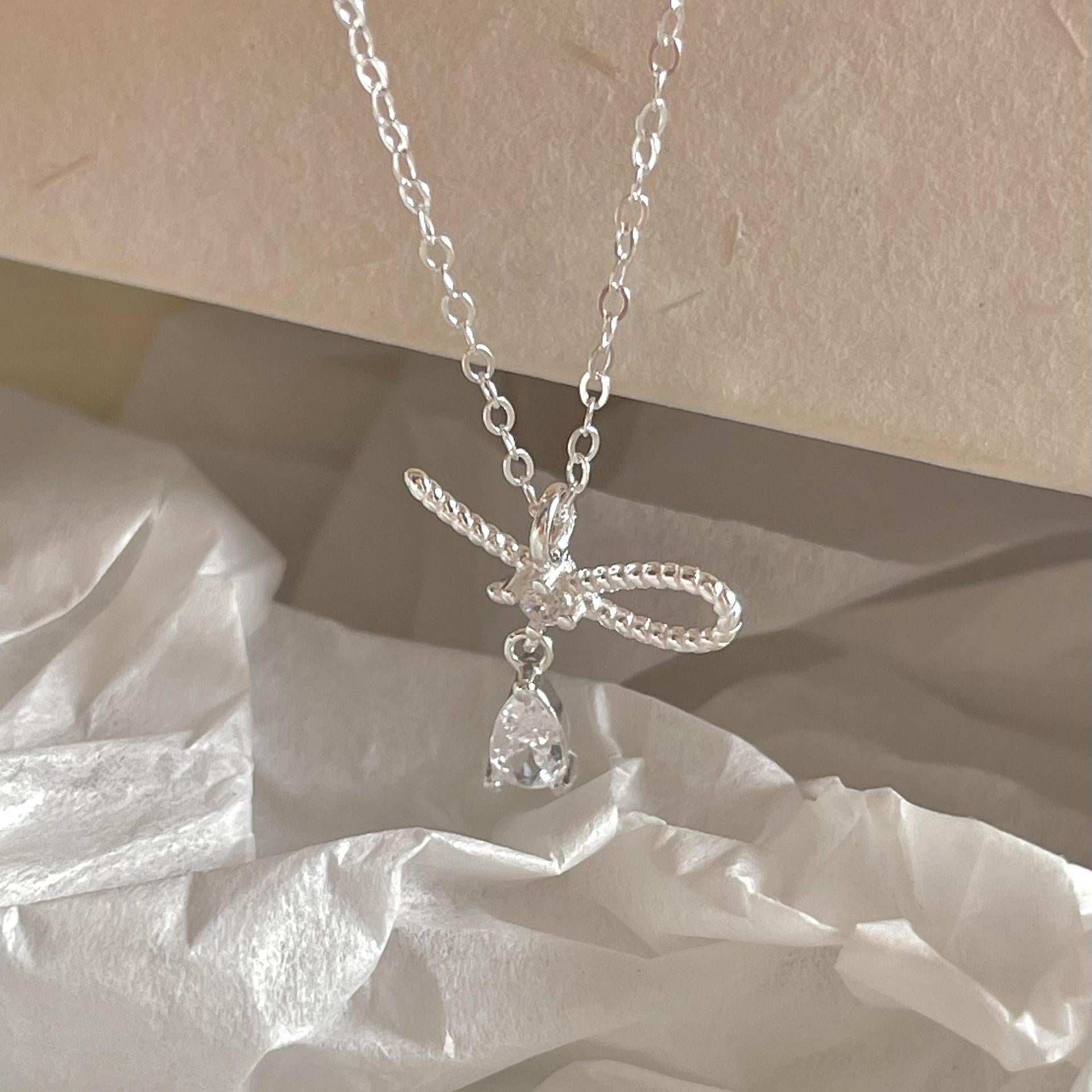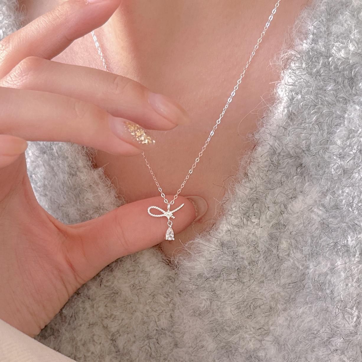 C3廠 韓國韓版蝴蝶結鋯石S925純銀項鍊 批發 折扣@洽客服 25.09.W3「IN-B1331」