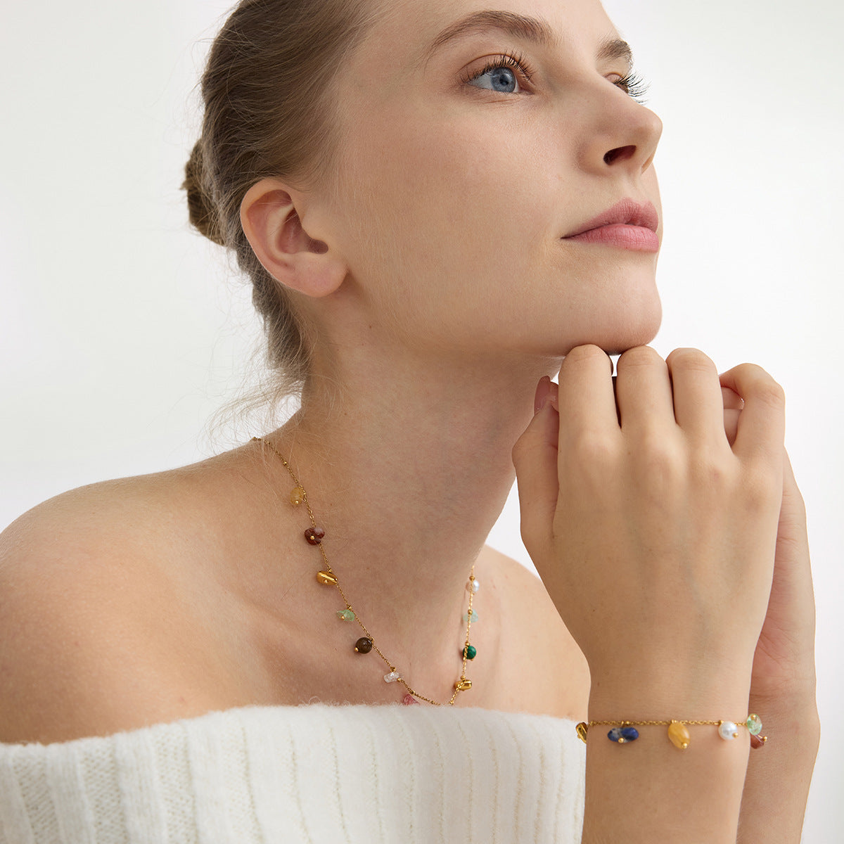B廠 歐美款 LUNA 天然石鈦鋼鍍18K金項鍊 批發 折扣@洽客服 25.12.W1&手鍊「JDB0209019,JDN0209013」