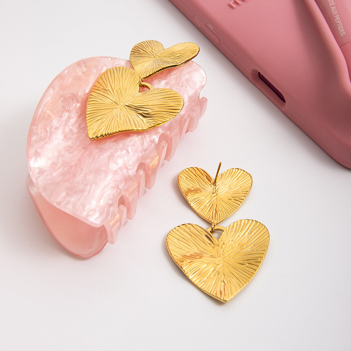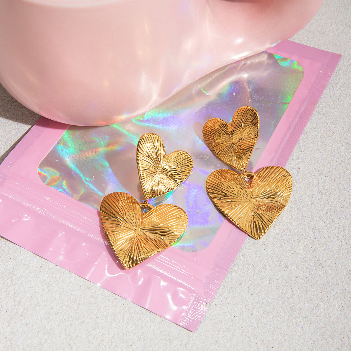 B廠 歐美款 羅紋愛心吊墜鈦鋼鍍18K金耳環 批發 折扣@洽客服 25.09.W4「JDE0106003」