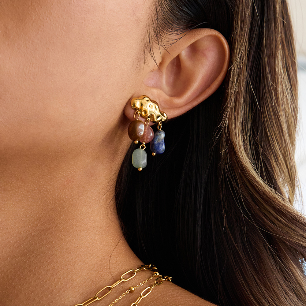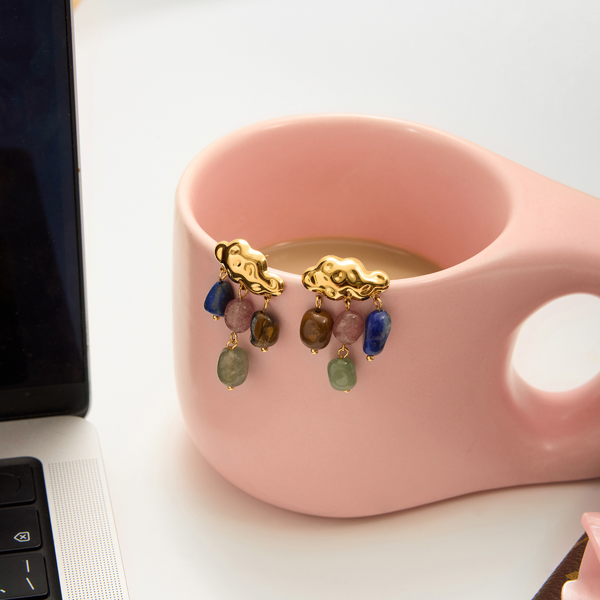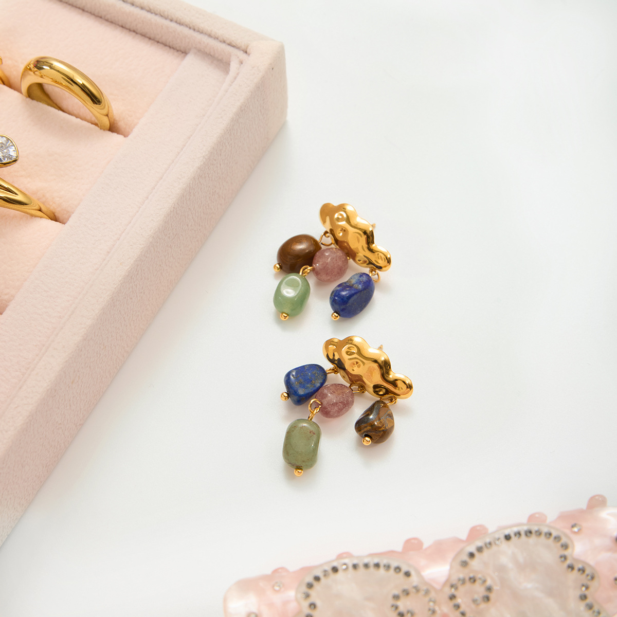 B廠 歐美款 復古彩色天然石 鈦鋼鍍18K金耳環 批發 折扣@洽客服 25.10.W5「JDE0207051」